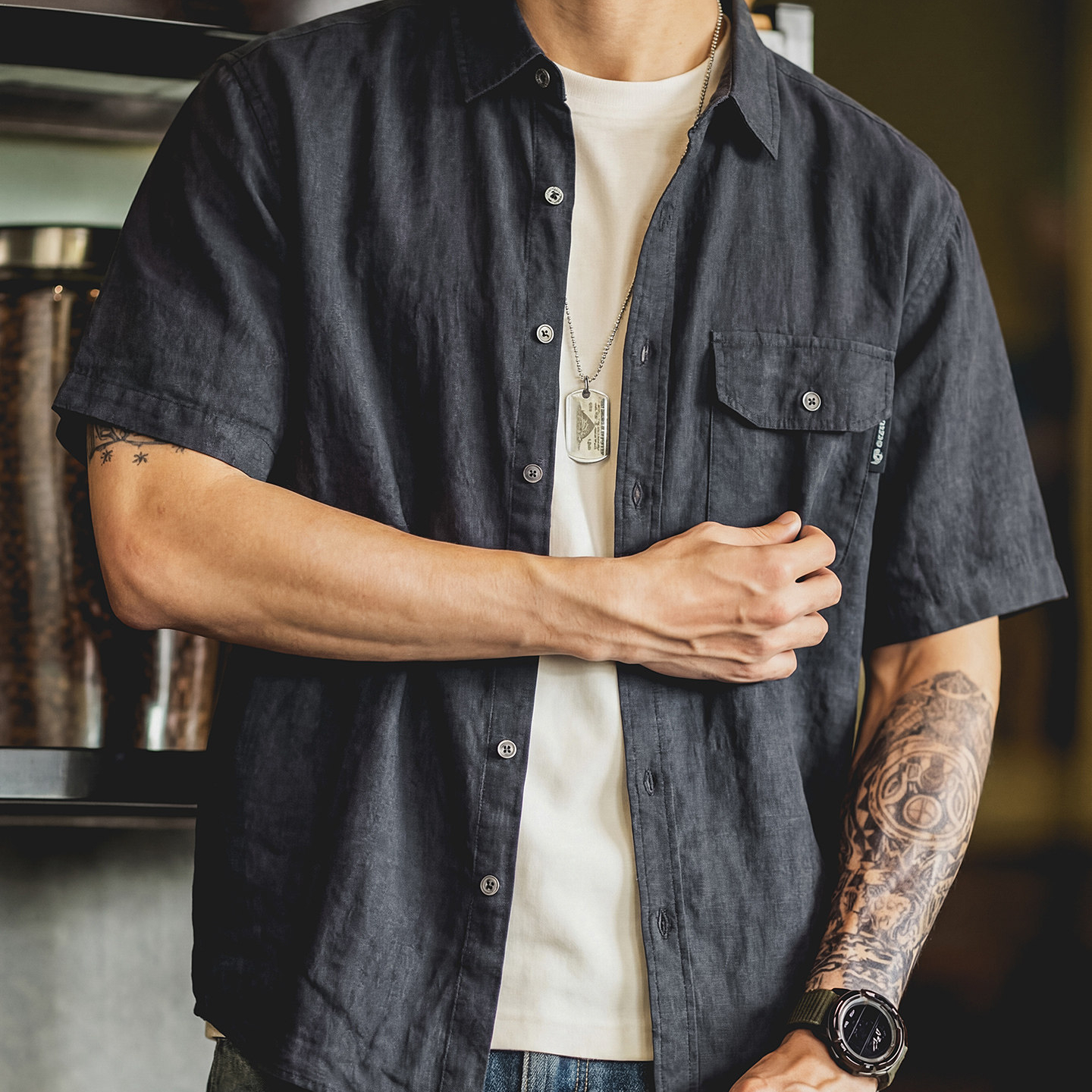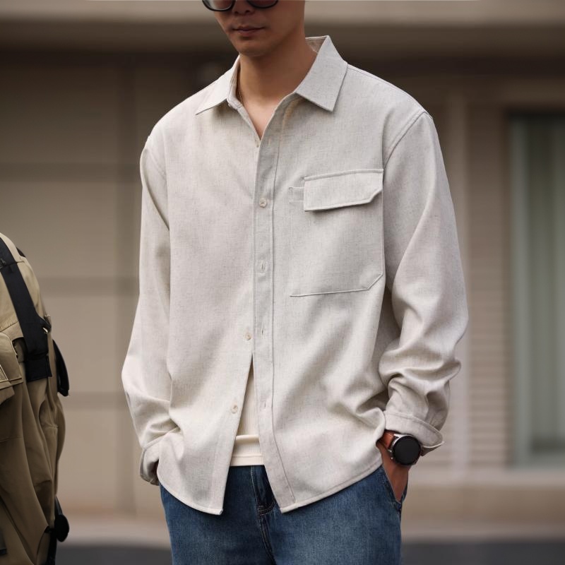 American-style relaxed linen long-sleeved work shirt, men's loose woven casual shirt jacket