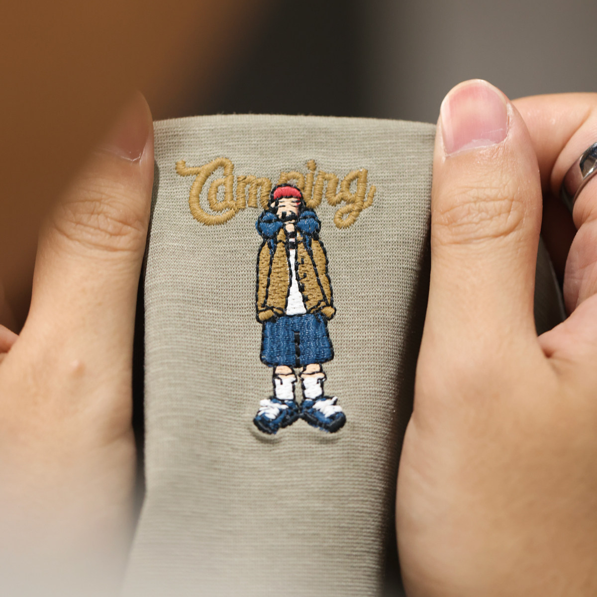 200g Skin-friendly Cooling Fun Embroidered Short-sleeved T-shirt for Men, Slightly Dropped Shoulders, Crew Neck, Textured Base Layer for Summer
