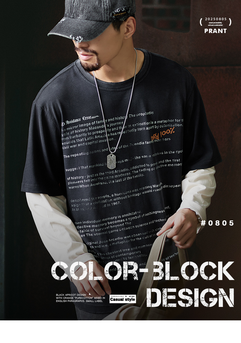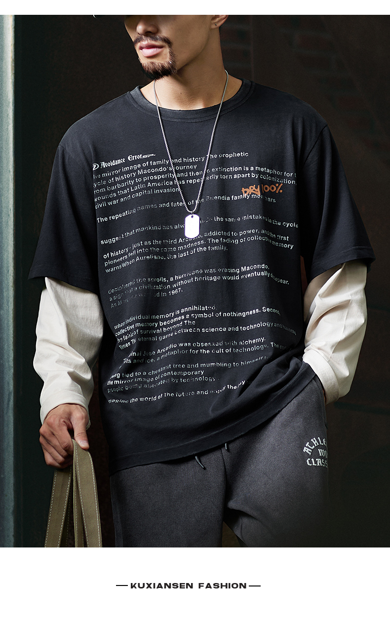 Fake two-piece American retro letter print long-sleeved T-shirt men's 2025 autumn trend brand loose cotton bottoming shirt