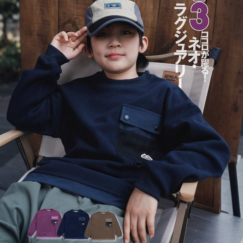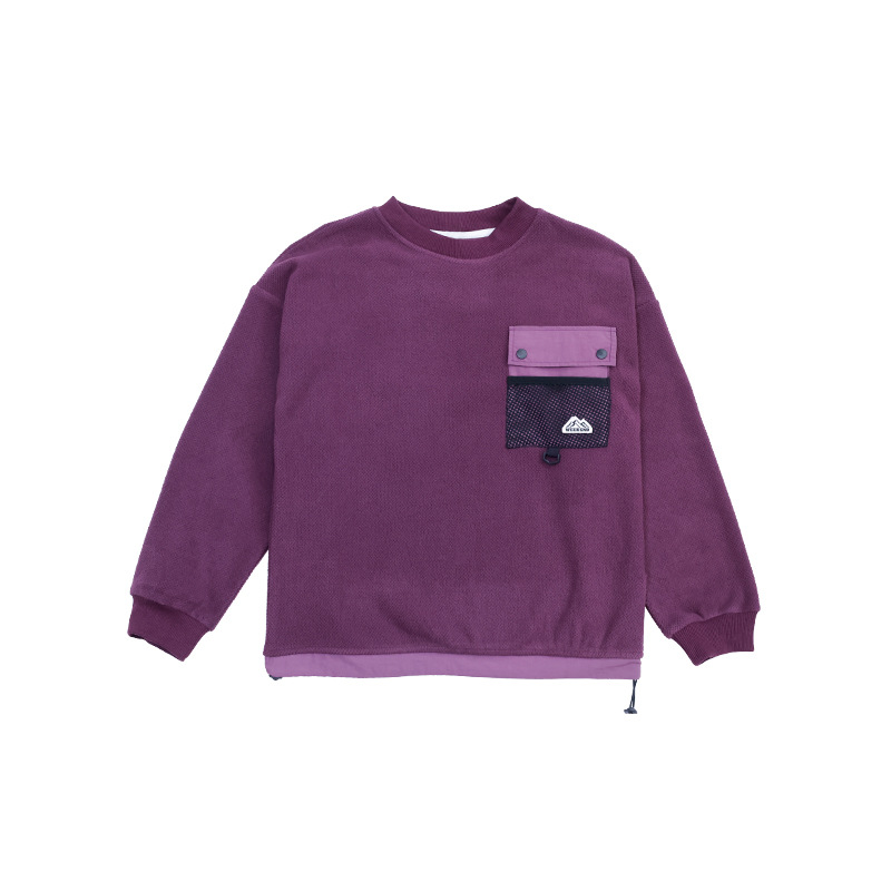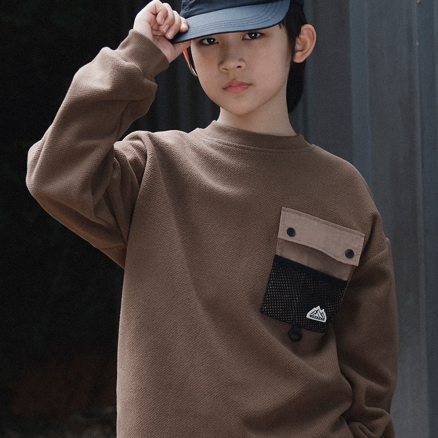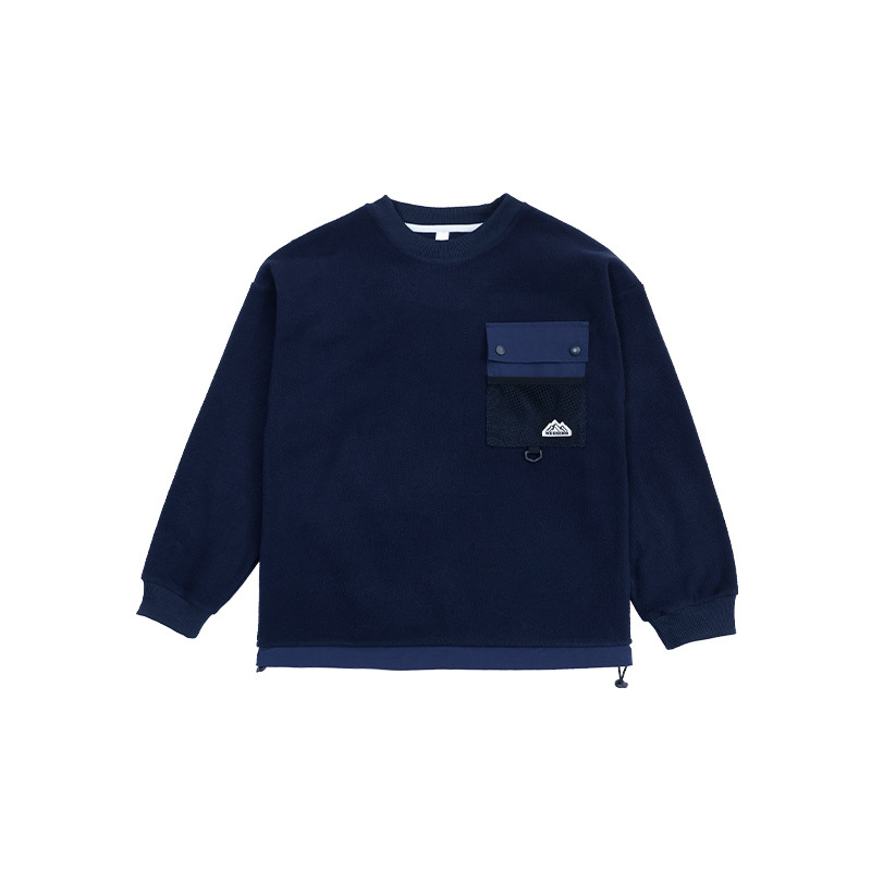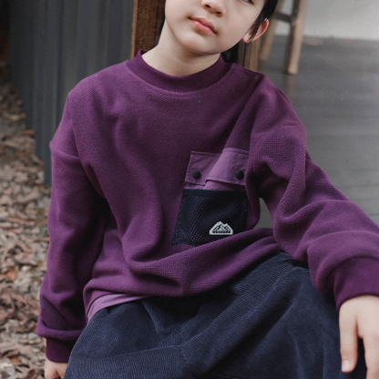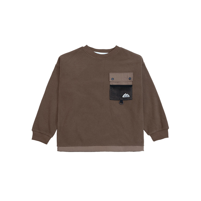 Kids' Pocket Patchwork Sweatshirt, 2025 Winter Style, Boys' Drawstring Hem Windproof Top, Long-Sleeved Sweatshirt for Medium and Large Children