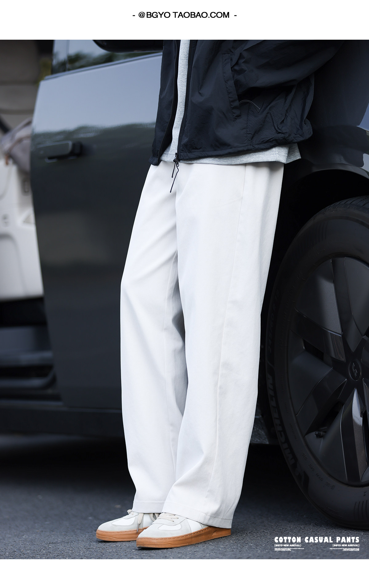 Summer thin black casual trousers for men, elastic waist, drape, American style, loose straight leg.