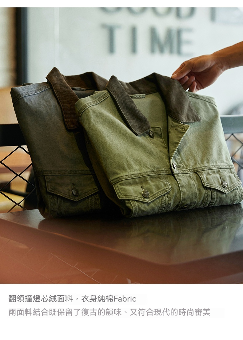 Detroit Retro Army Green Washed Denim Jacket Men's 2025 Autumn New Contrast Color Lapel Work Jacket