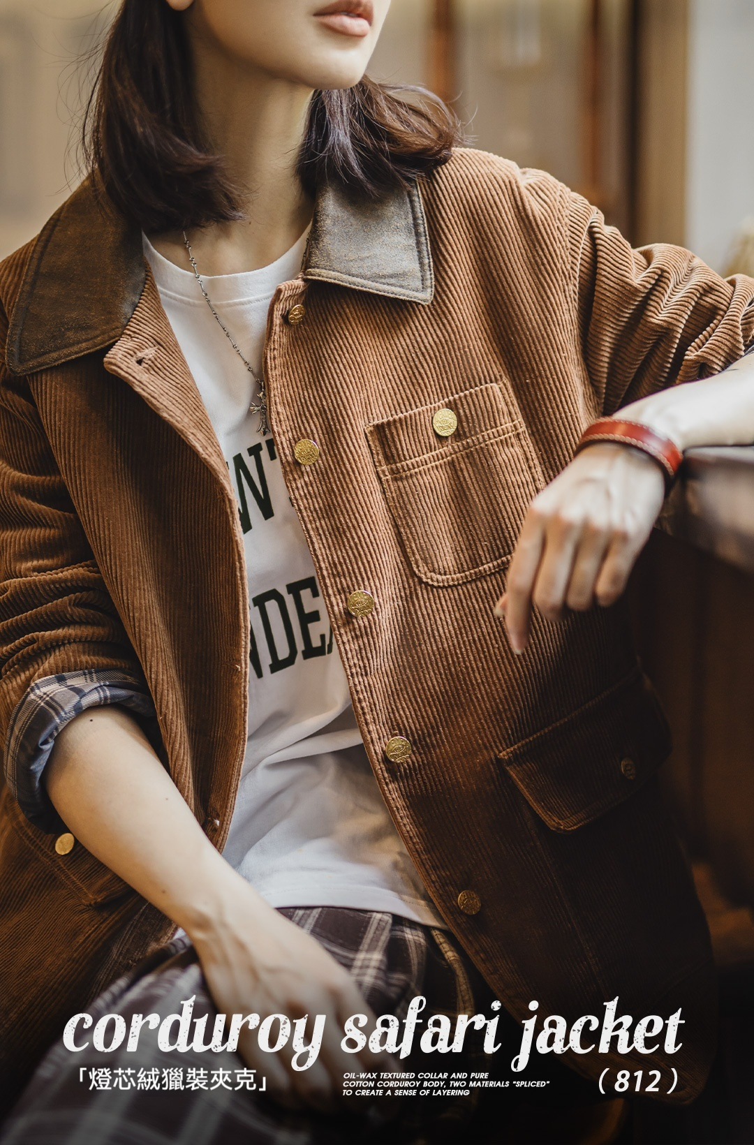 Vintage Maillard hit brown corduroy suede lapel workwear hunting jacket coat tops women autumn