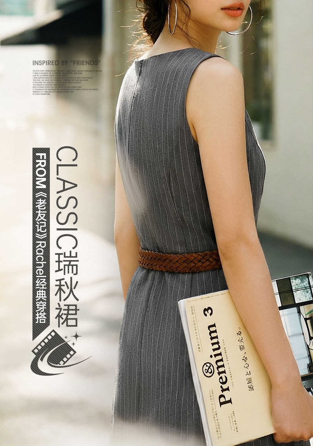 Gray light business suit Rachel skirt intellectual sleeveless vest waist-cinching long dress women's summer