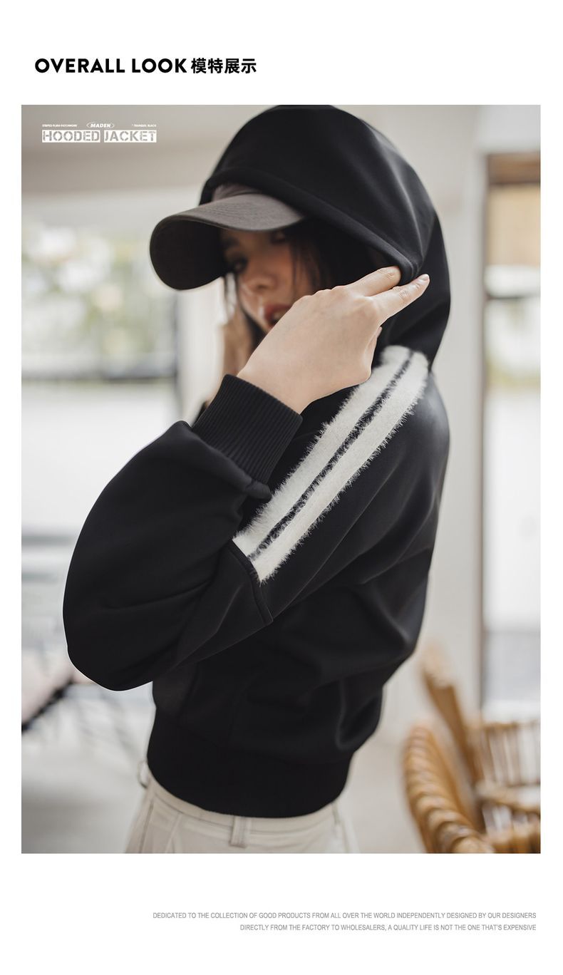 Air layer hoodie cardigan jacket striped plush splicing sweater spring sports commuter tops for women