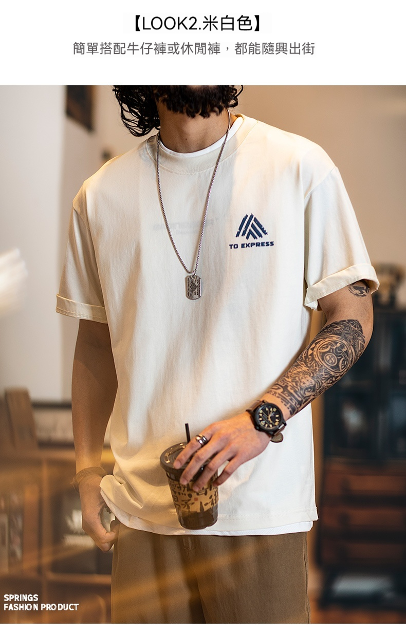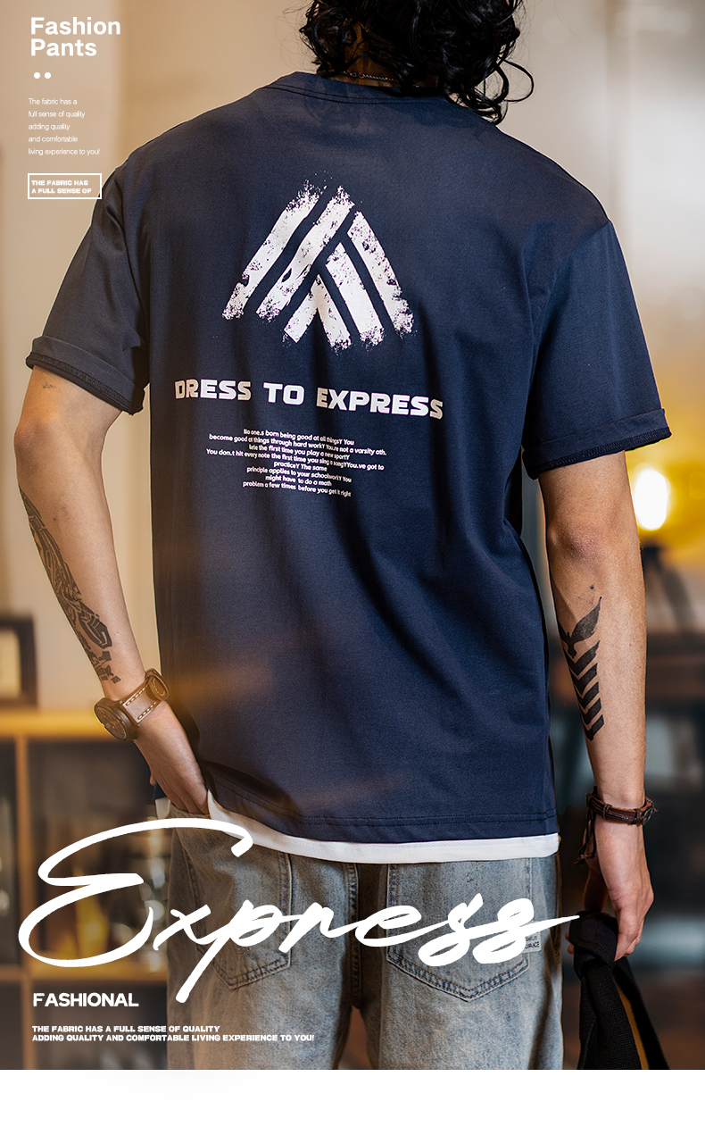 American casual printed short-sleeved T-shirt men's summer 2025 new pure cotton slightly loose round neck top half-sleeved men