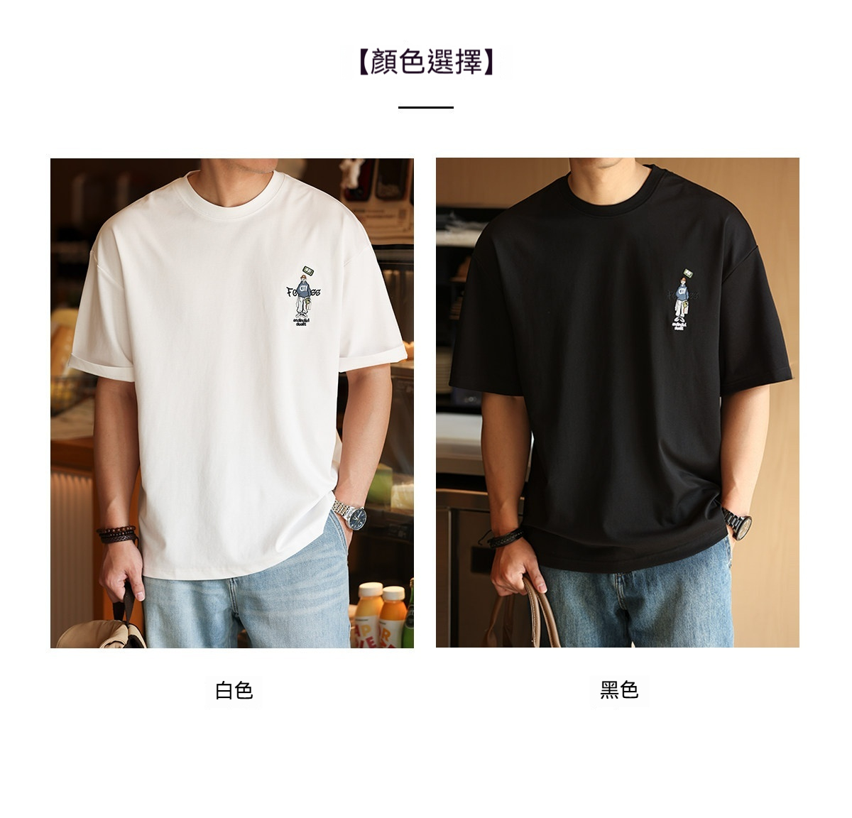American-style casual, finely crafted, offset-printed short-sleeved T-shirt for men, 210g, cartoon-themed, fun round neck undershirt.