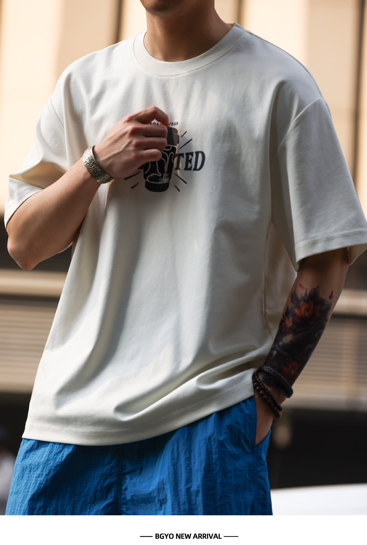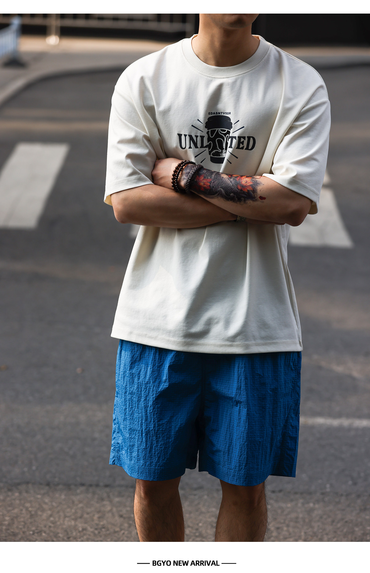 American casual 200g lightweight wrinkle-resistant printed T-shirt for men, summer skin-friendly quick-drying base layer
