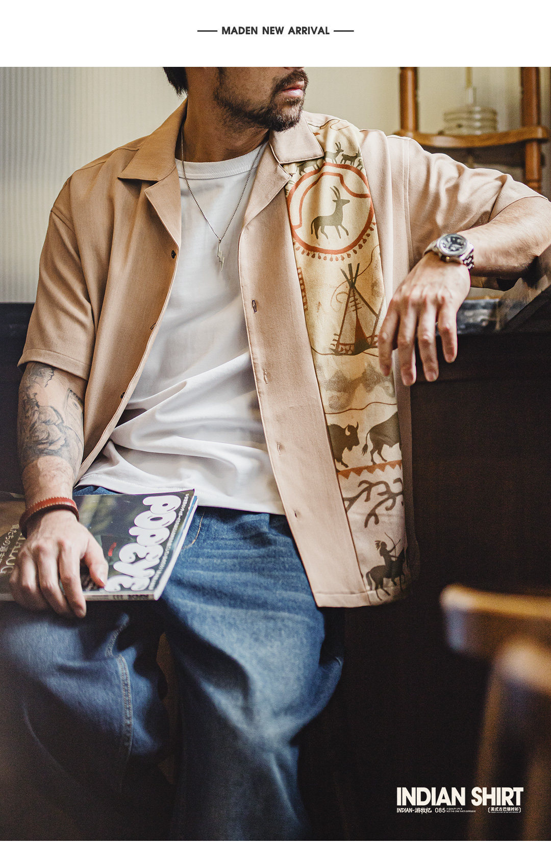 American retro print Cuban collar shirt, Indian style, thin short-sleeved cotton shirt jacket for men, summer