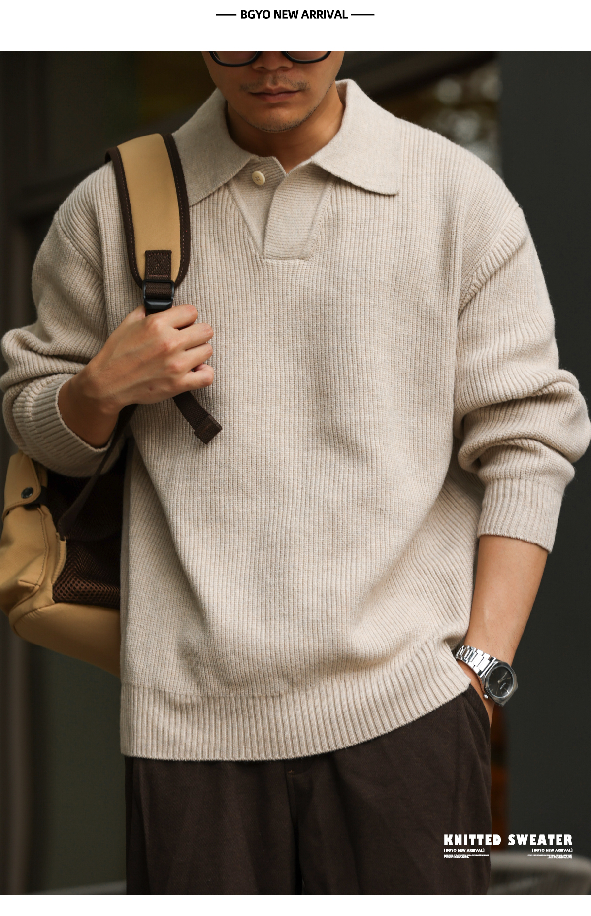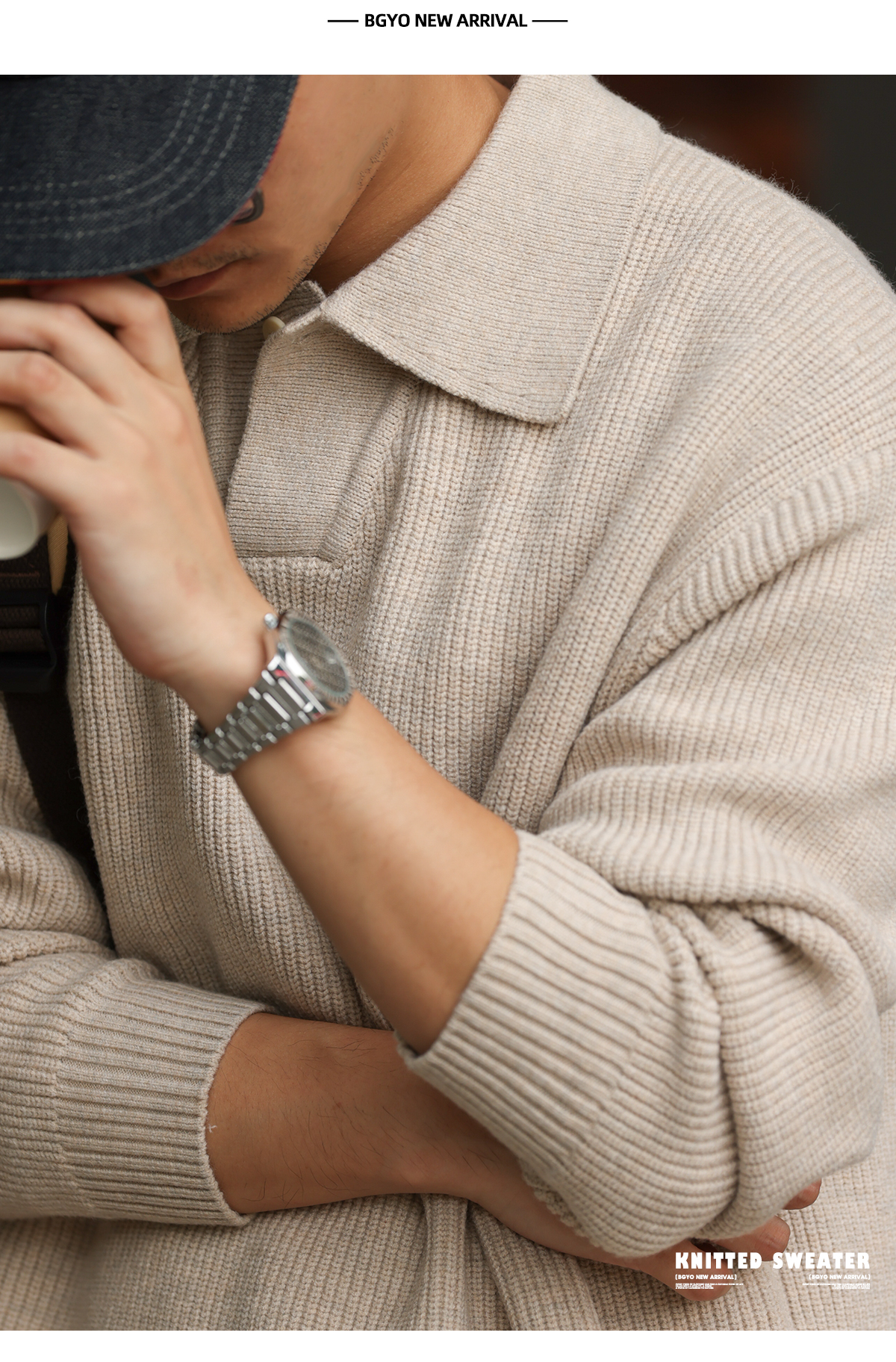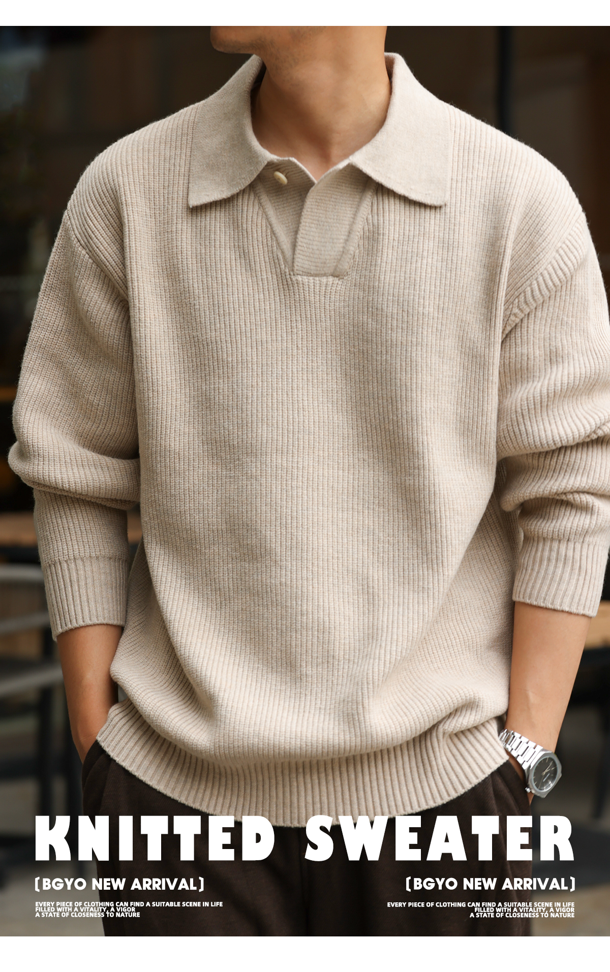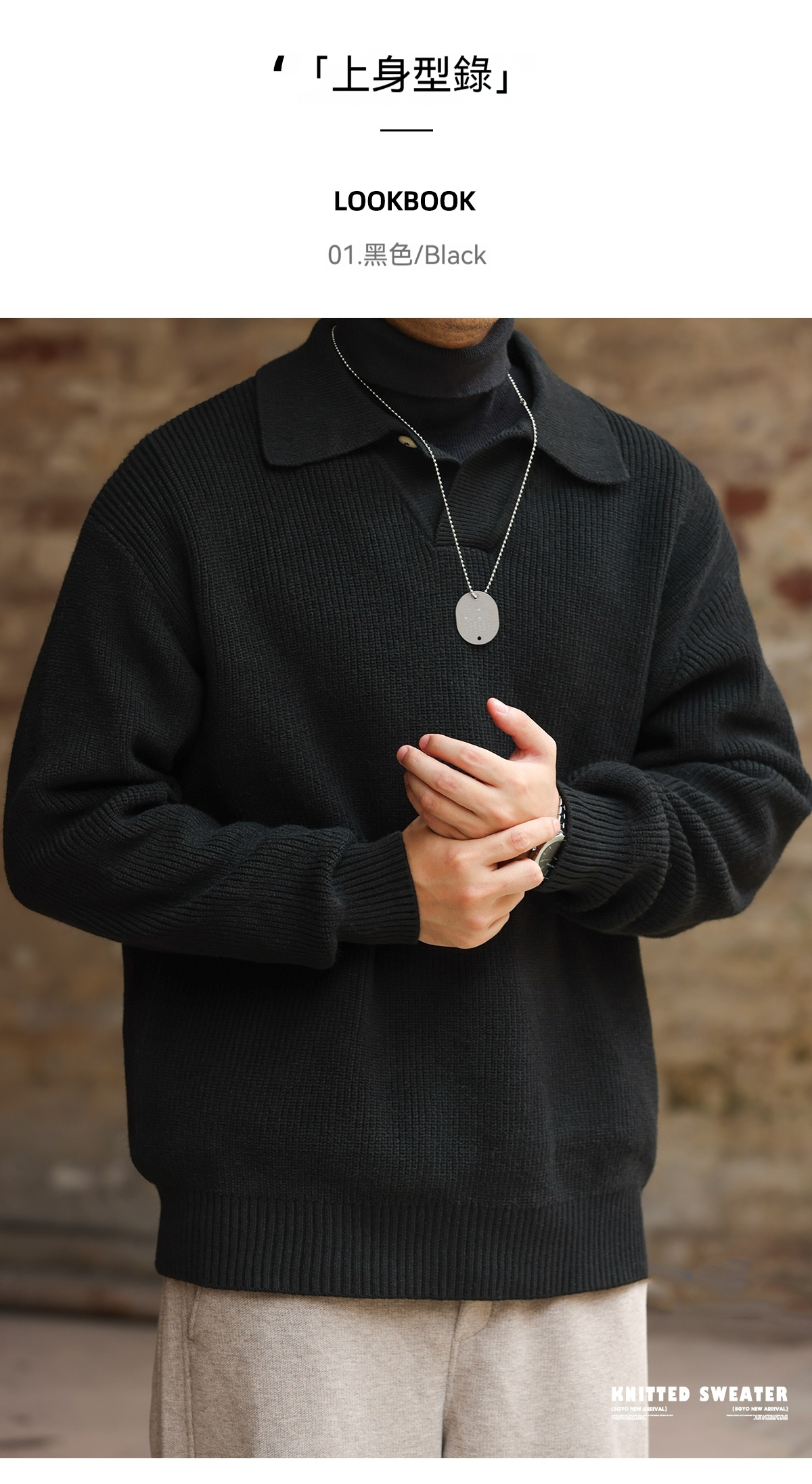 American retro single button polo collar sweater men's 660g thick needle lazy style sweater jacket