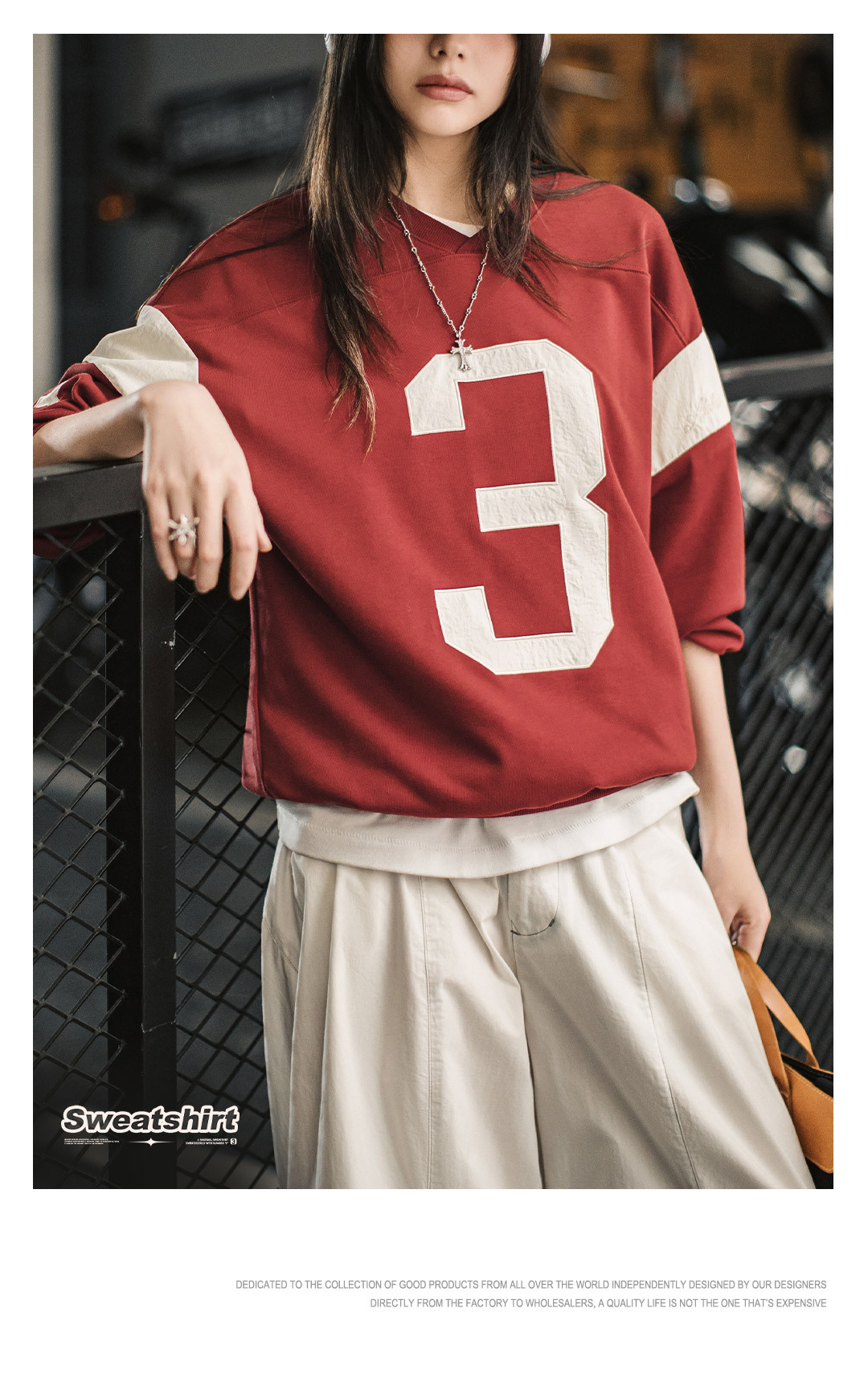 American retro baseball V-neck capless letter hit red stitching pullover long-sleeved casual sweatshirt for women autumn