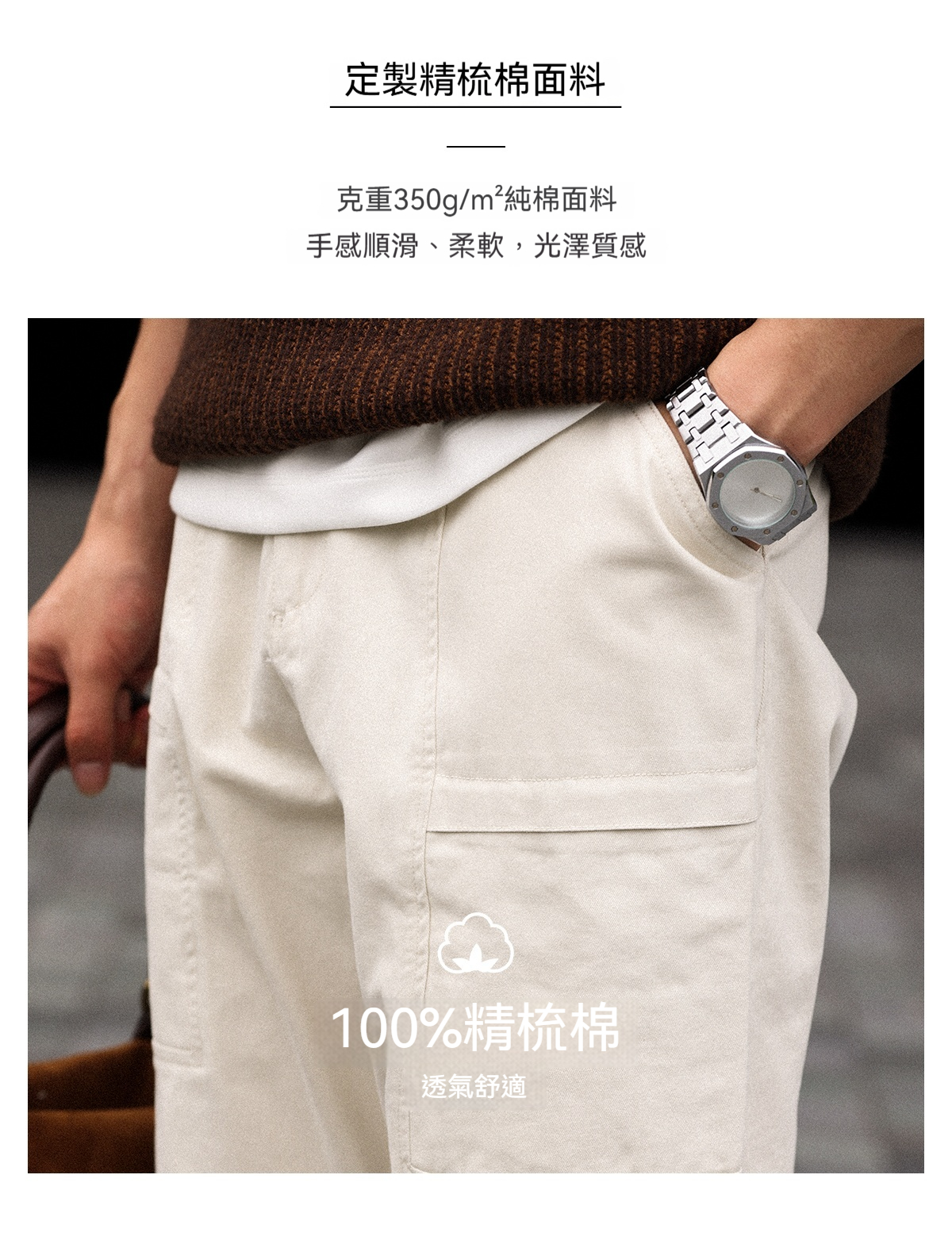 American retro white casual pants men's combed cotton semi-elastic waist straight casual workwear trousers