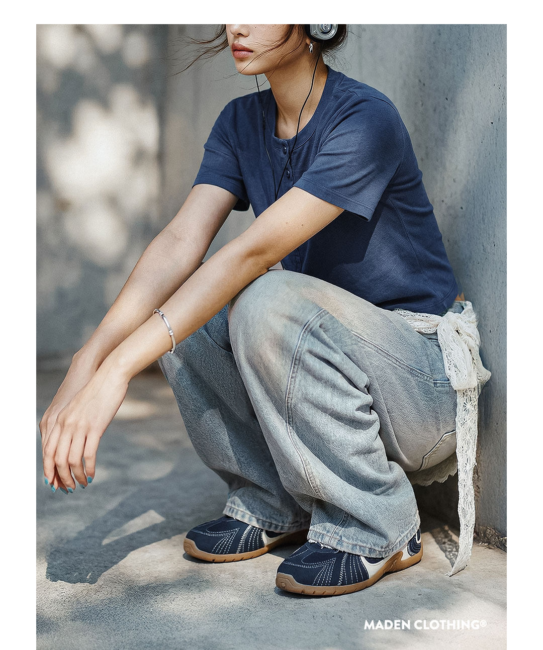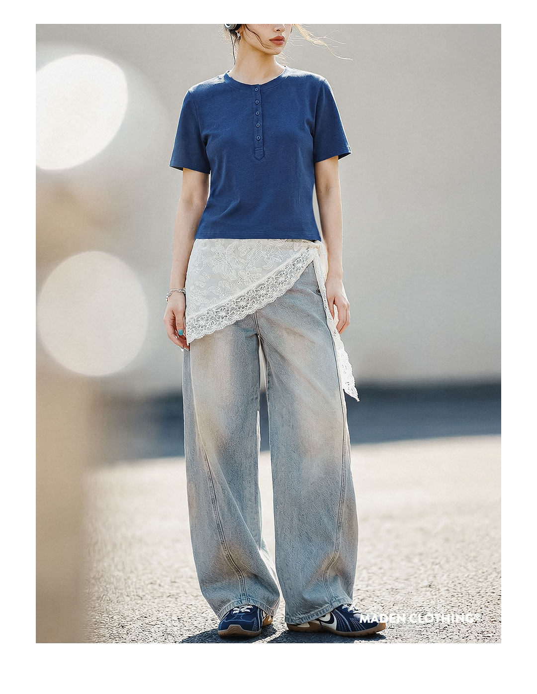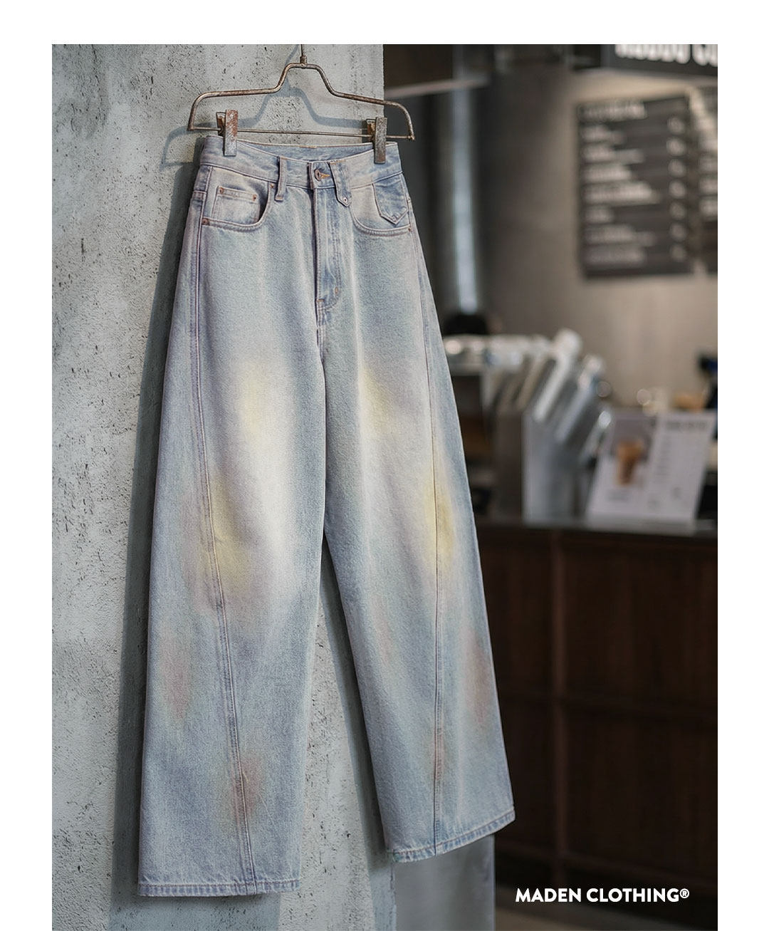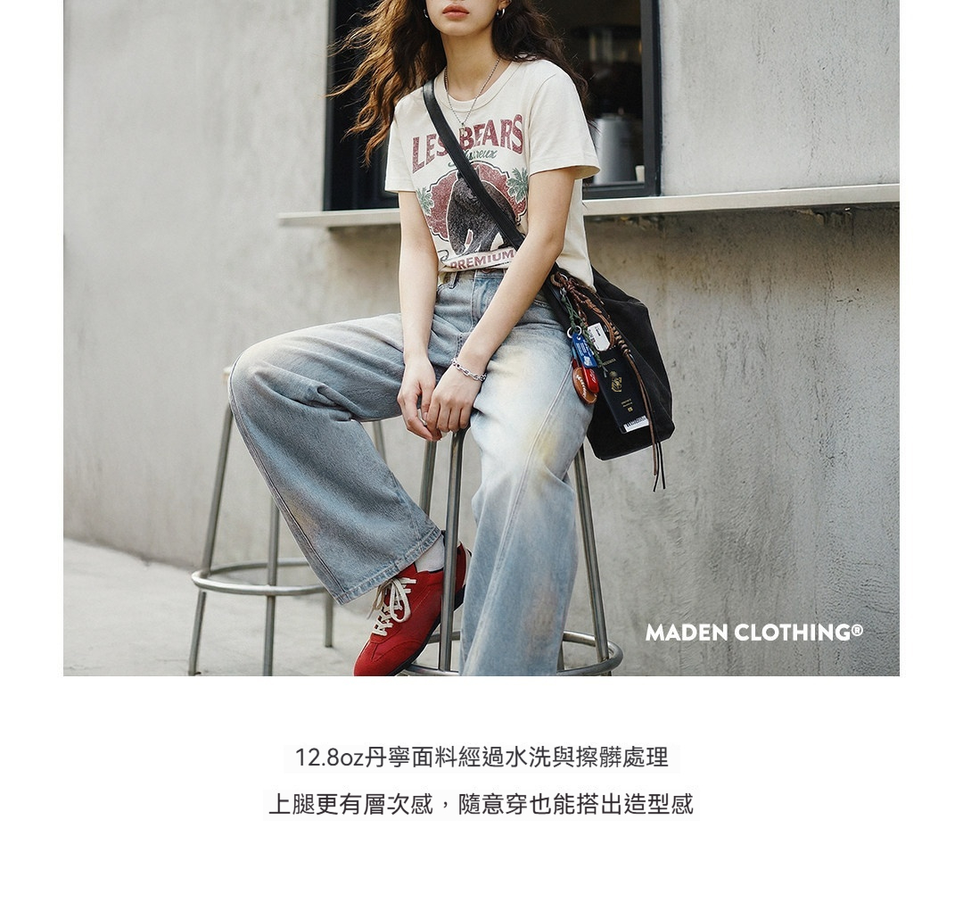 American retro slim-fit curved sickle wash distressed denim jeans, straight leg wide-leg slimming trousers for women, spring style.