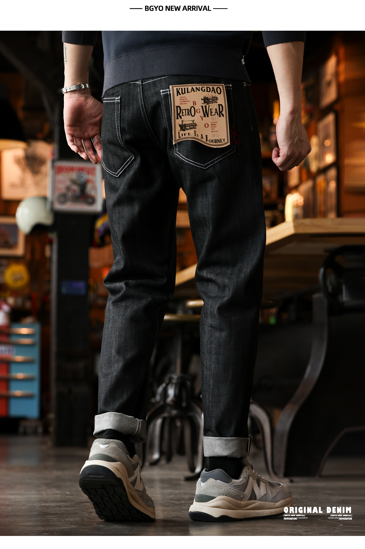 American Retro Silver Thread Selvedge Denim Jeans Men's 14oz Heavyweight Embroidered Straight Leg Pants