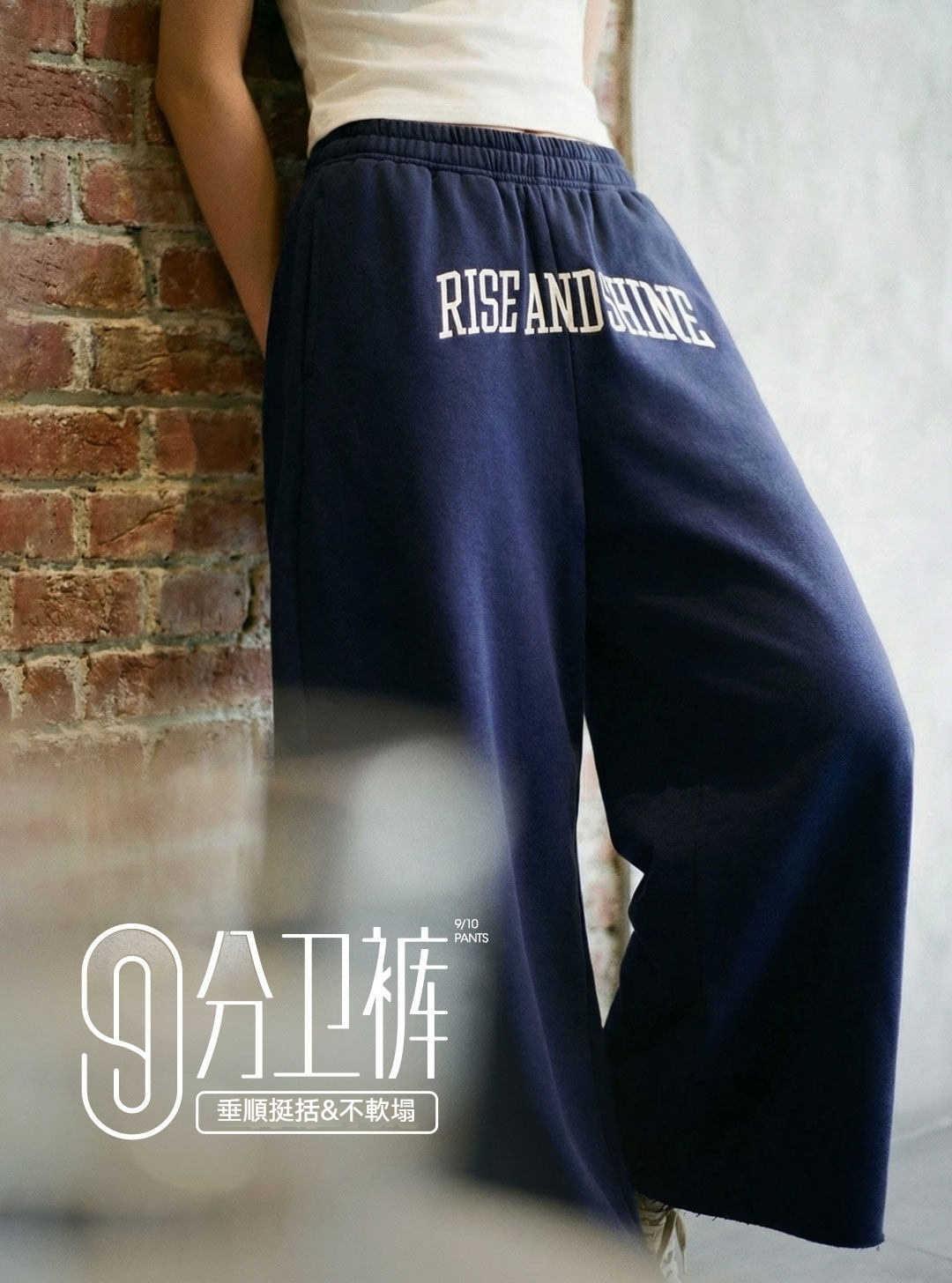 American retro high-waisted embroidered A-line straight wide-leg sweatpants, cropped casual pants for women, spring style.