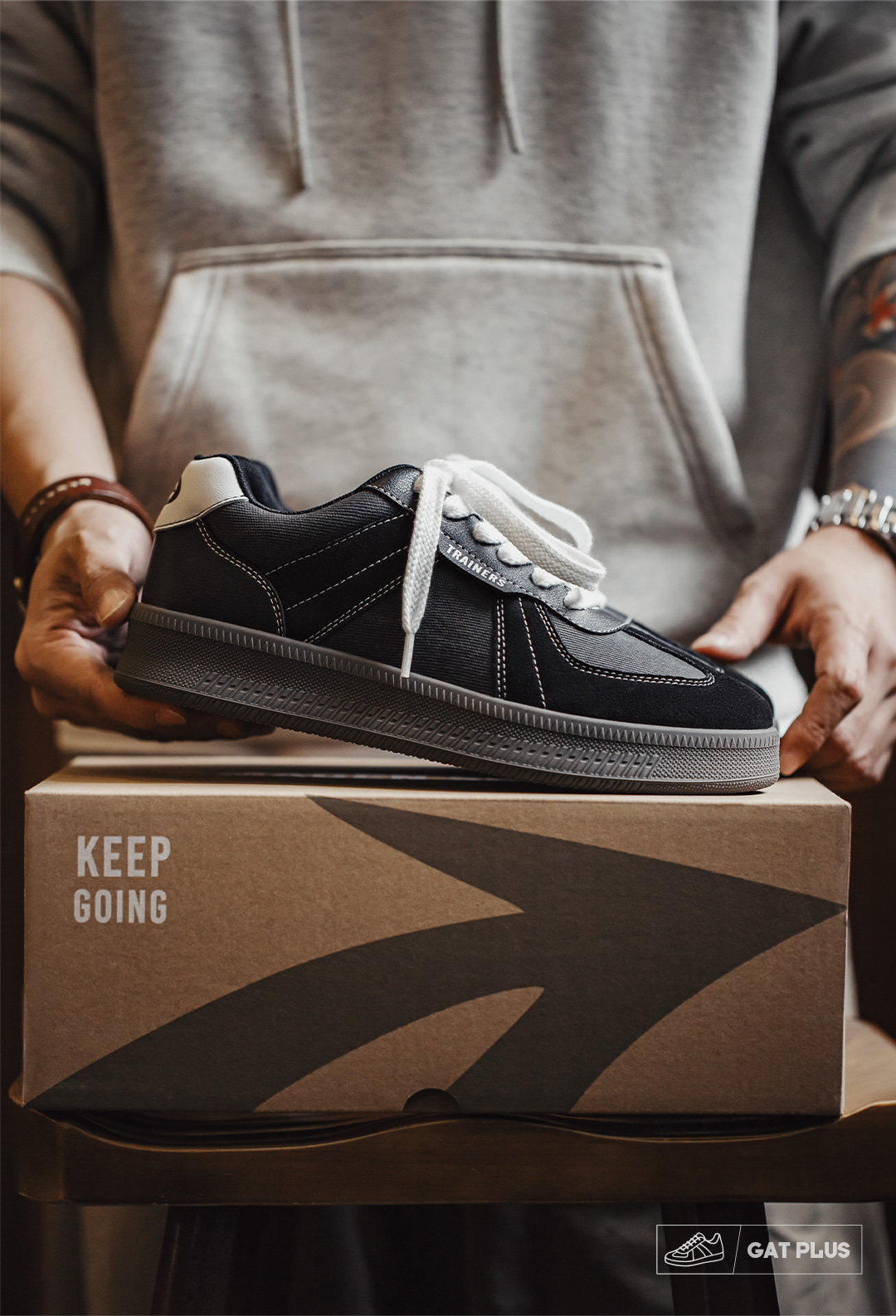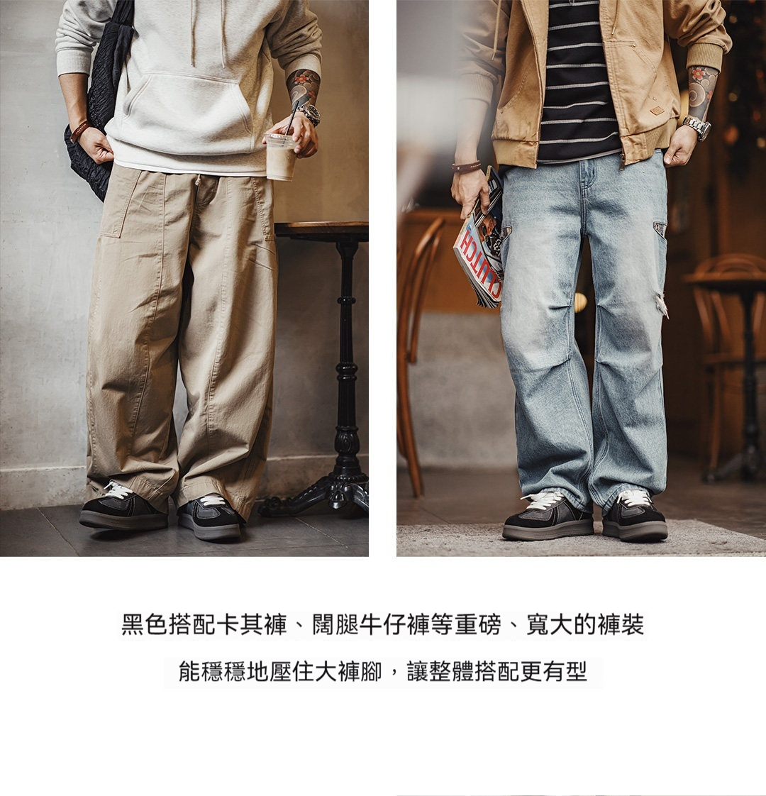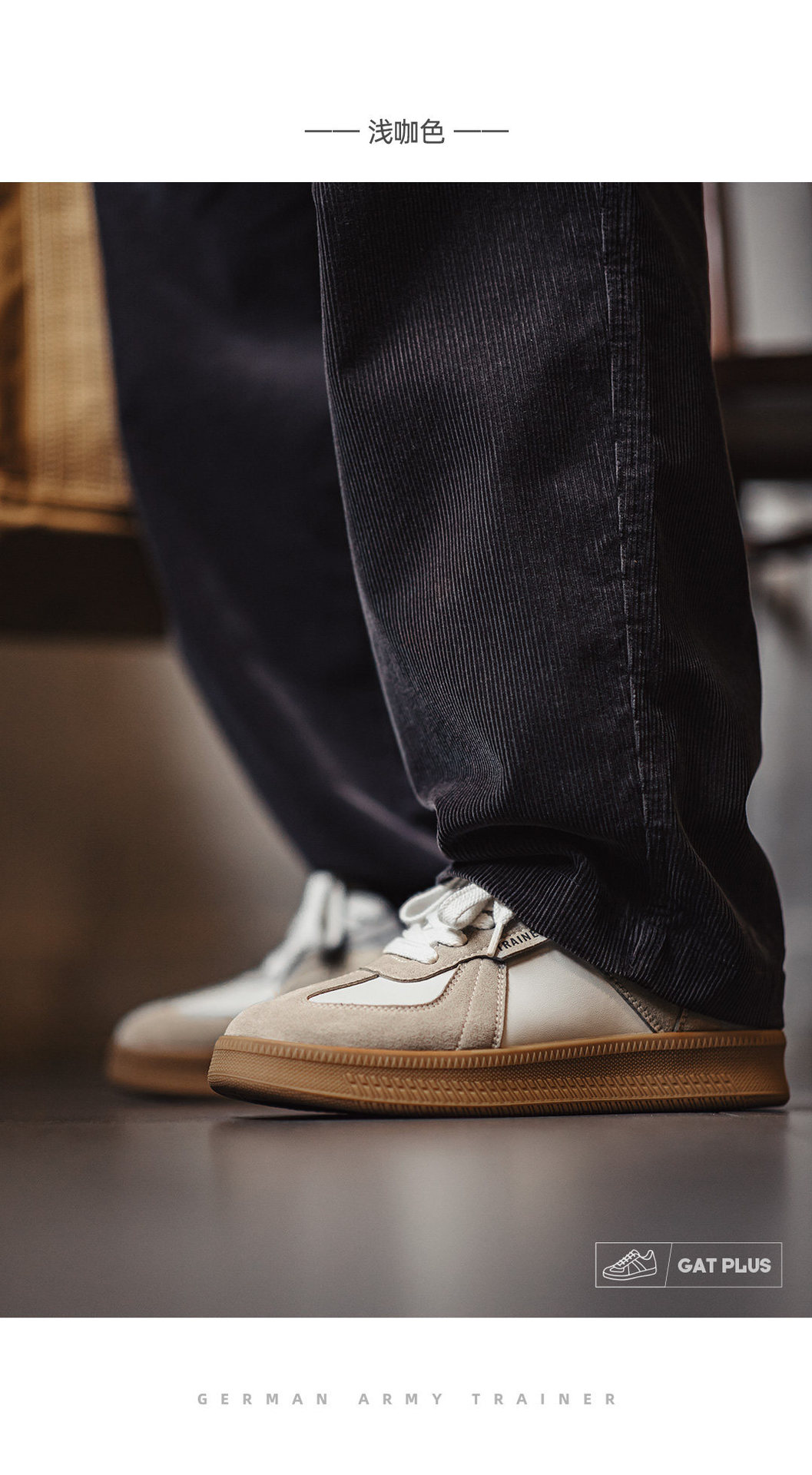 美式德訓板鞋經典復古咖色拼接厚底百搭增高鞋休閒阿甘鞋男款