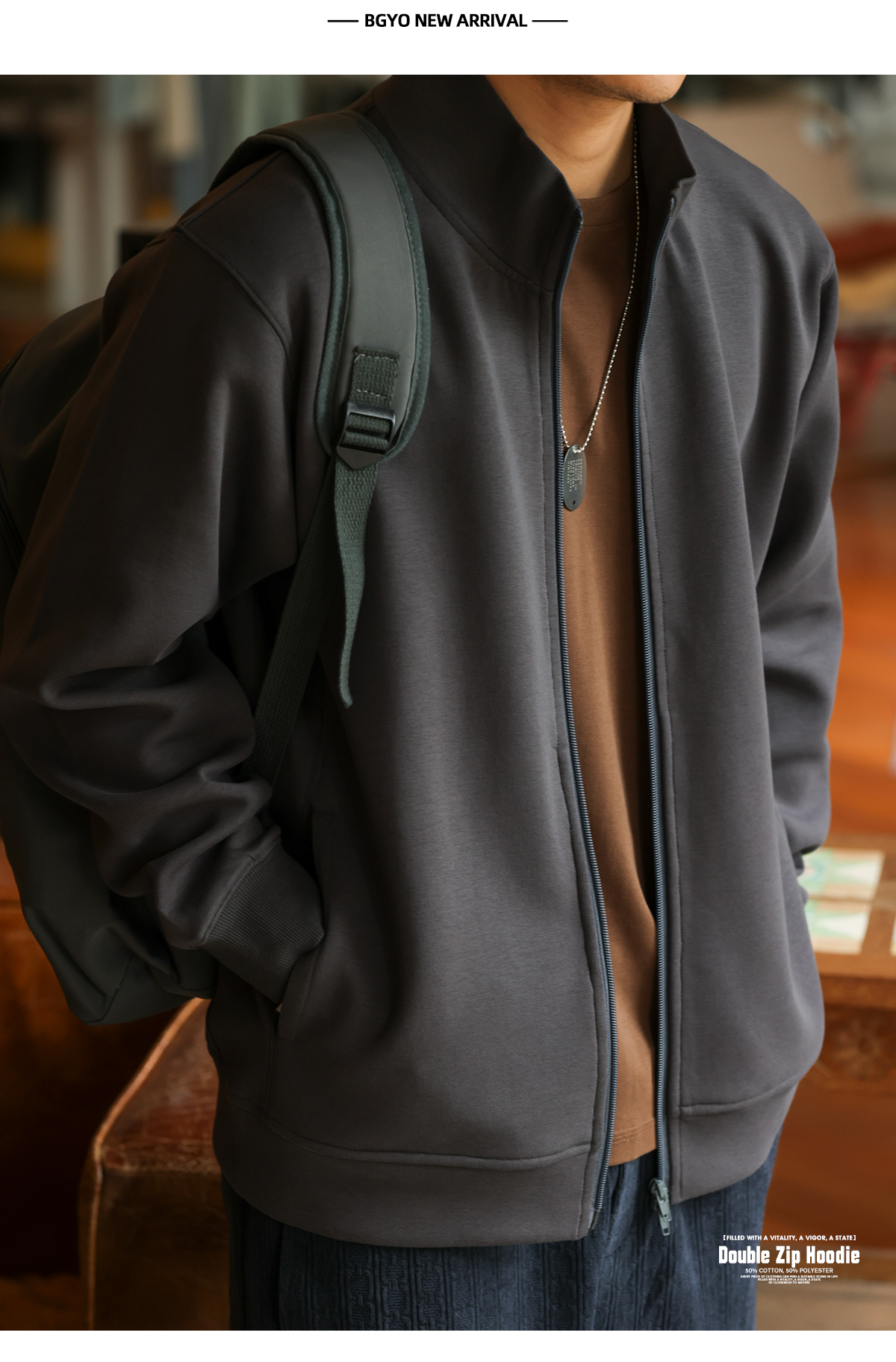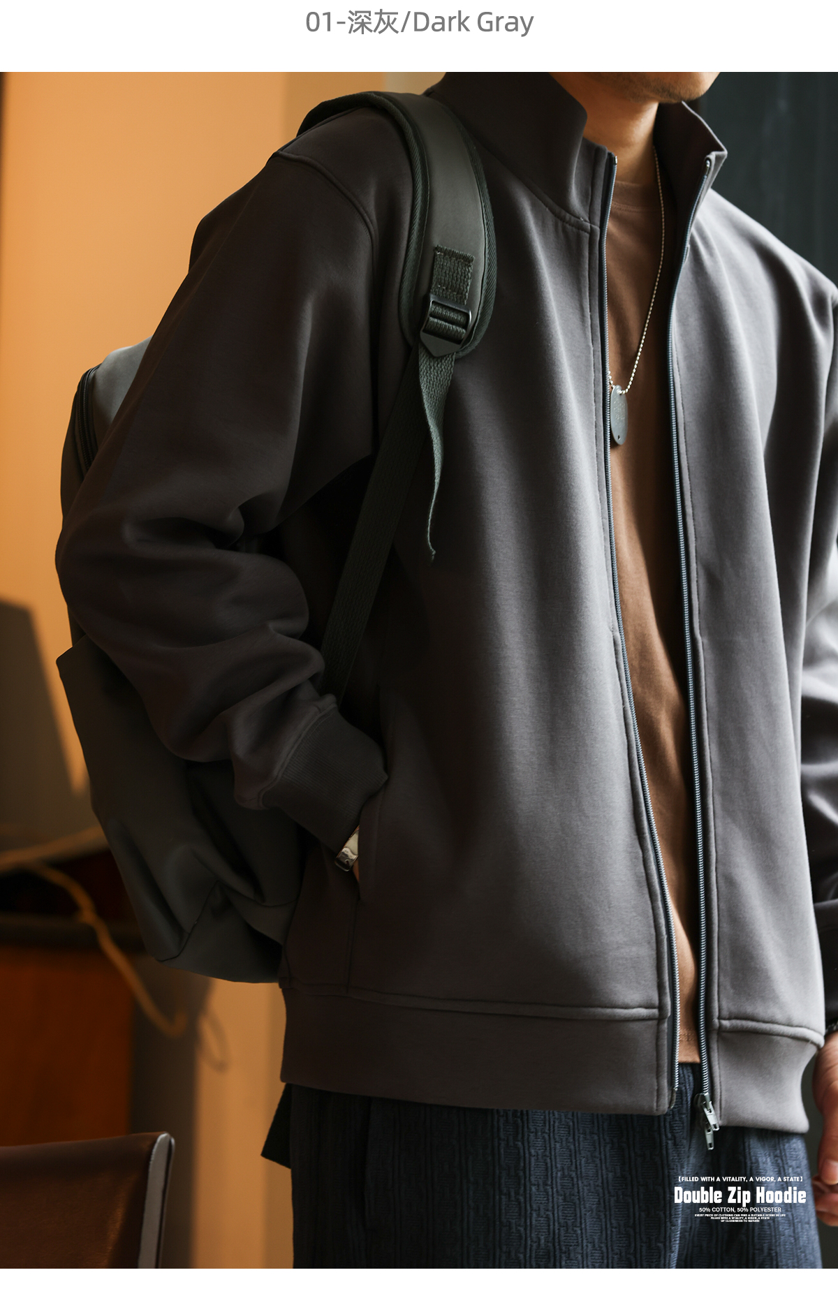 American heavyweight stand collar cardigan sweatshirt men's cleanfit airy anti-wrinkle sports jacket autumn