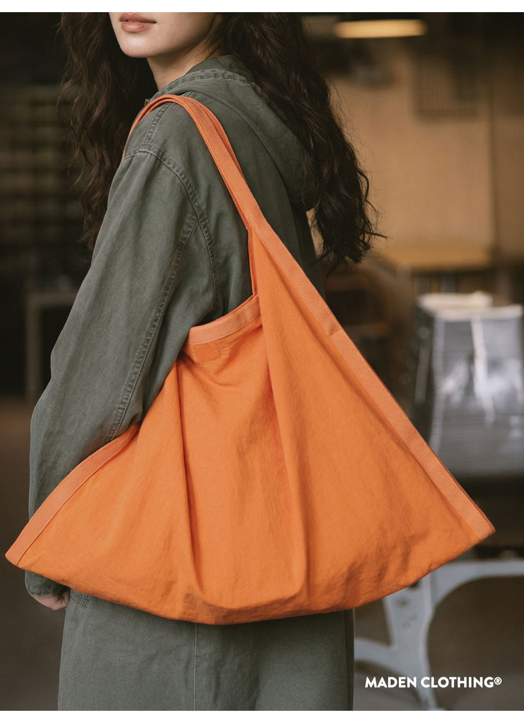 Sunset Orange Nylon Extra Large Capacity Commuter Laptop Handbag Shoulder Bag Triangle Bag for Women