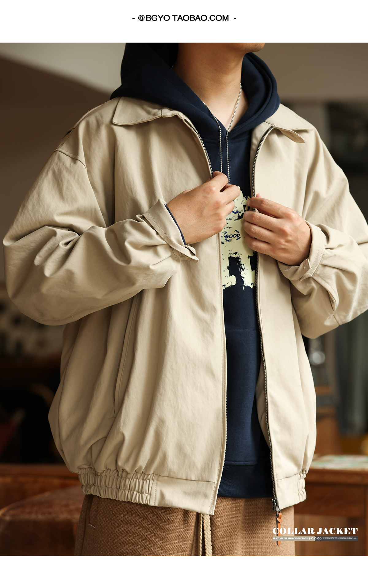 Lightweight faded coach jacket for men, zip-up lapel, clean fit, casual commuter coat.