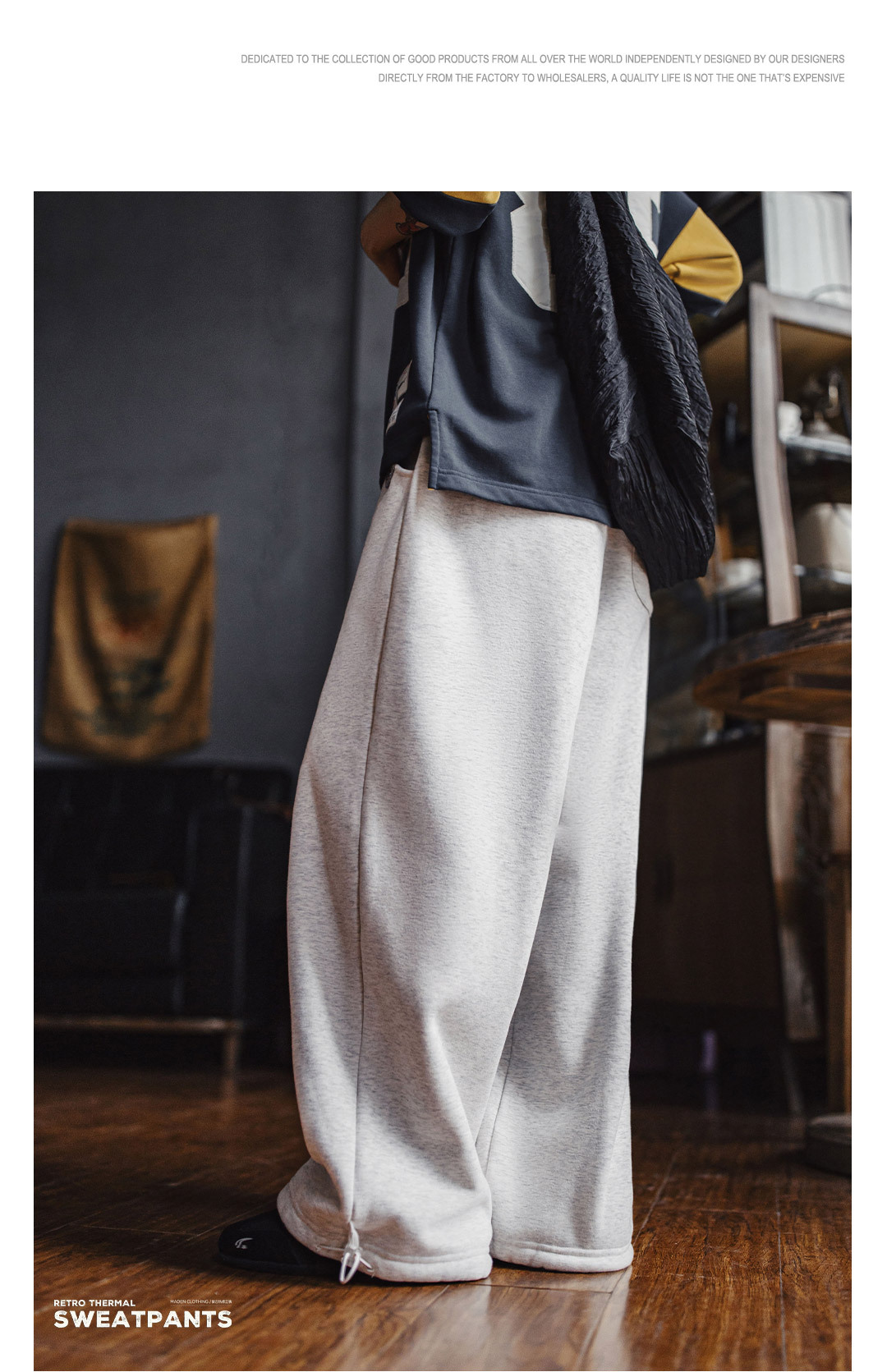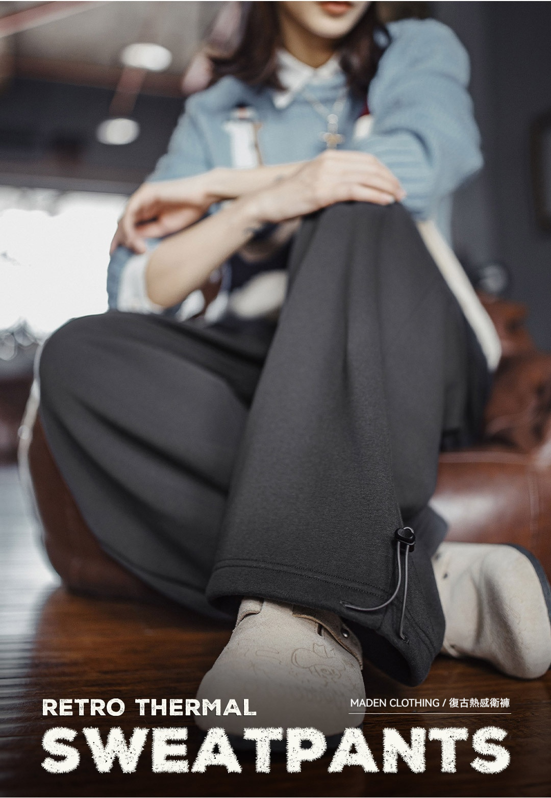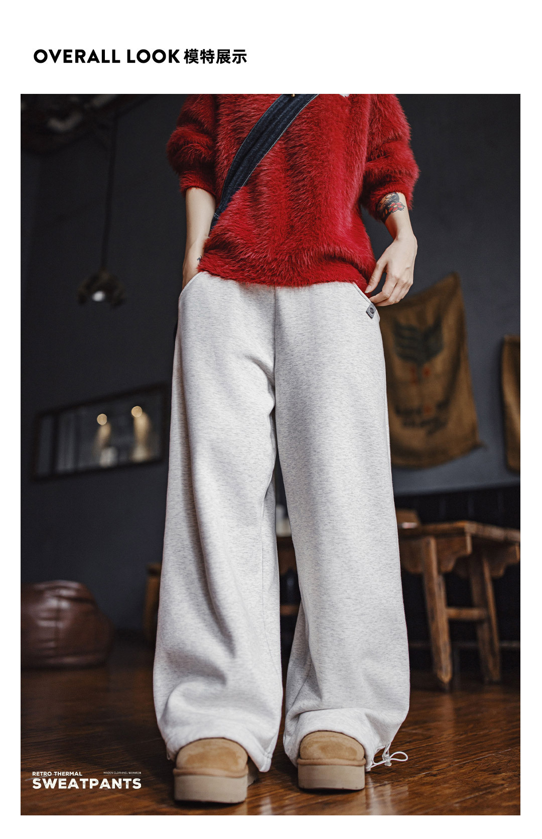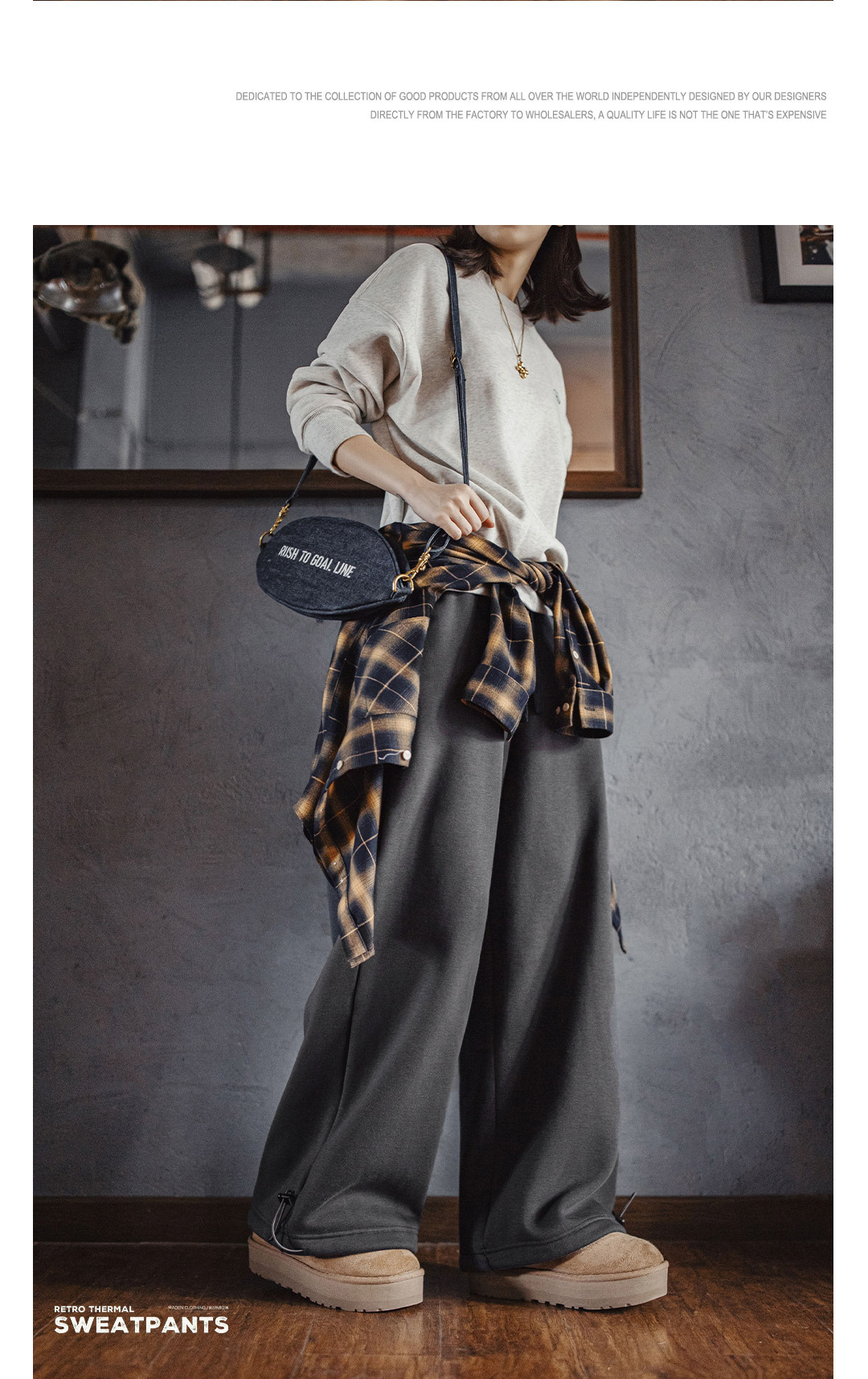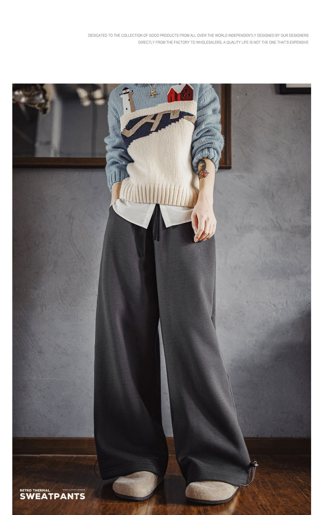 Knitted straight wide-leg thick fleece trousers, casual drawstring cuffs, warm and comfortable long pants for women in autumn and winter.