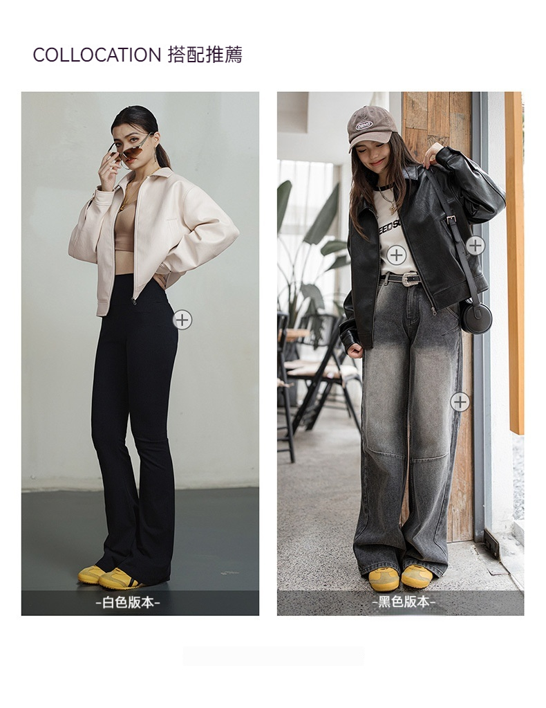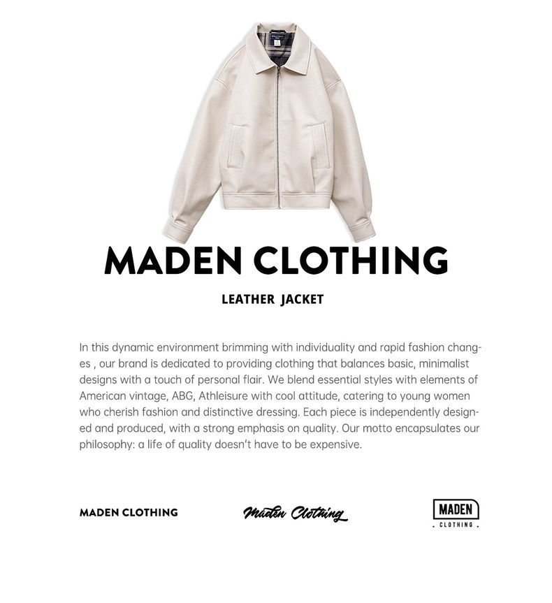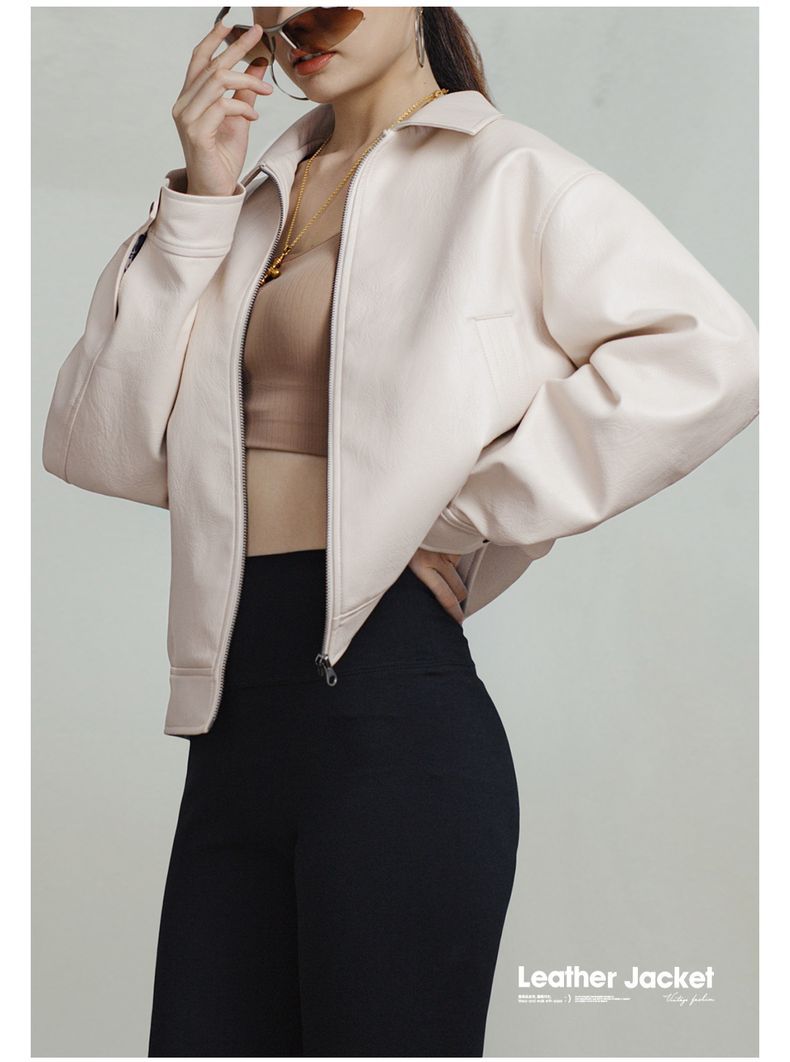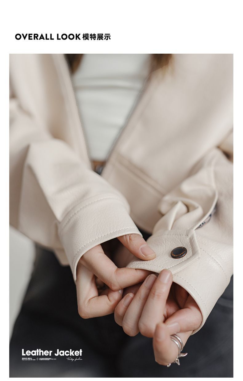 American retro off-white leather coat loose motorcycle short jacket commuter coat top spring and autumn women