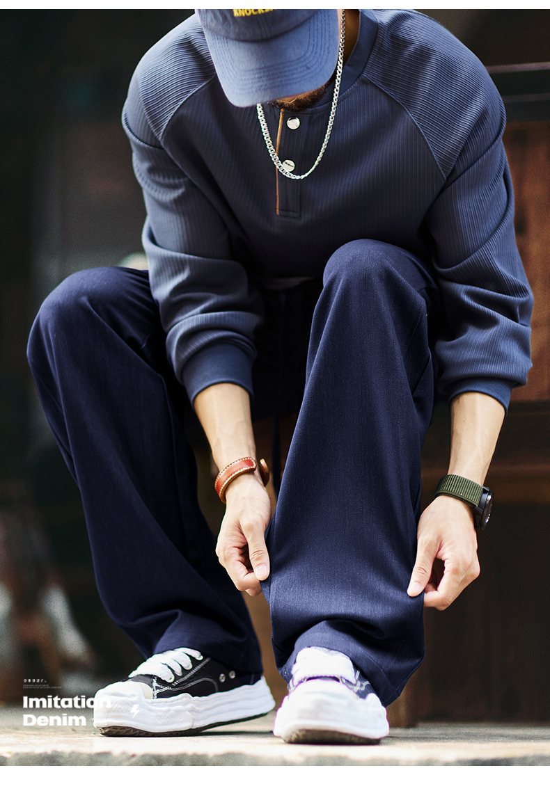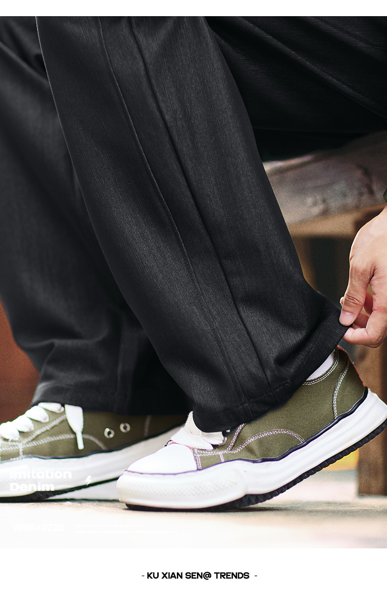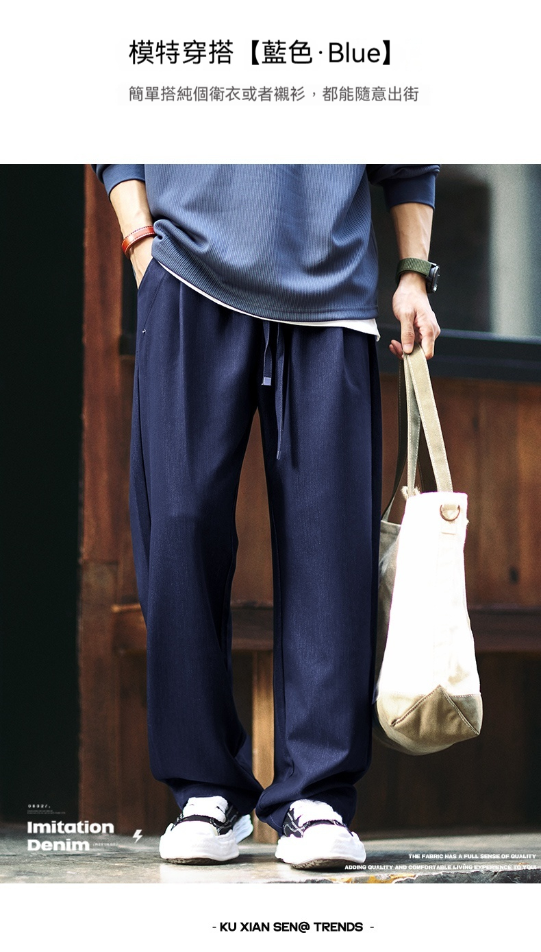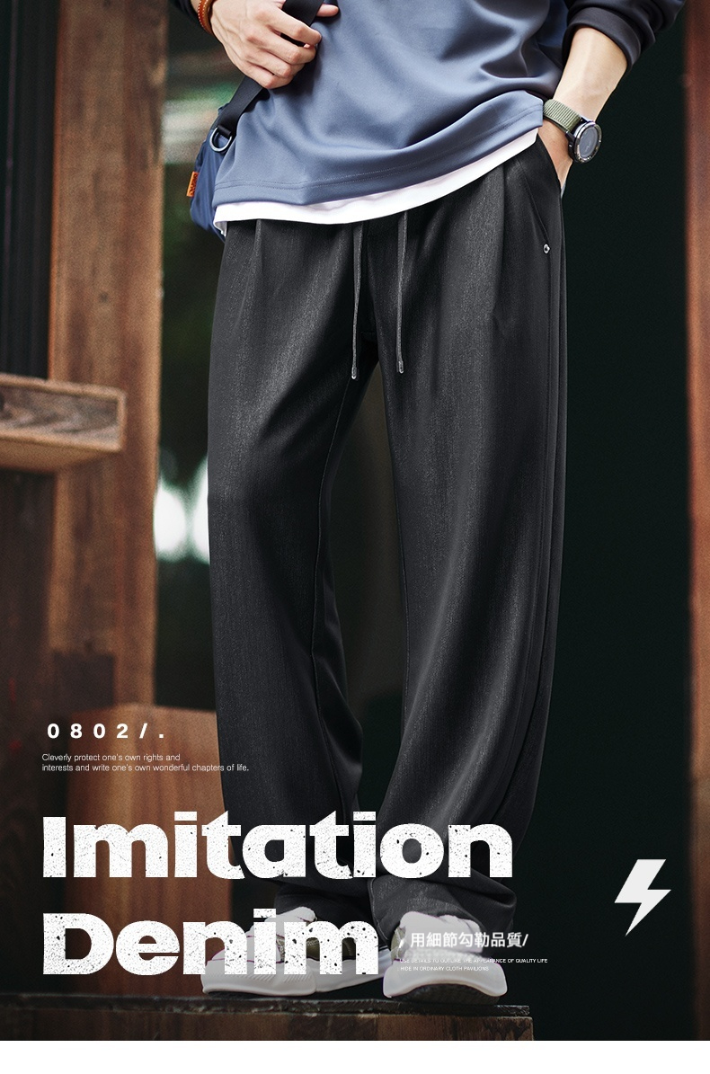 2025 autumn new imitation denim casual pants men's loose versatile drape straight pants cleanfit wide-leg trousers