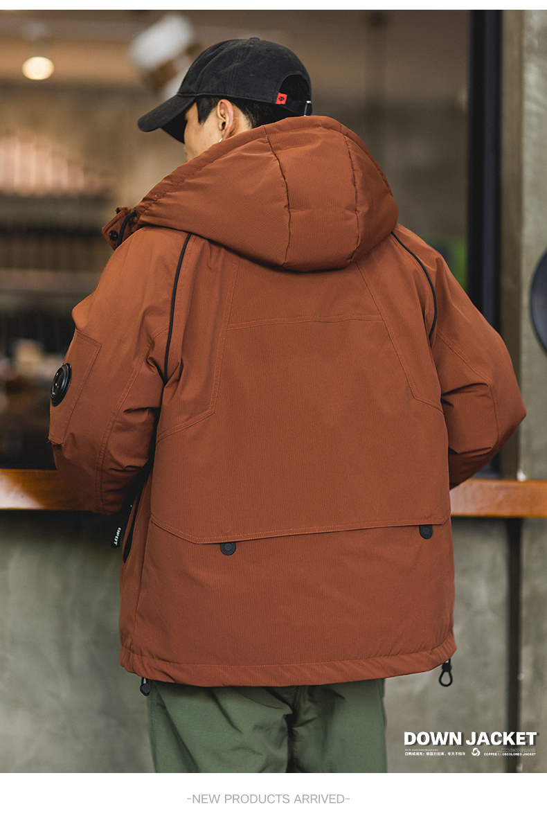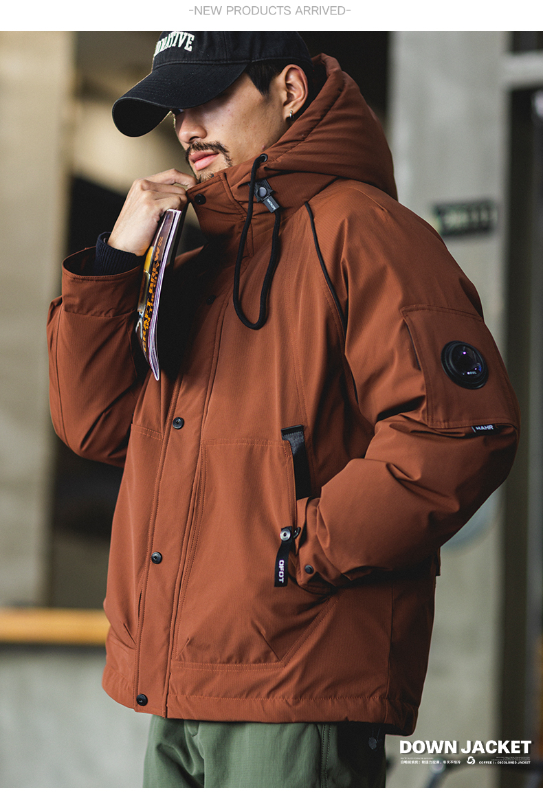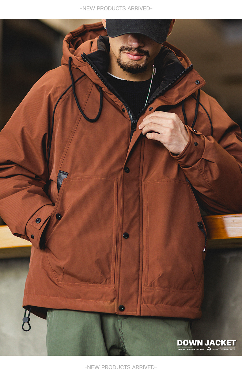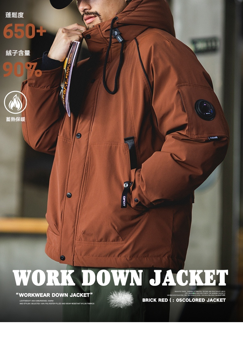 90% White Duck Down Brick Red Hooded Down Jacket for Men, 2025 Winter New Style, Loose Fit, Warm Workwear, Windbreaker