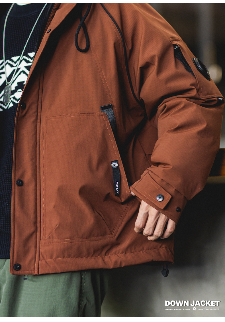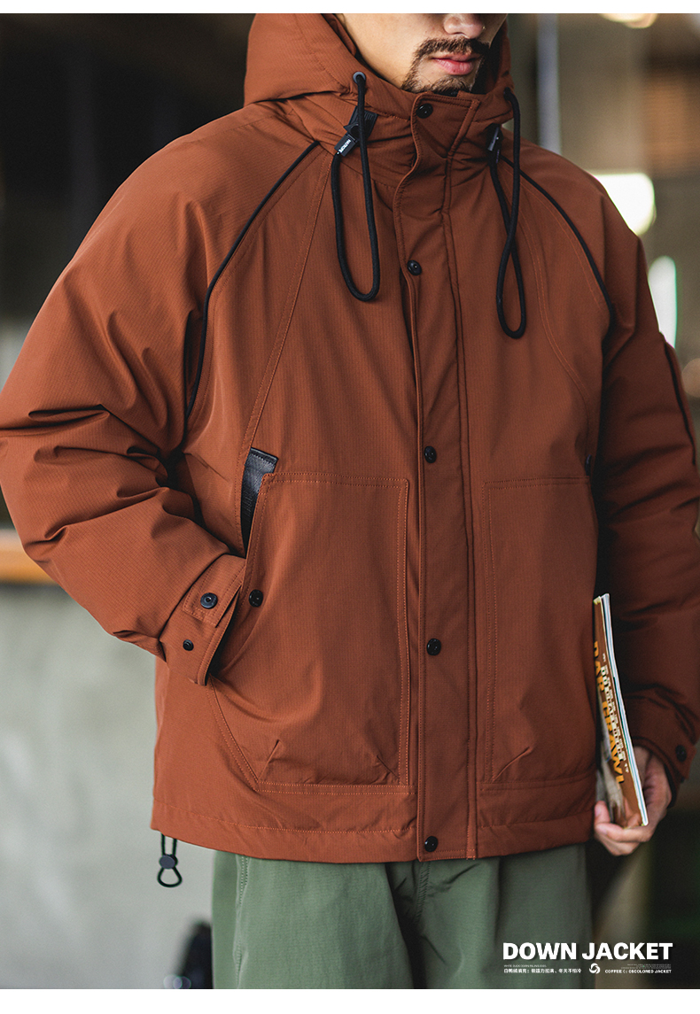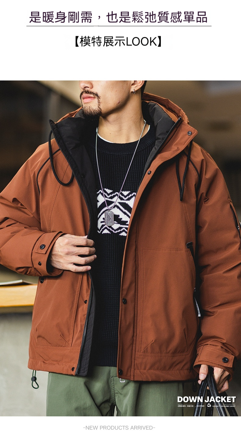 90% White Duck Down Brick Red Hooded Down Jacket for Men, 2025 Winter New Style, Loose Fit, Warm Workwear, Windbreaker