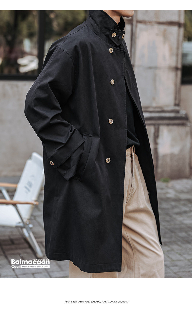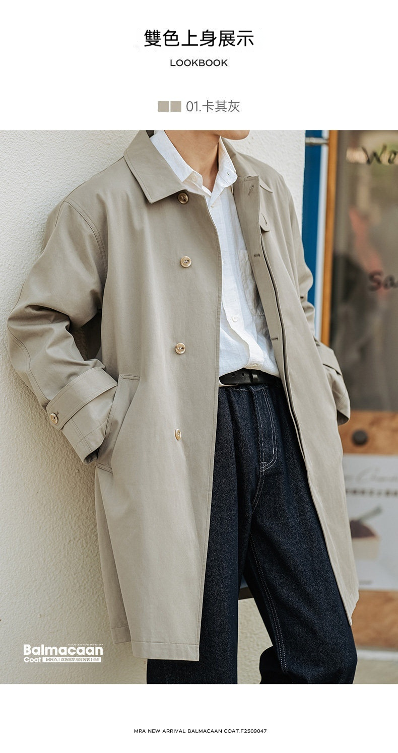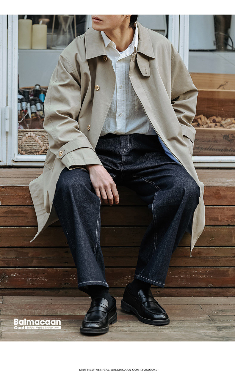 MRA Gabardine Balmacan Trench Coat, Mid-Length, Overlapped Placket, Heavyweight Bloodstained Gangster Coat, Spring
