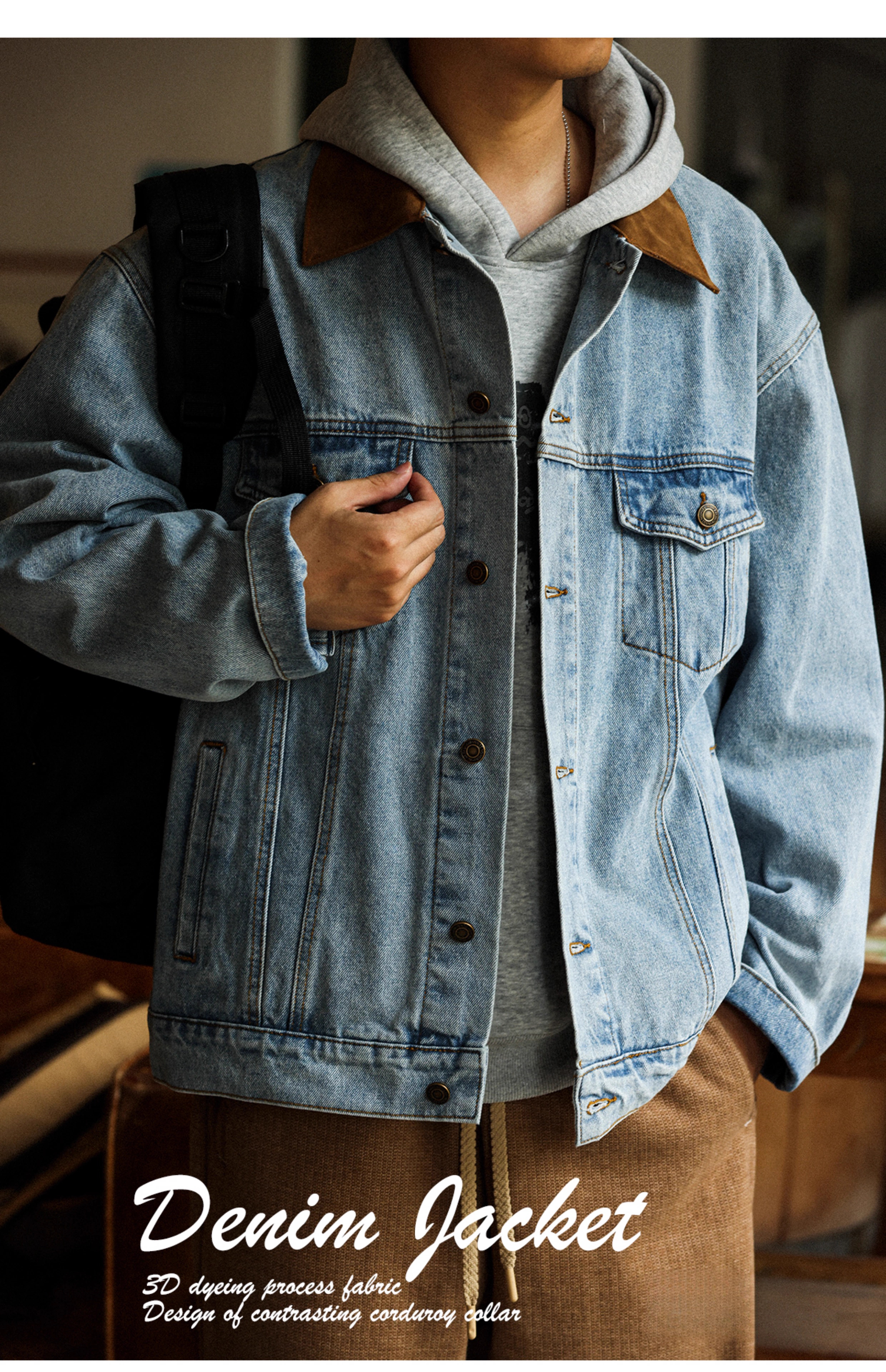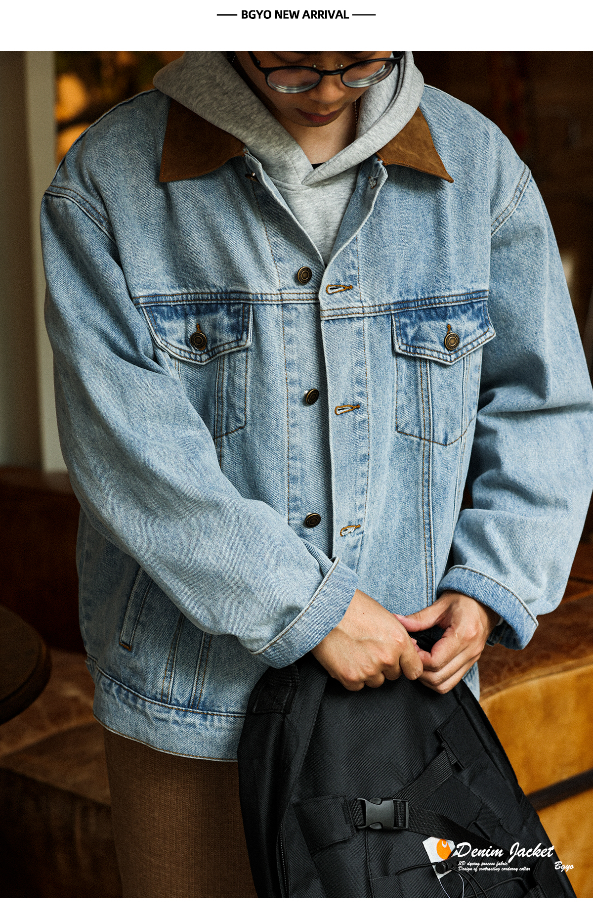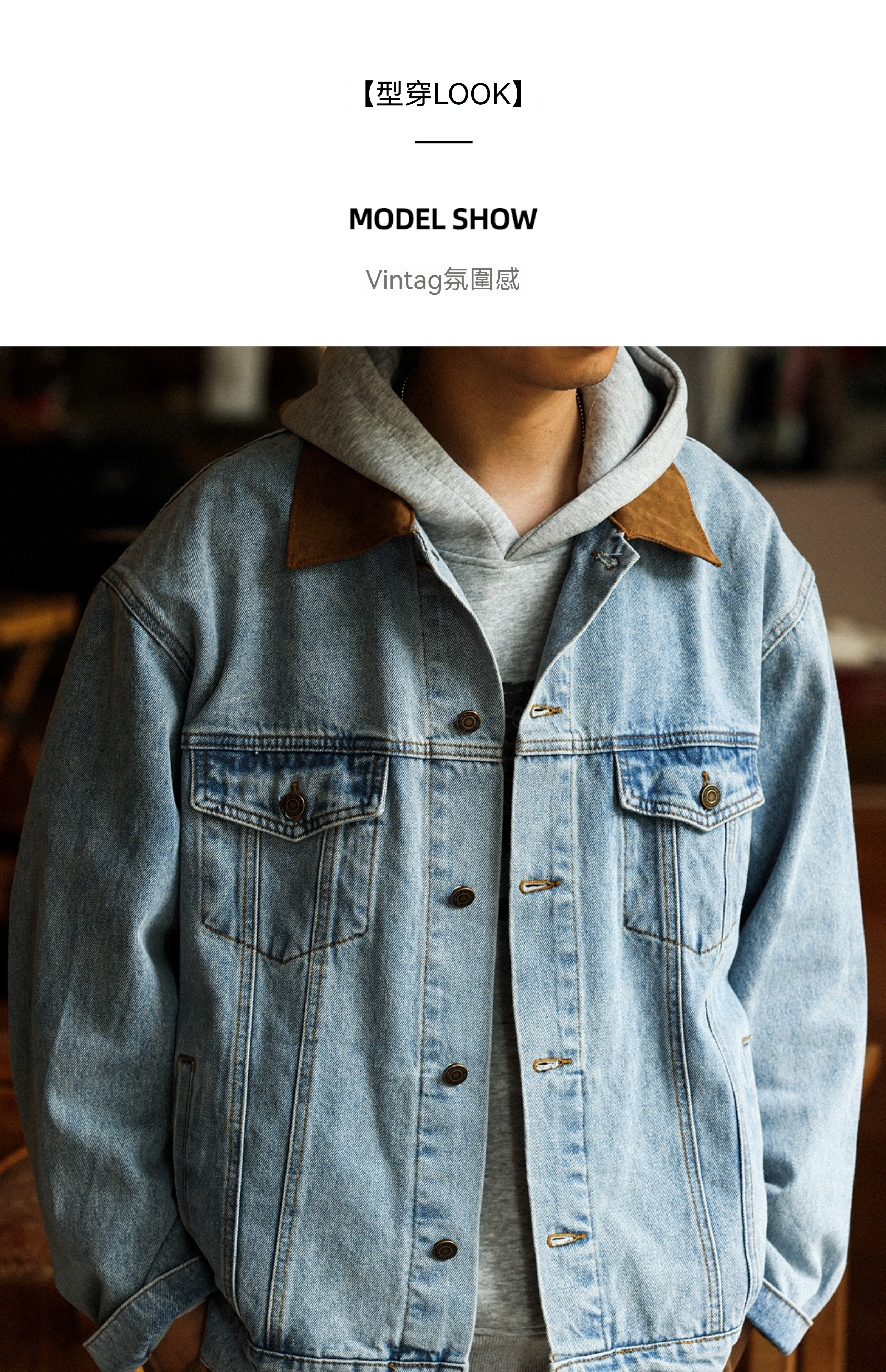 バーンスタイルのスエードラペルデニムジャケットメンズアメリカンレトロヴィンテージコート
