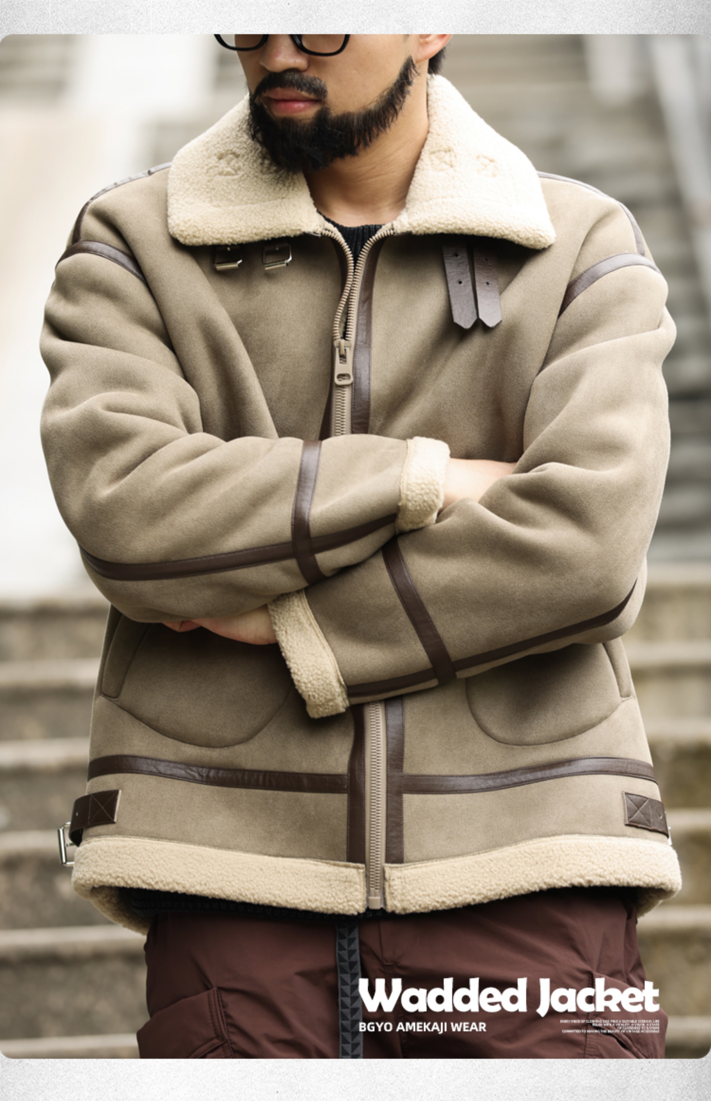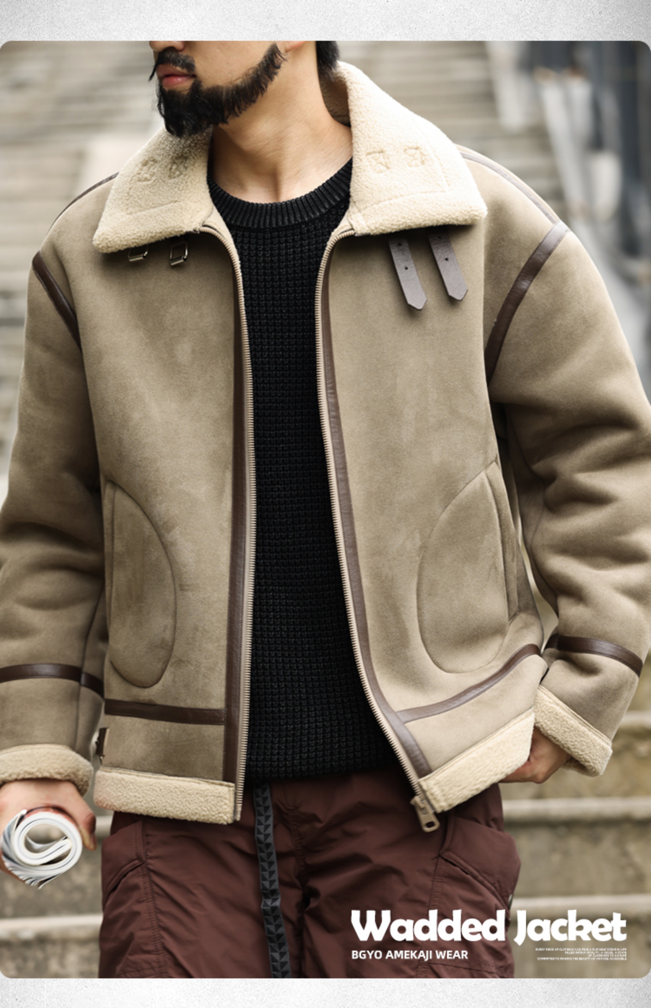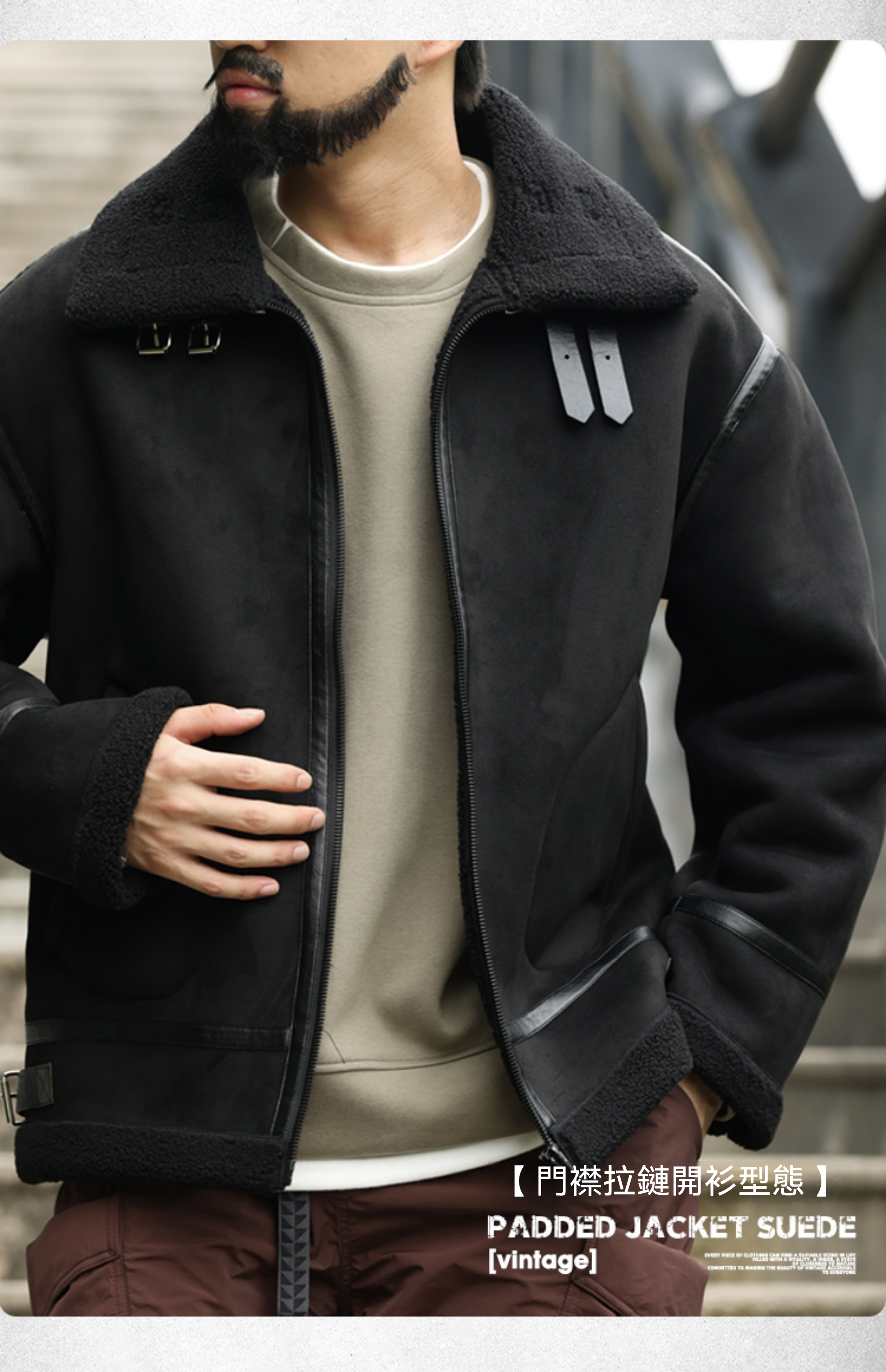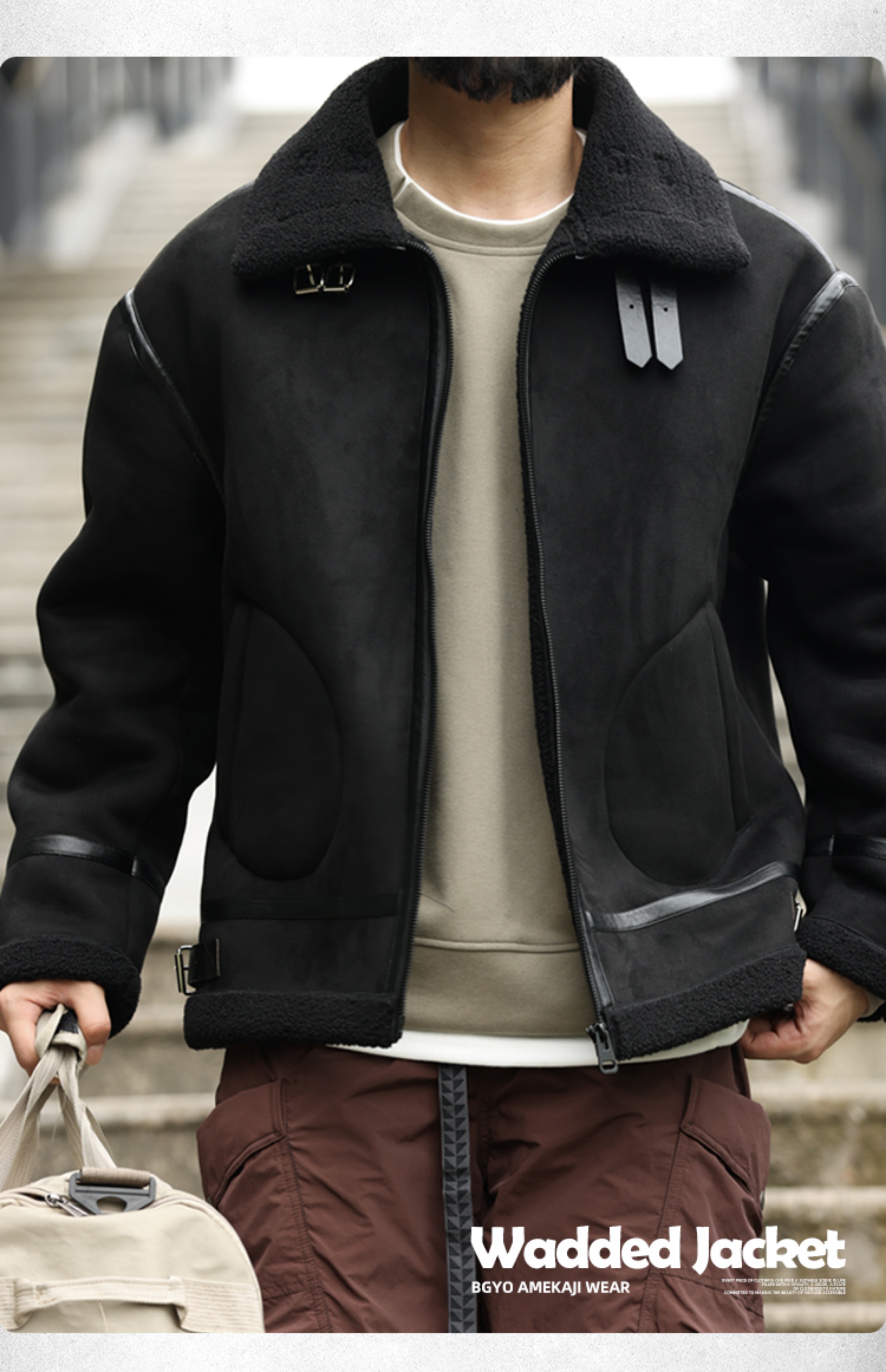アメリカンレトロパッチワークスエードコットンコートメンズ厚手暖かいラムスキンモーターサイクルジャケット