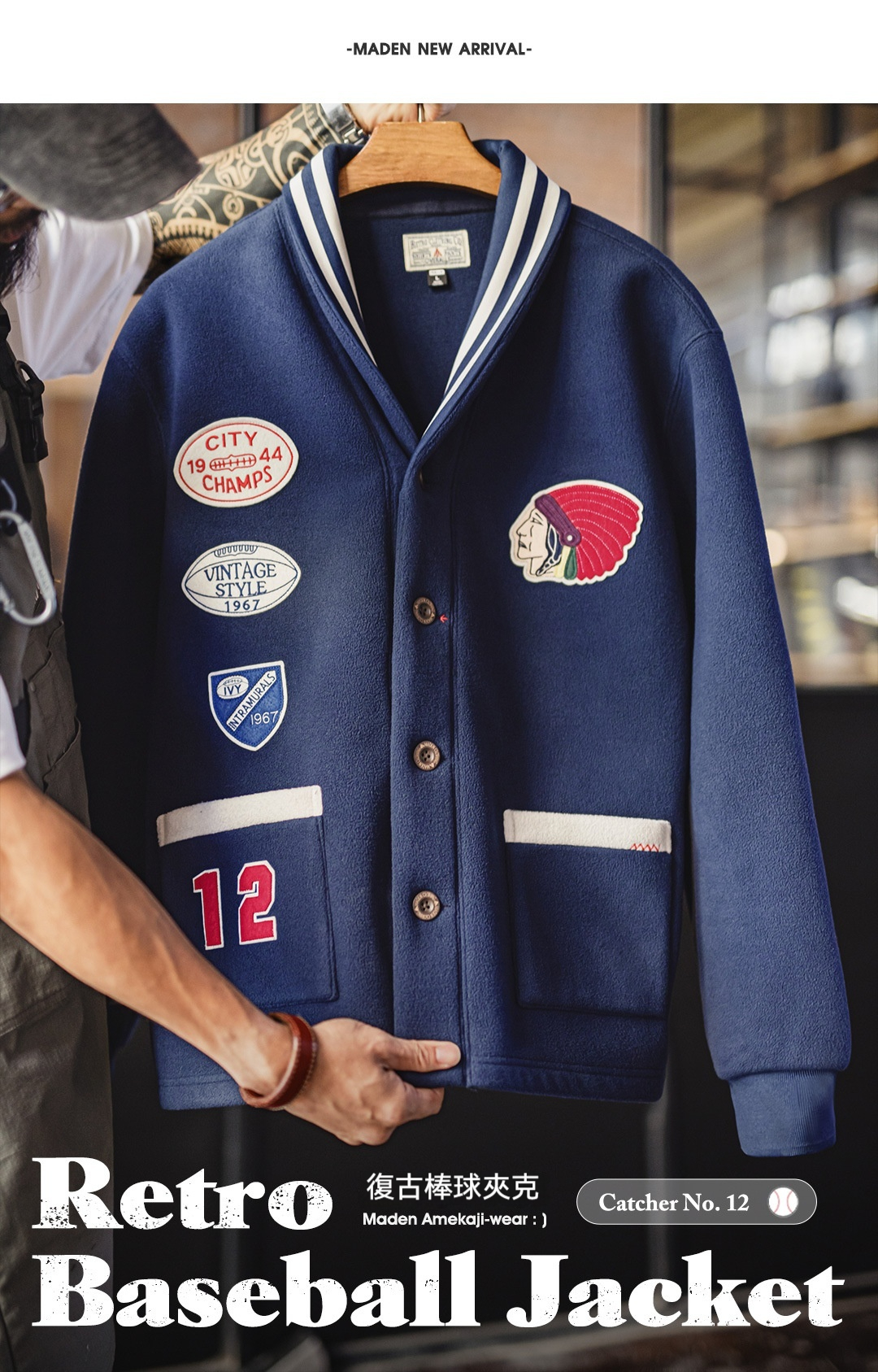 アメリカンレトロなショールカラーカーディガンフリースジャケット、男性用の暖かいショート丈ベースボールジャケット、秋冬用。