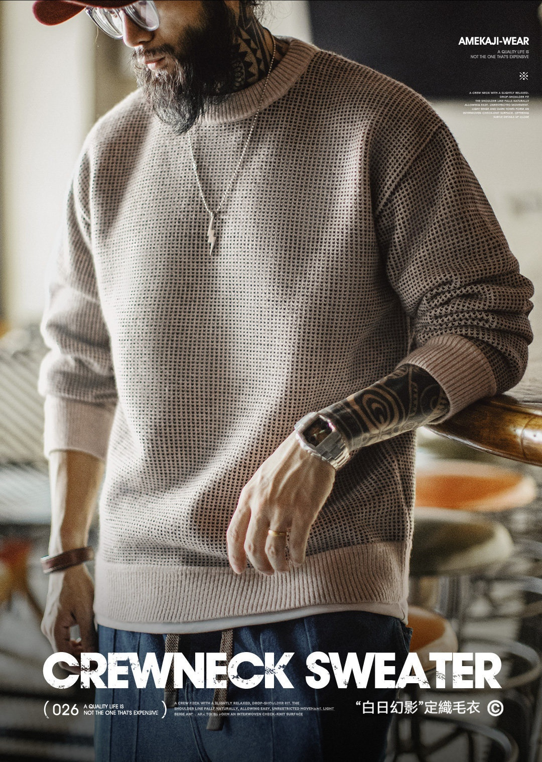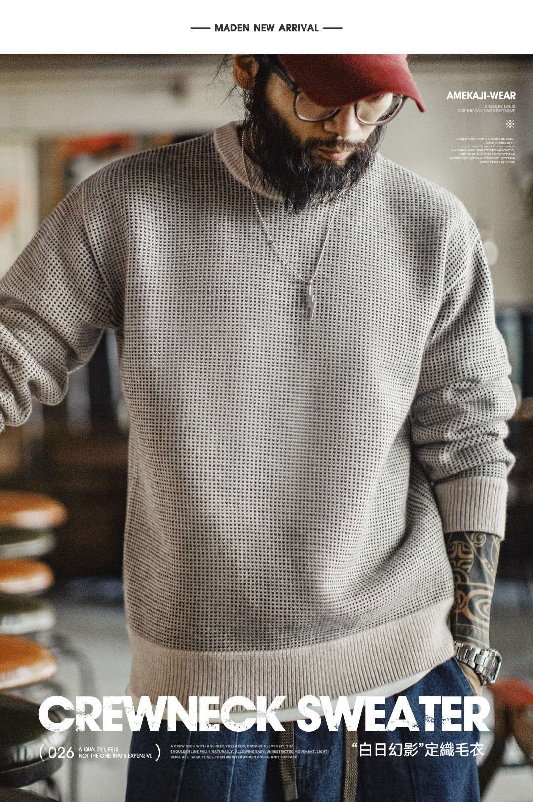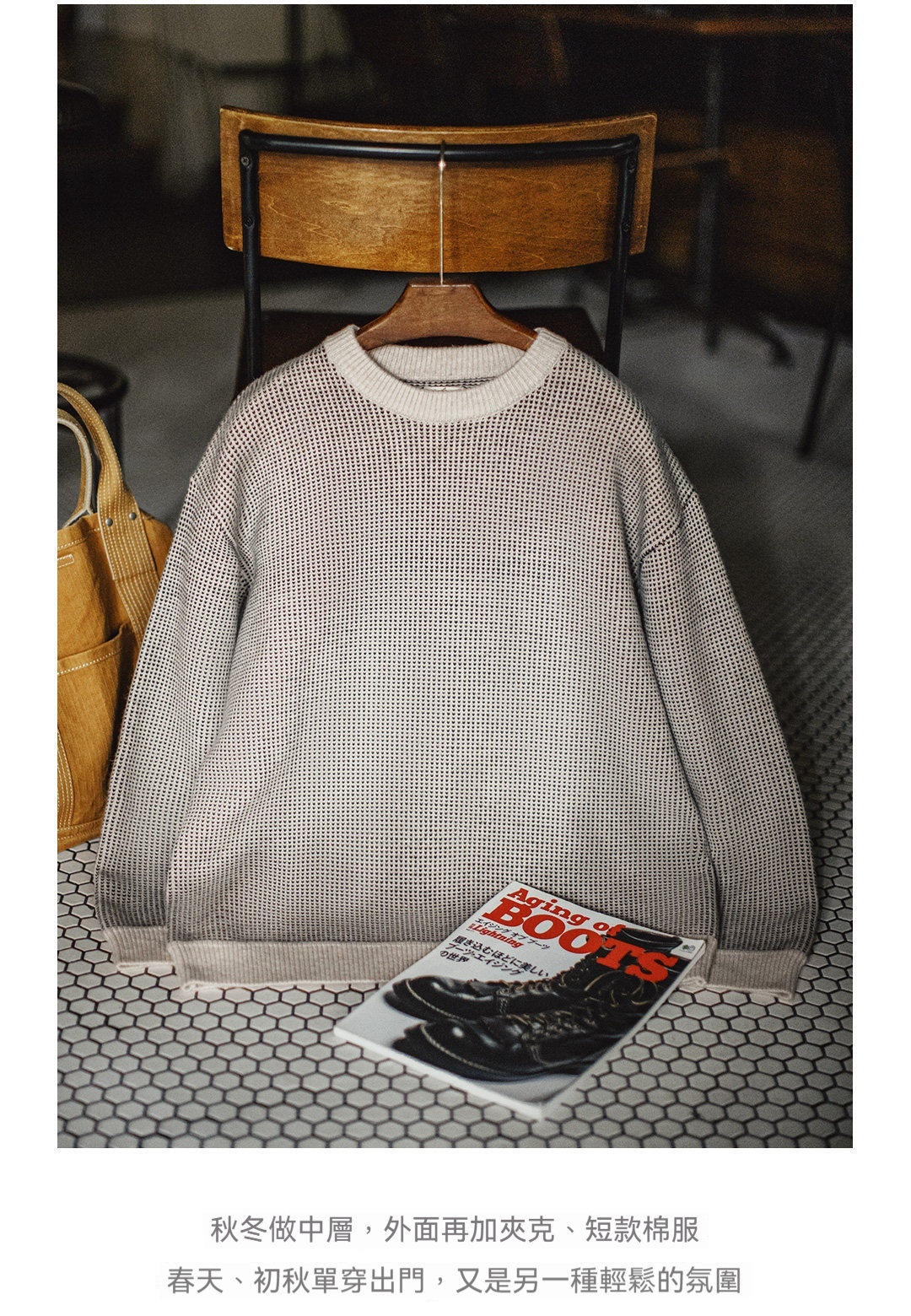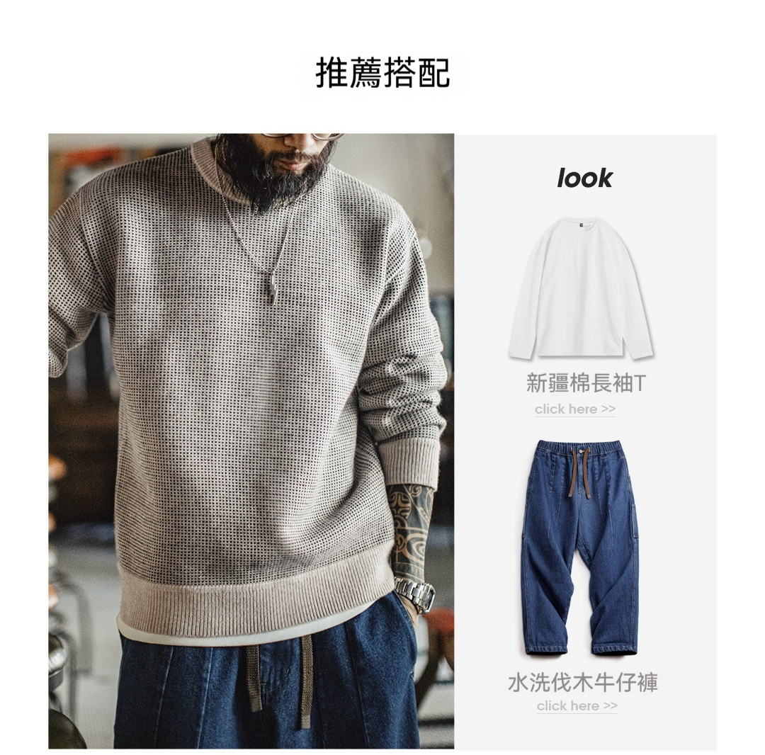 アメリカのオールドマネースタイルのグレークルーネックセータープルオーバーゆったりドレープニットウェア暖かいアウターウェアメンズ春