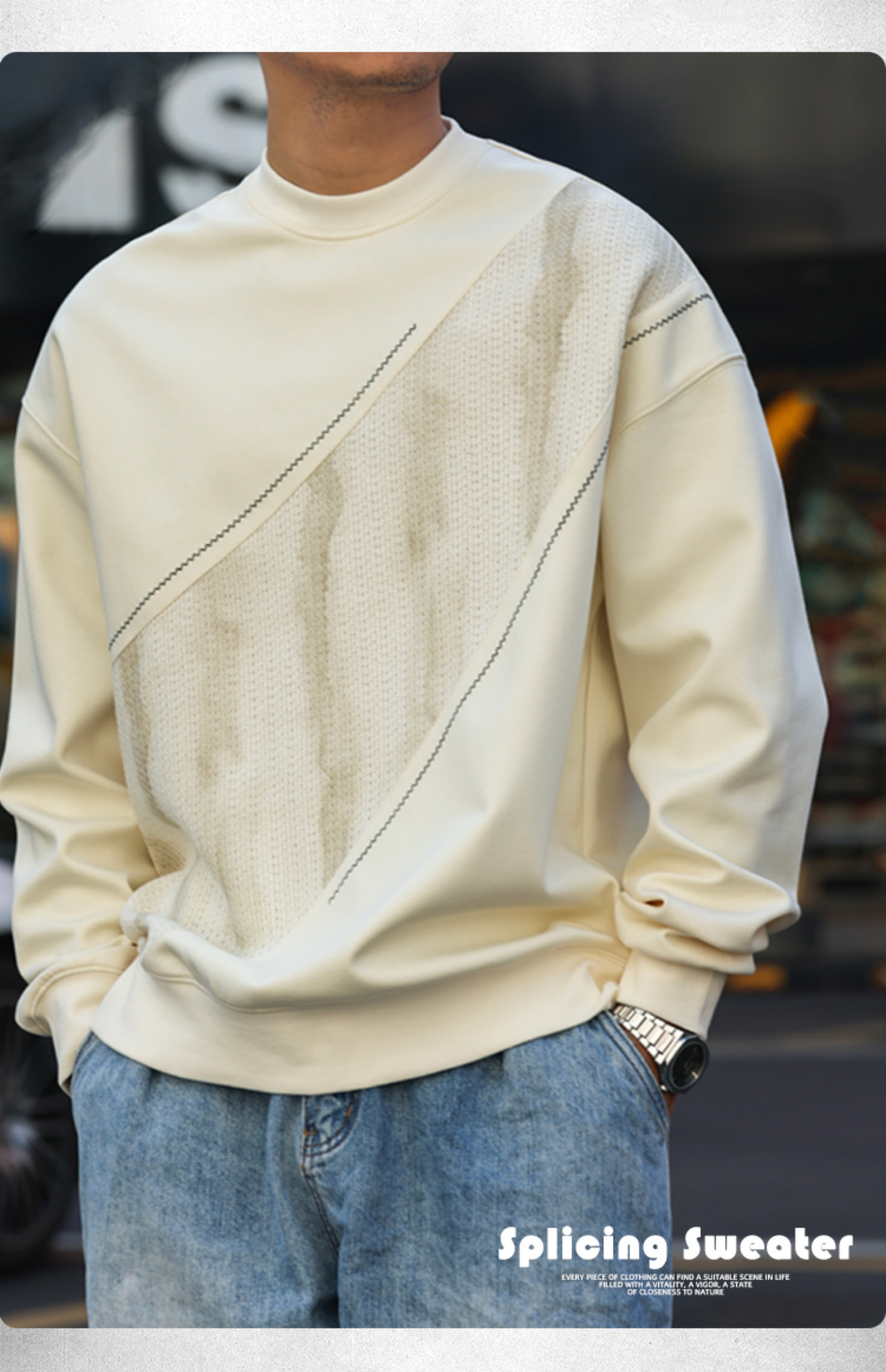 アメリカンライトラグジュアリーカジュアルステッチラウンドネックスウェットシャツメンズ340gコントラストカラーブライトステッチプルオーバーセーター