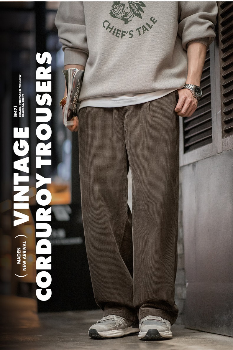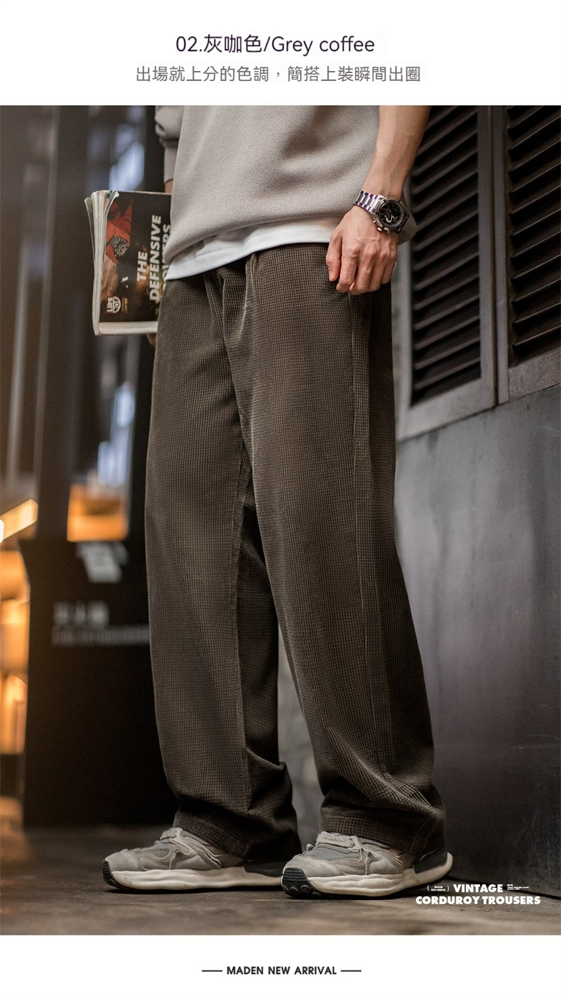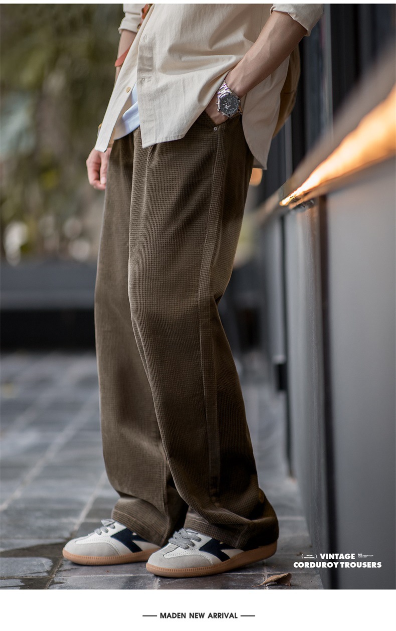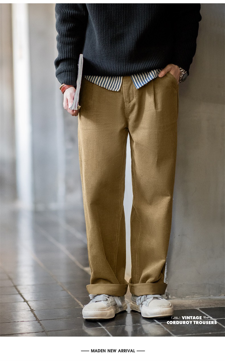 アメリカンレトロコーンカーネルコーデュロイカジュアルパンツテクスチャルーズコットンストレートパンツメンズ秋