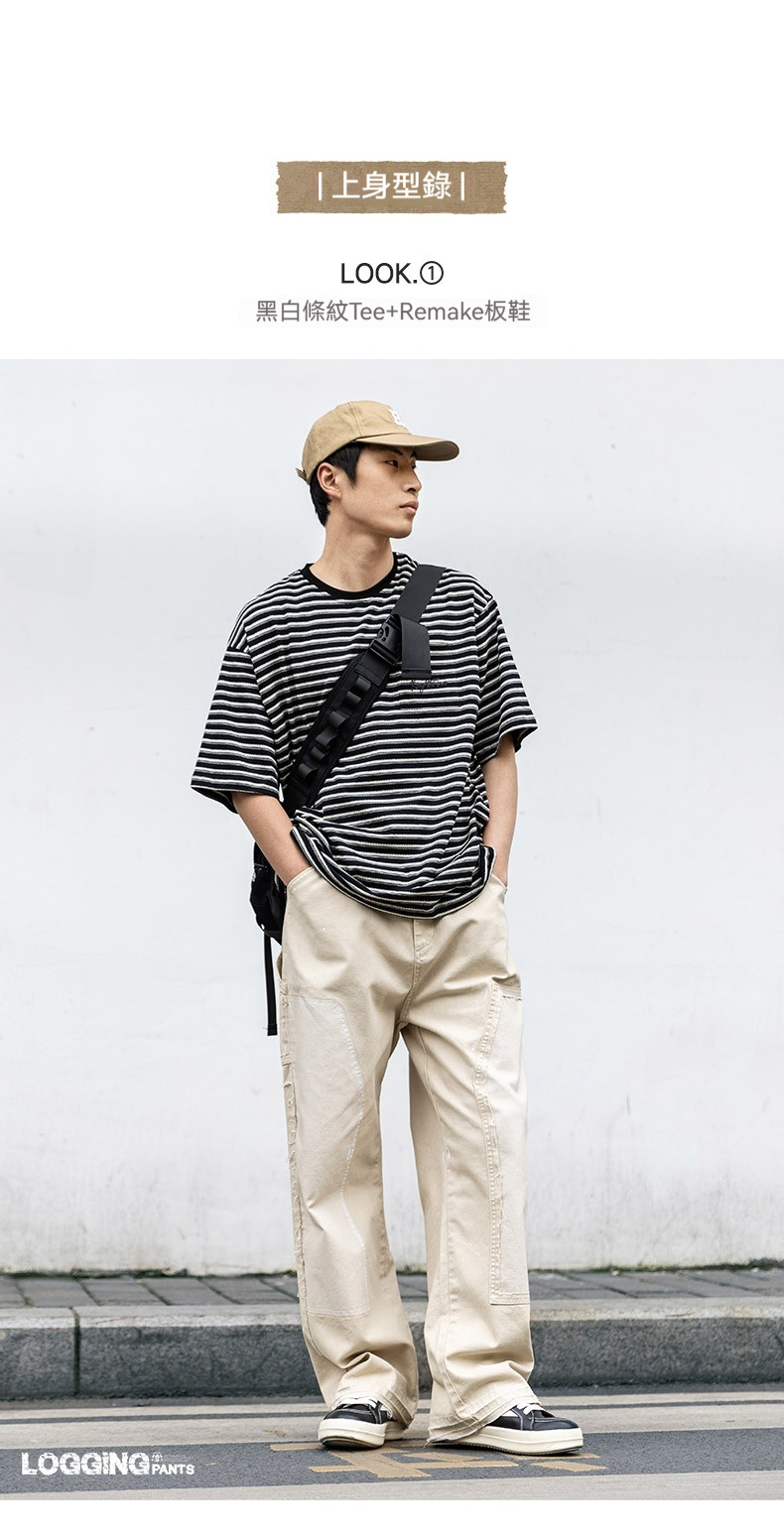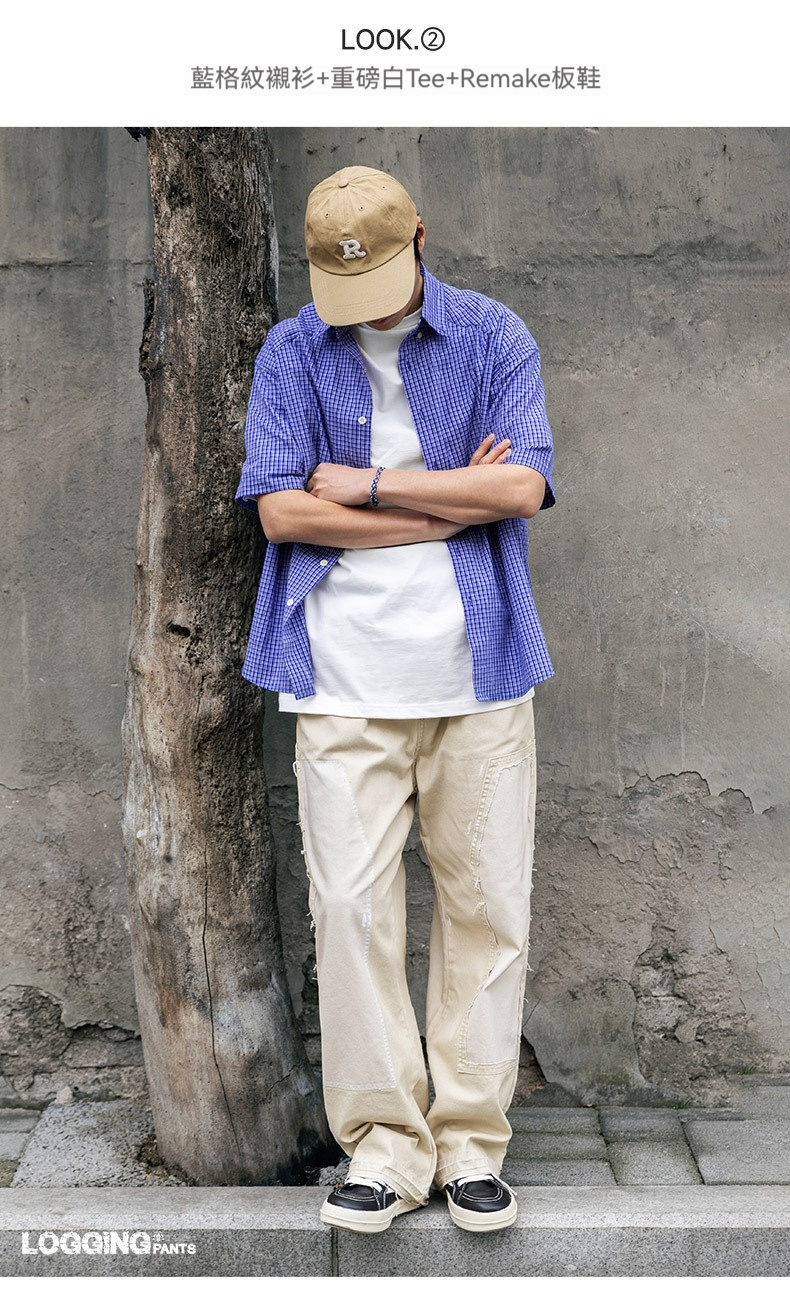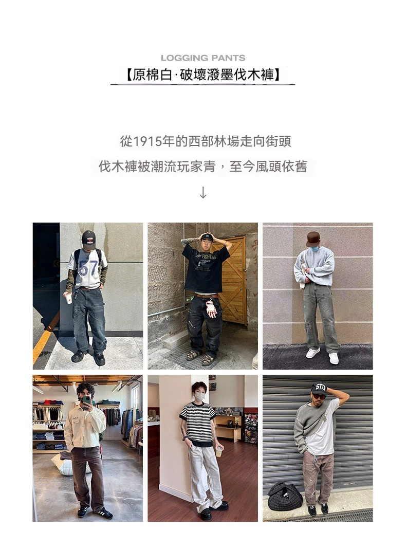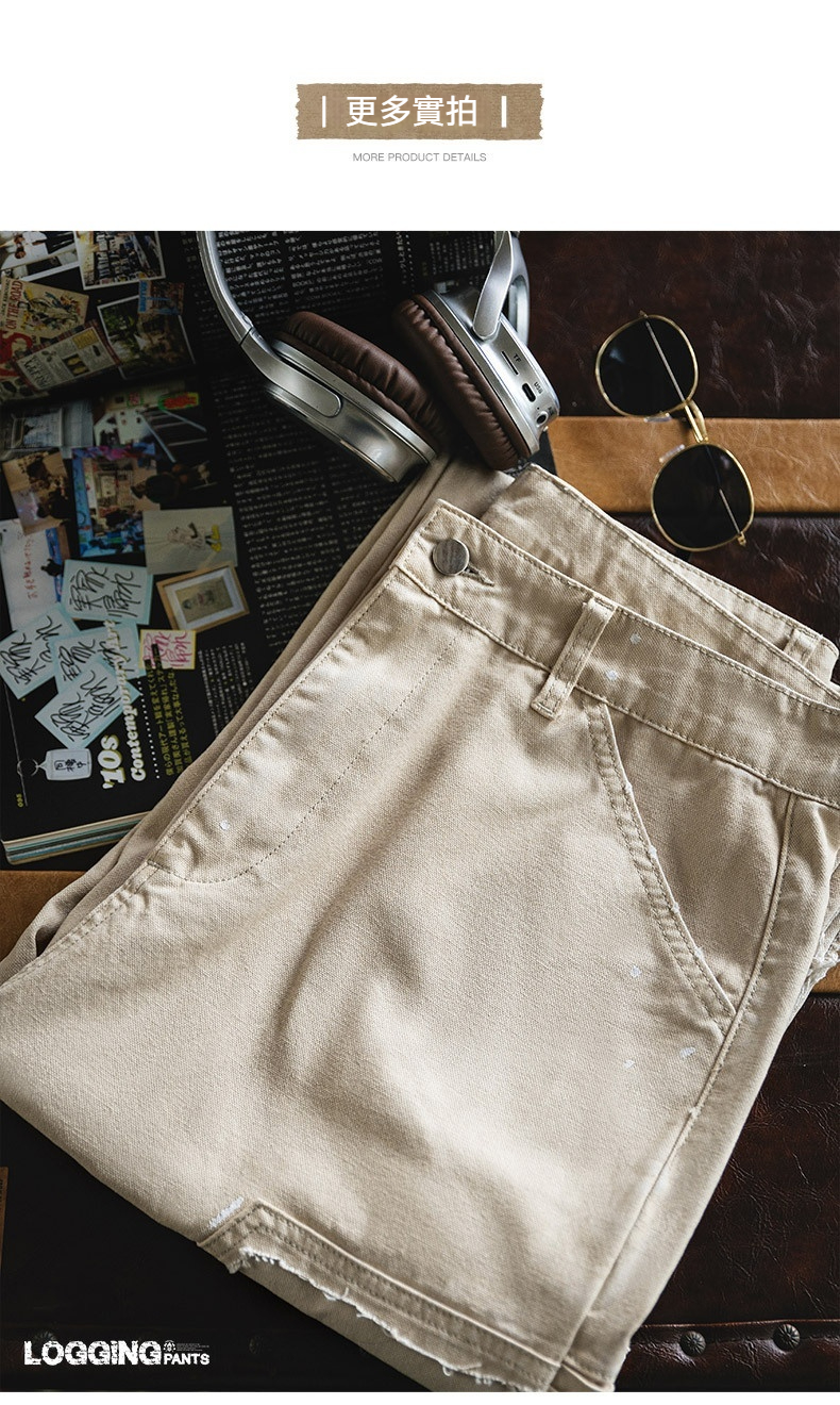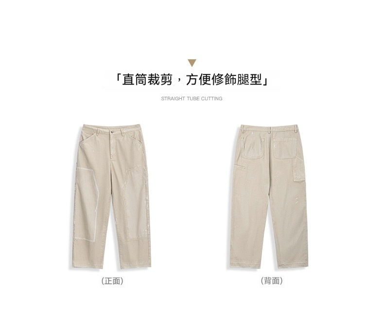 MRA 破壊インク ルーズベージュ ジーンズ レトロ カジュアル ストレート マルチポケット ランバージャックパンツ メンズ 夏