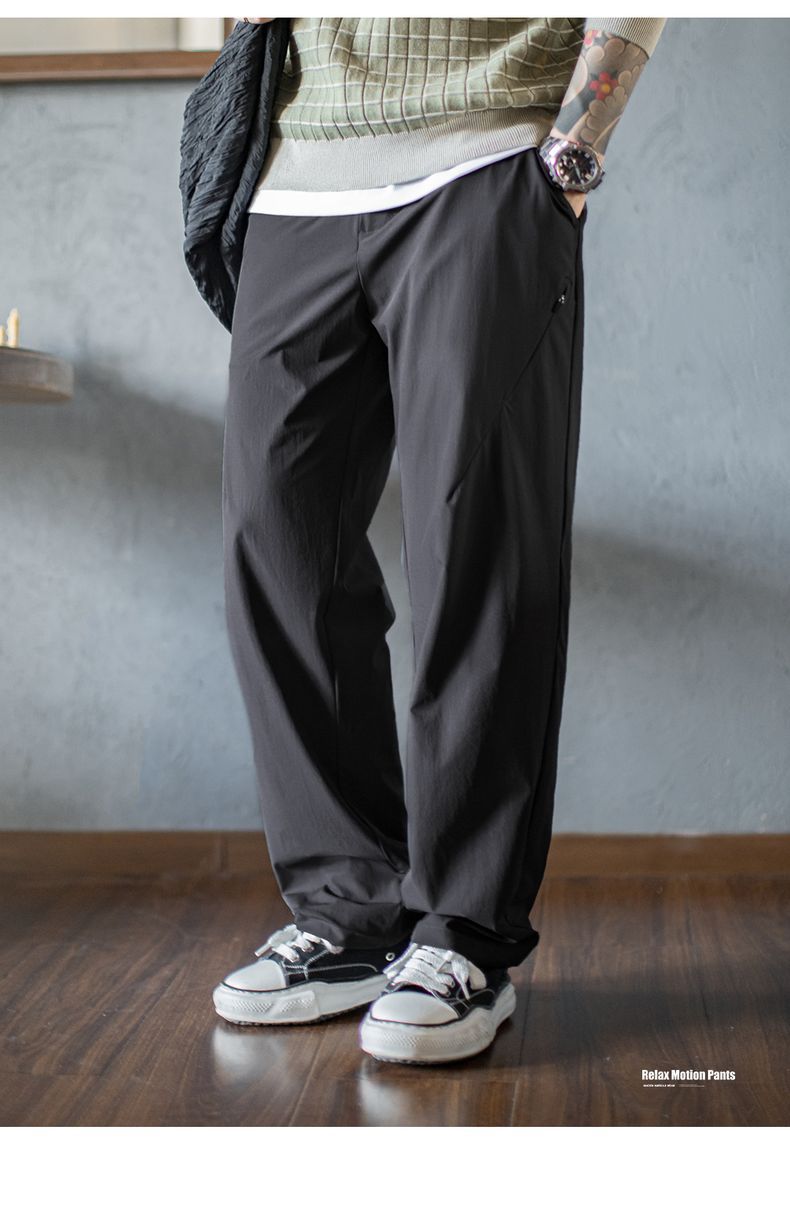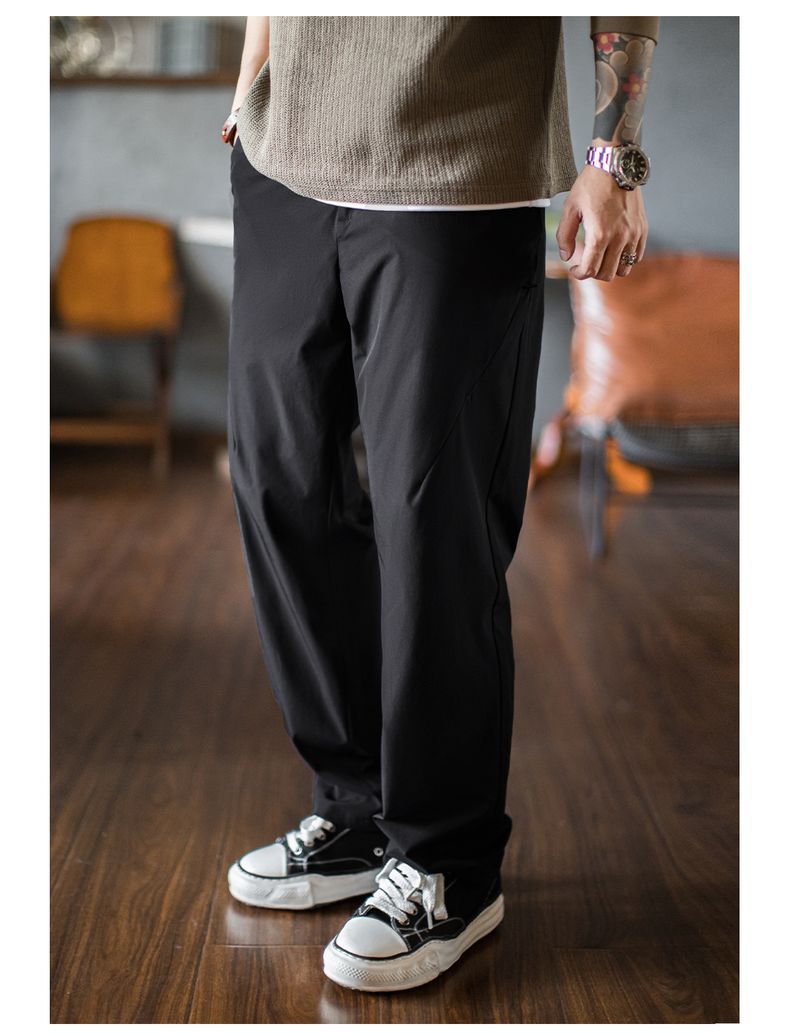 休閒西褲垂感cleanfit老錢風黑色褶皺西褲長褲子薄款男夏