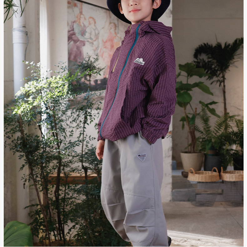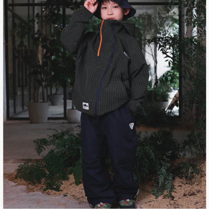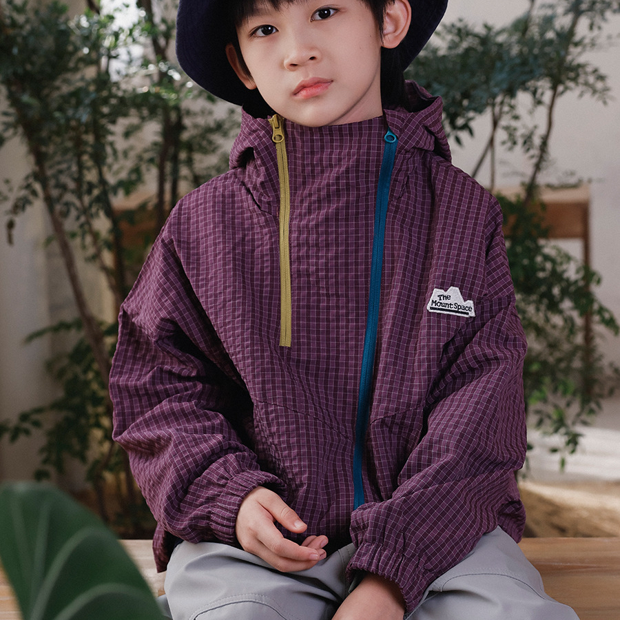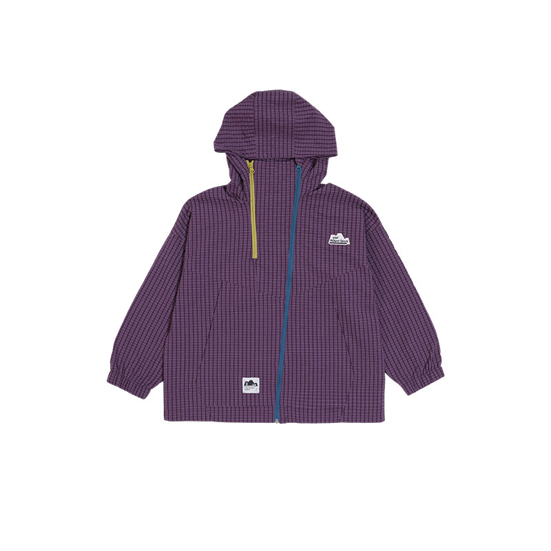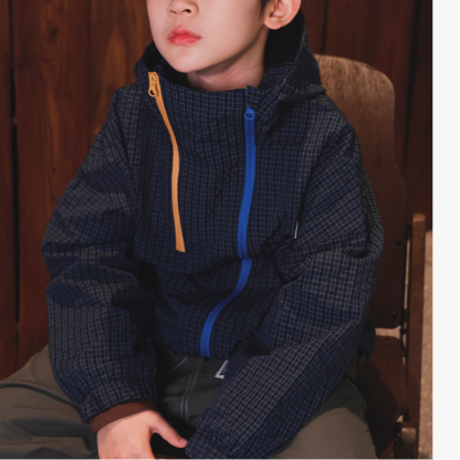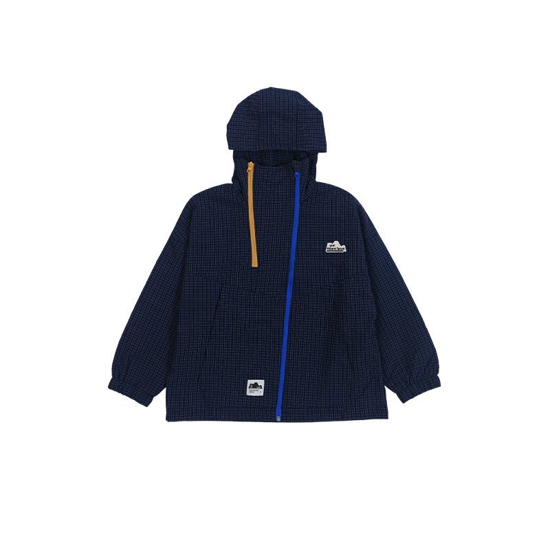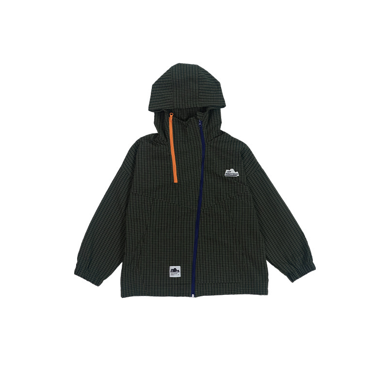 兒童格紋衝鋒衣2025秋季新款男童撞色雙拉鍊外套立領防風兒童風衣