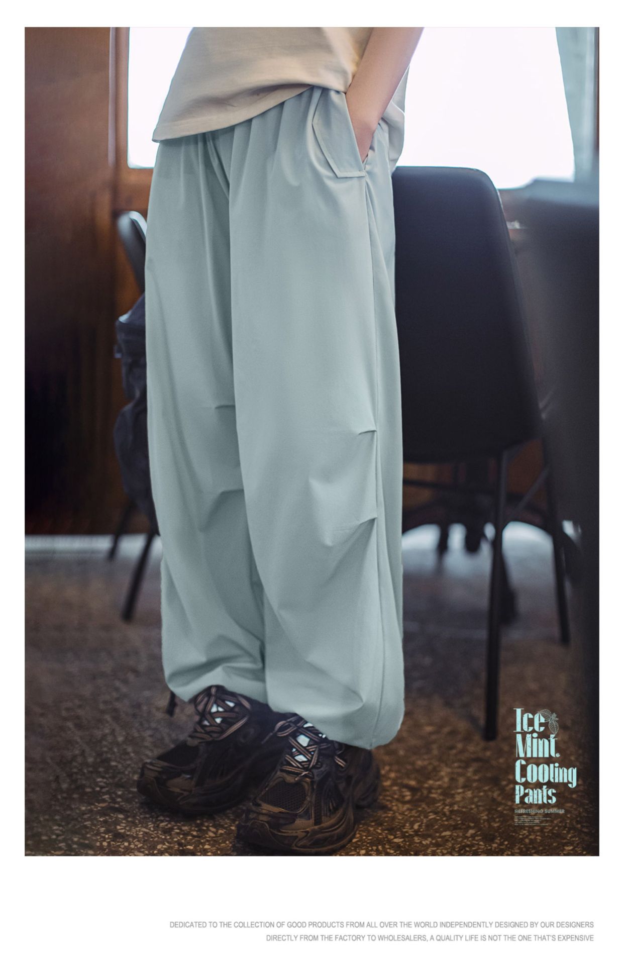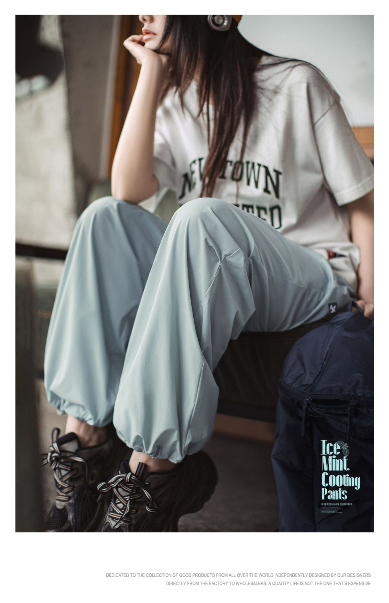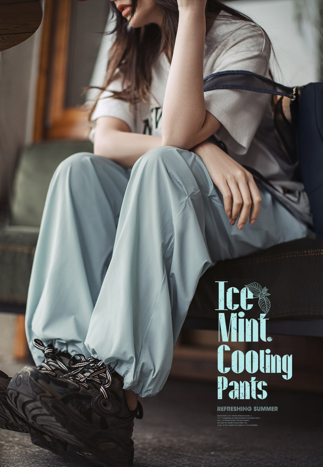 夏日冰薄荷凉凉褲休閒四面彈寬鬆傘兵褲慵懶風運動山本褲女