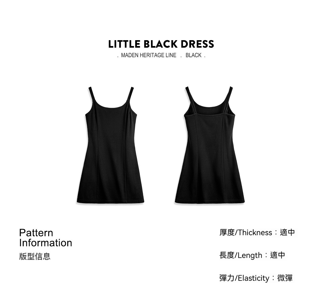 夏日純欲赫本風吊帶包臀小黑裙修身露肩背無袖背心連衣裙女