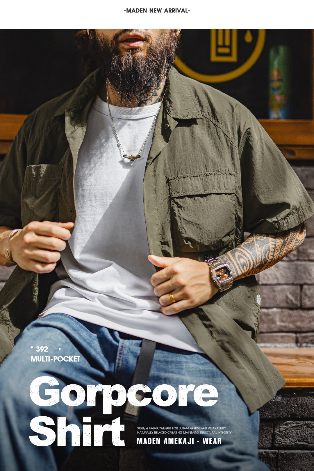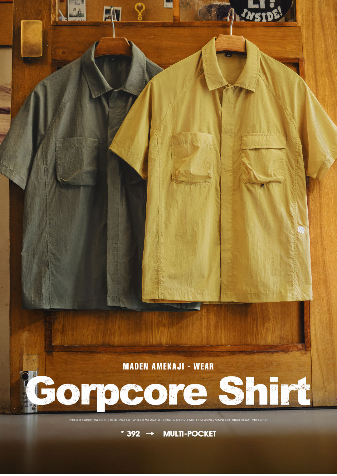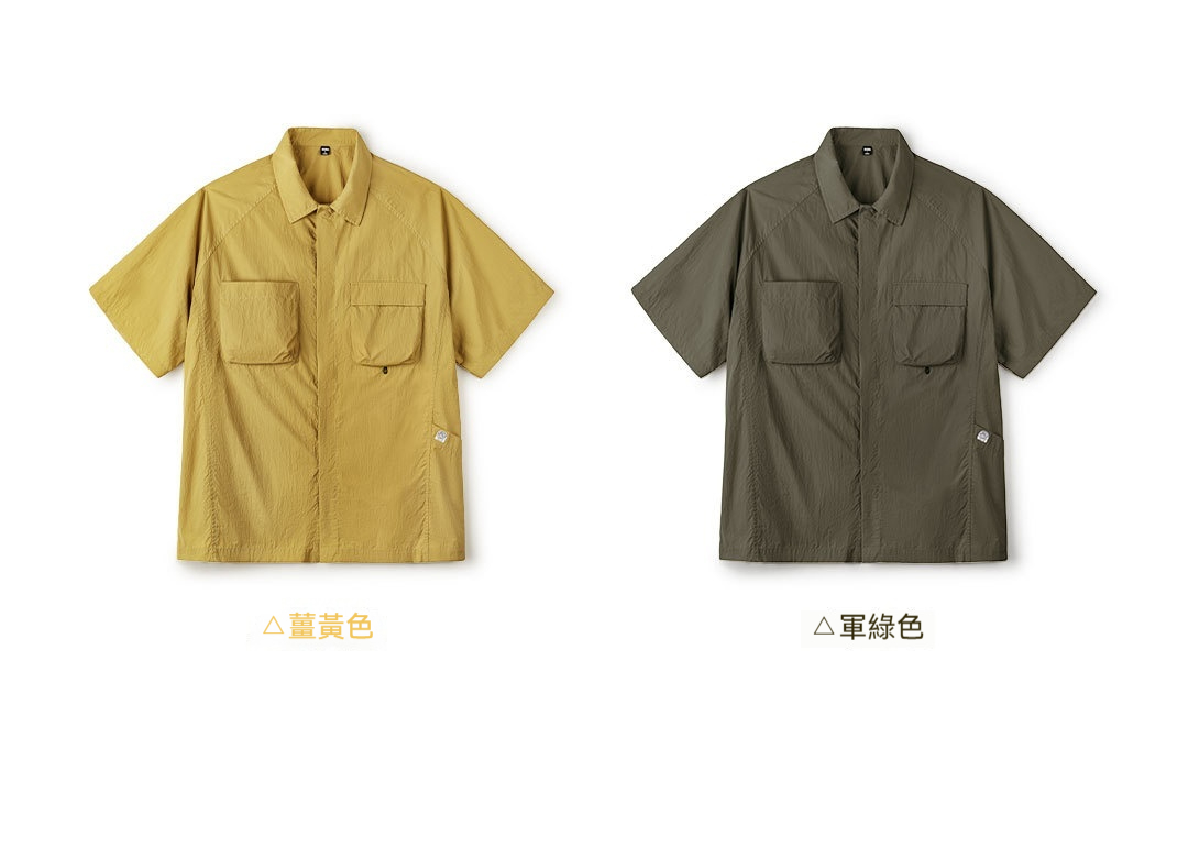 山系戶外短袖襯衫速幹黃色肌理感薄款日系口袋襯衣男款夏