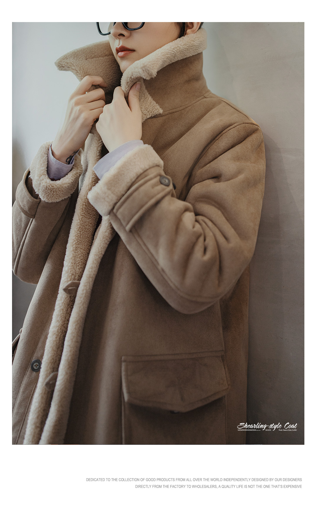 復古巴恩風皮毛一體立翻領中長款加絨夾棉服襖大衣外套秋冬女