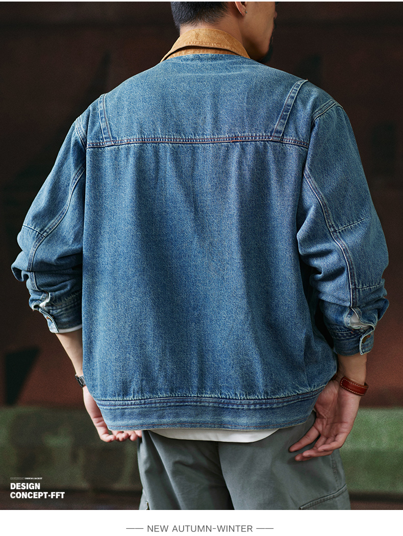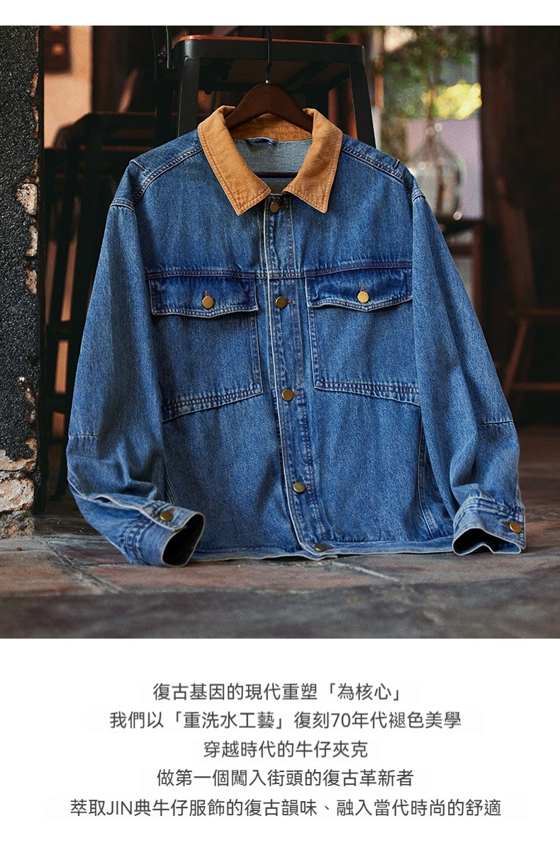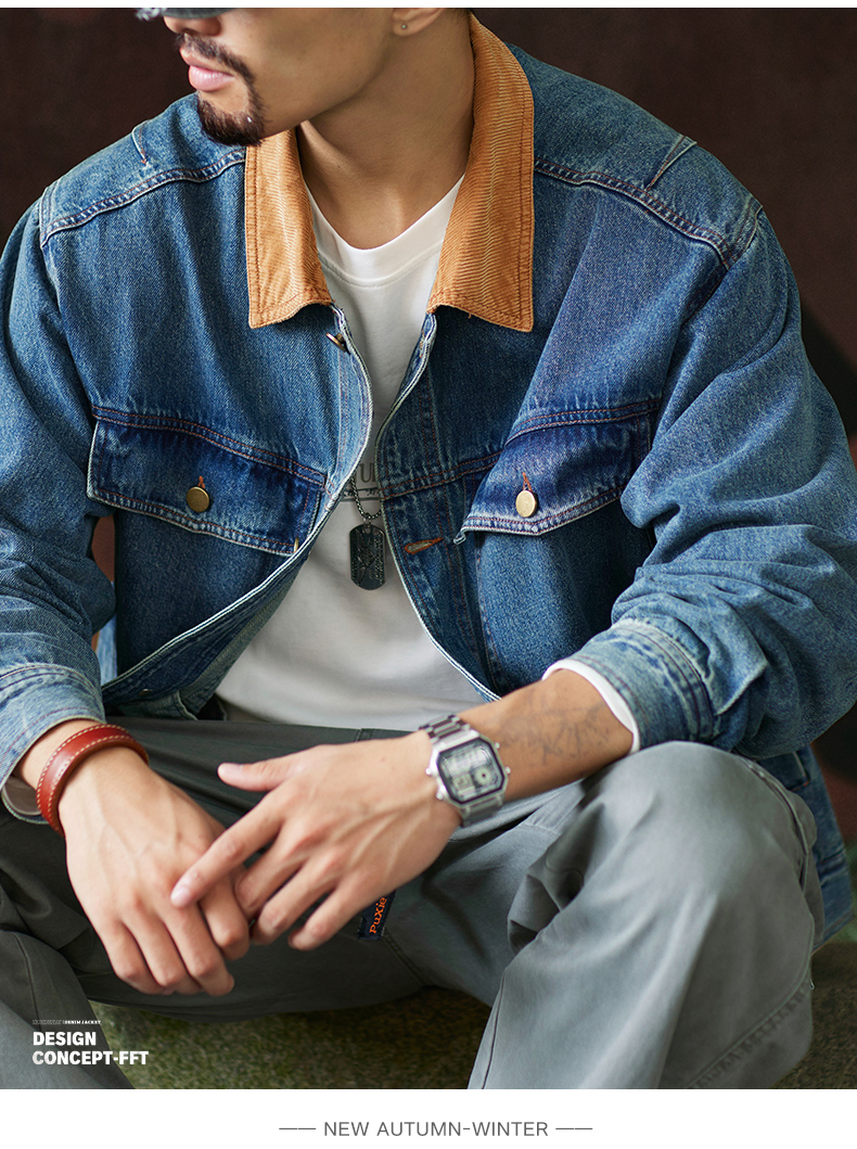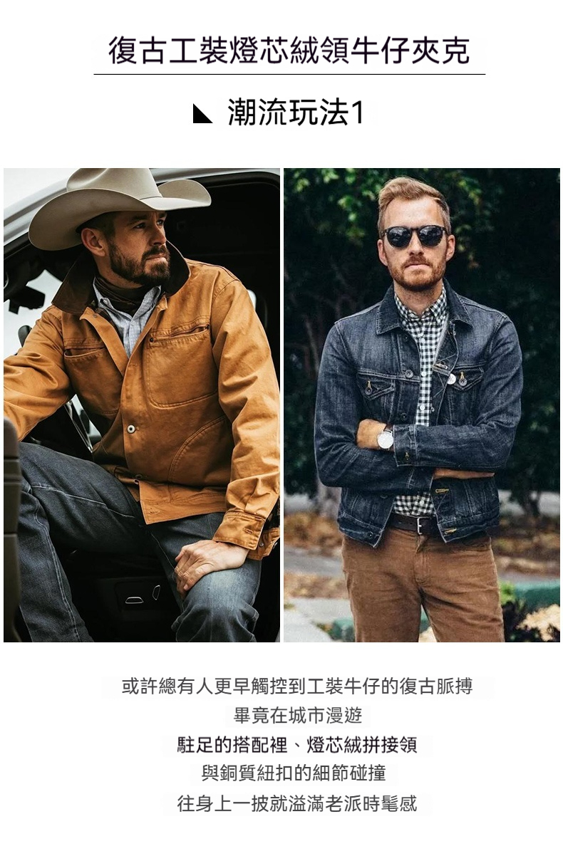 復古撞色燈芯絨翻領牛仔夾克男2025秋季新款寬鬆工裝休閒外套