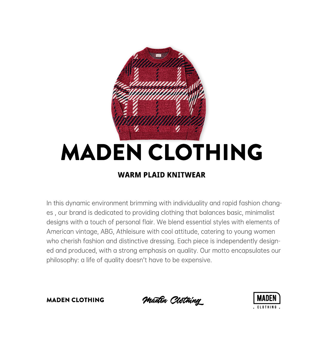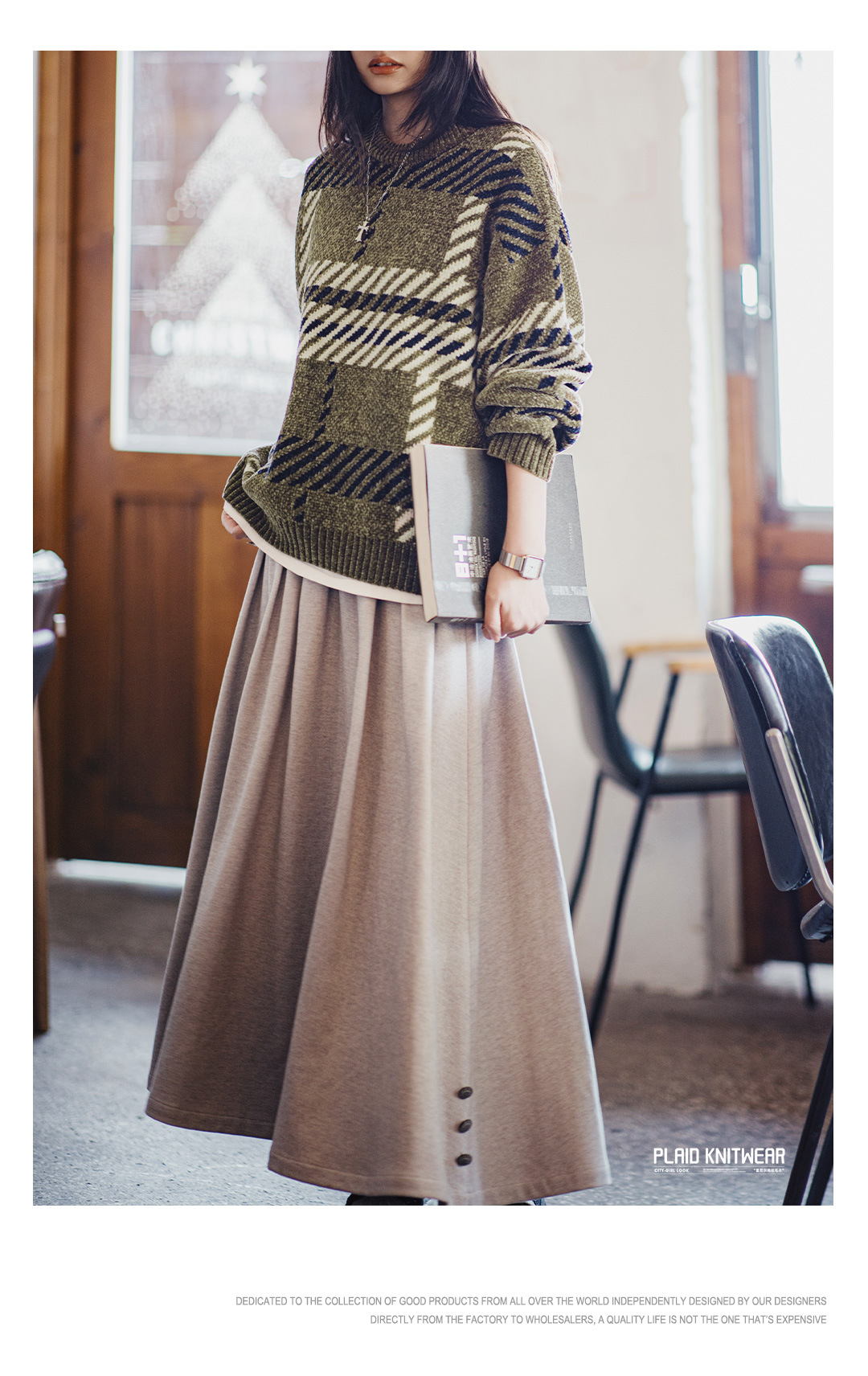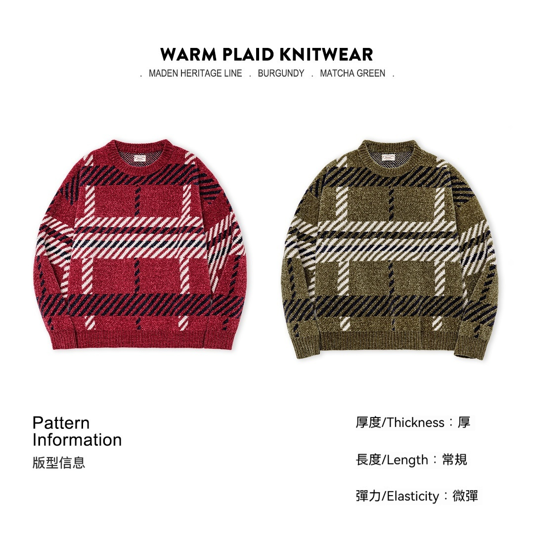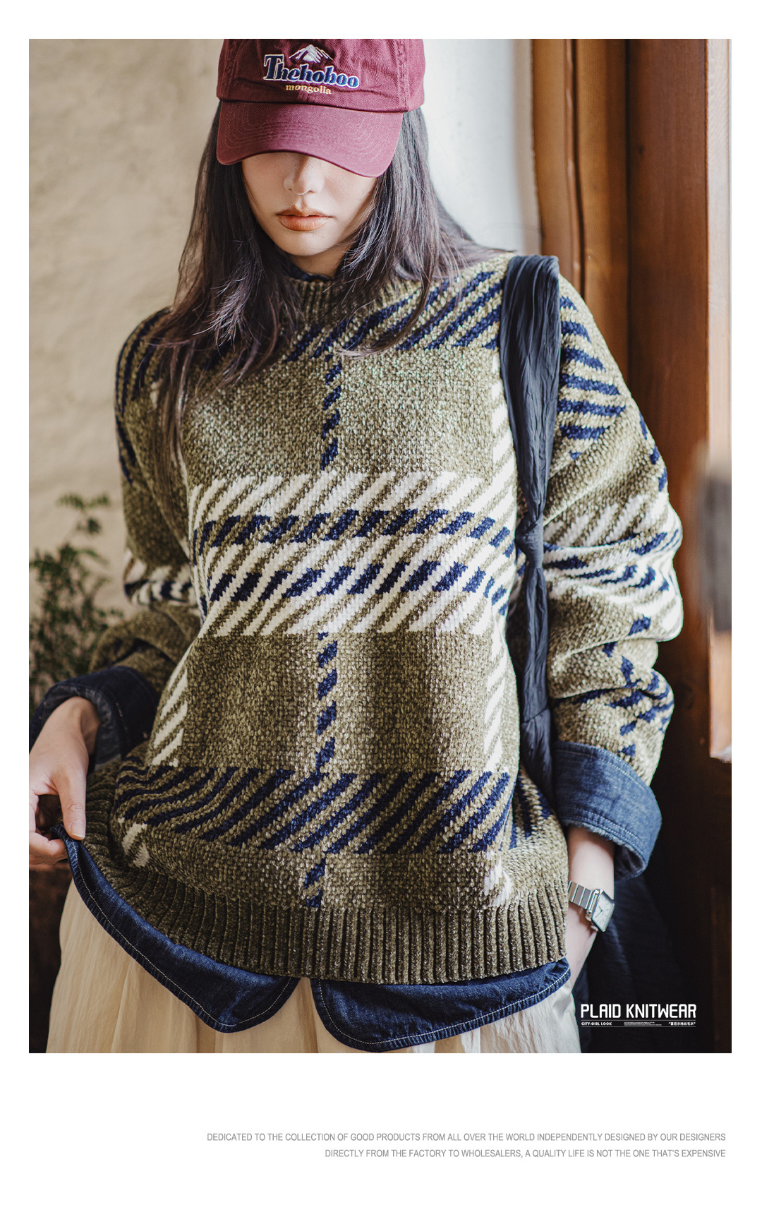 復古雪尼爾格紋寬鬆聖誕套頭保暖加厚實毛衣軟糯針織衫女秋冬