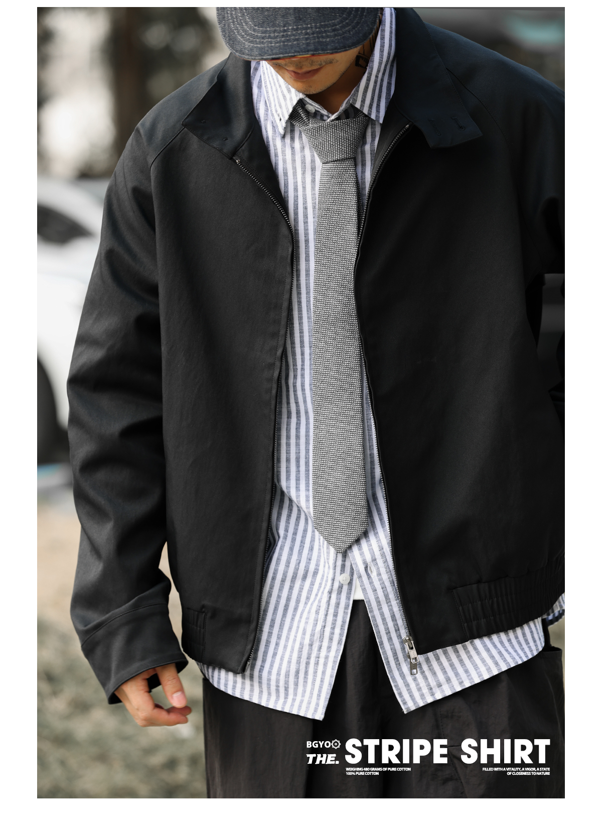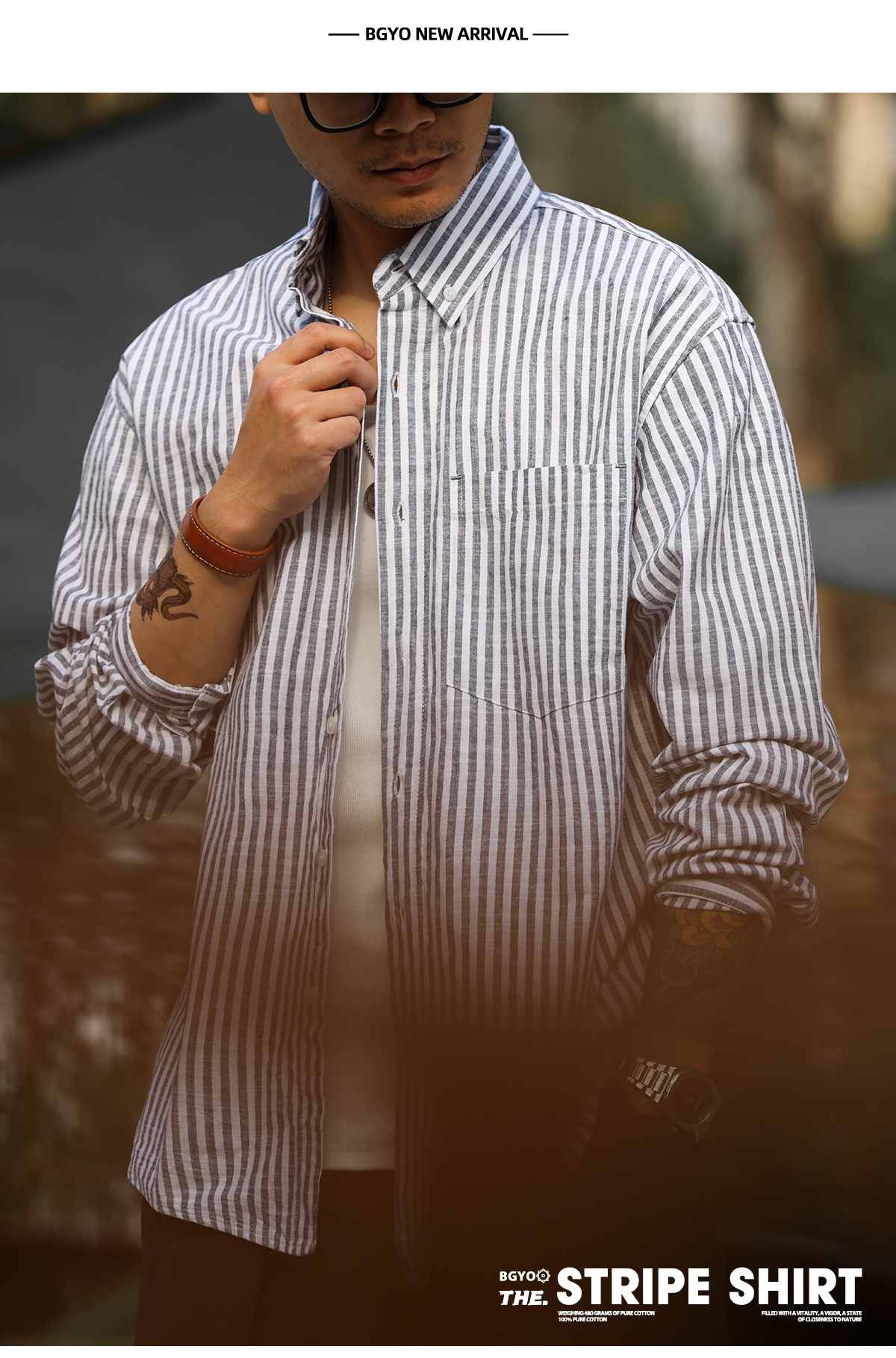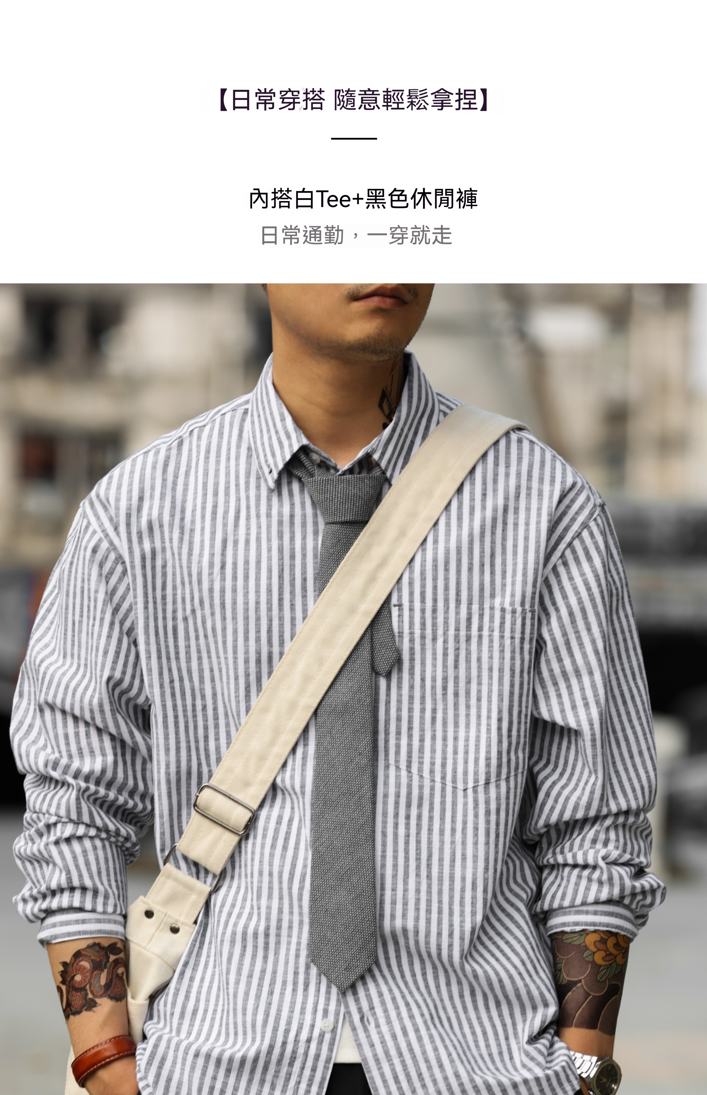日系廊型長袖豎條紋襯衫160g輕量感疊穿慵懶風復古襯衣
