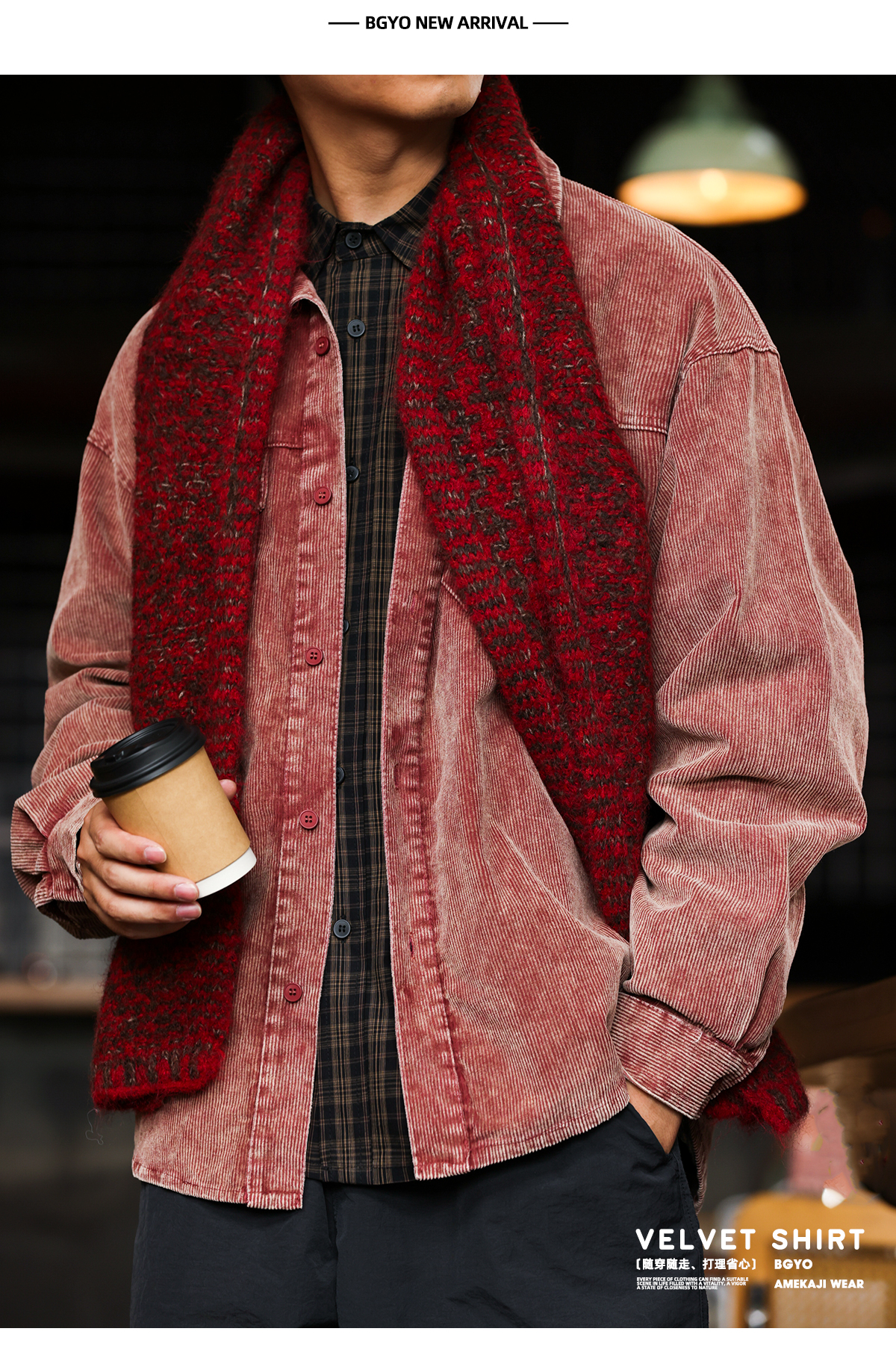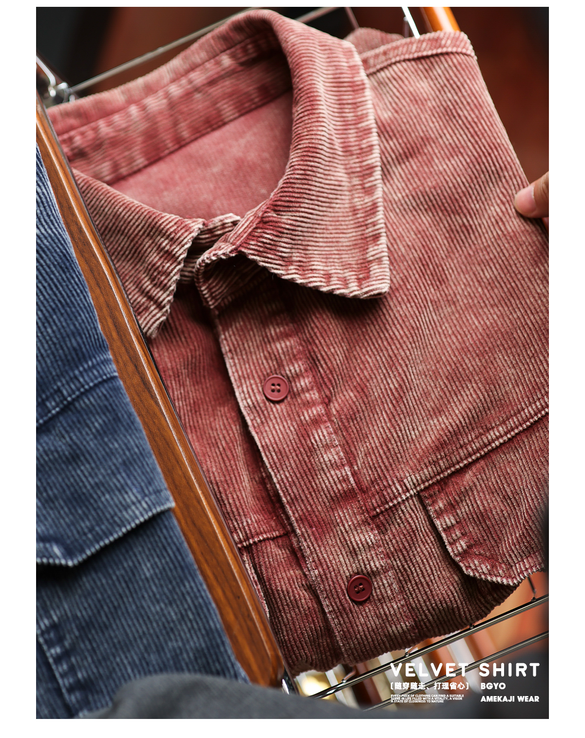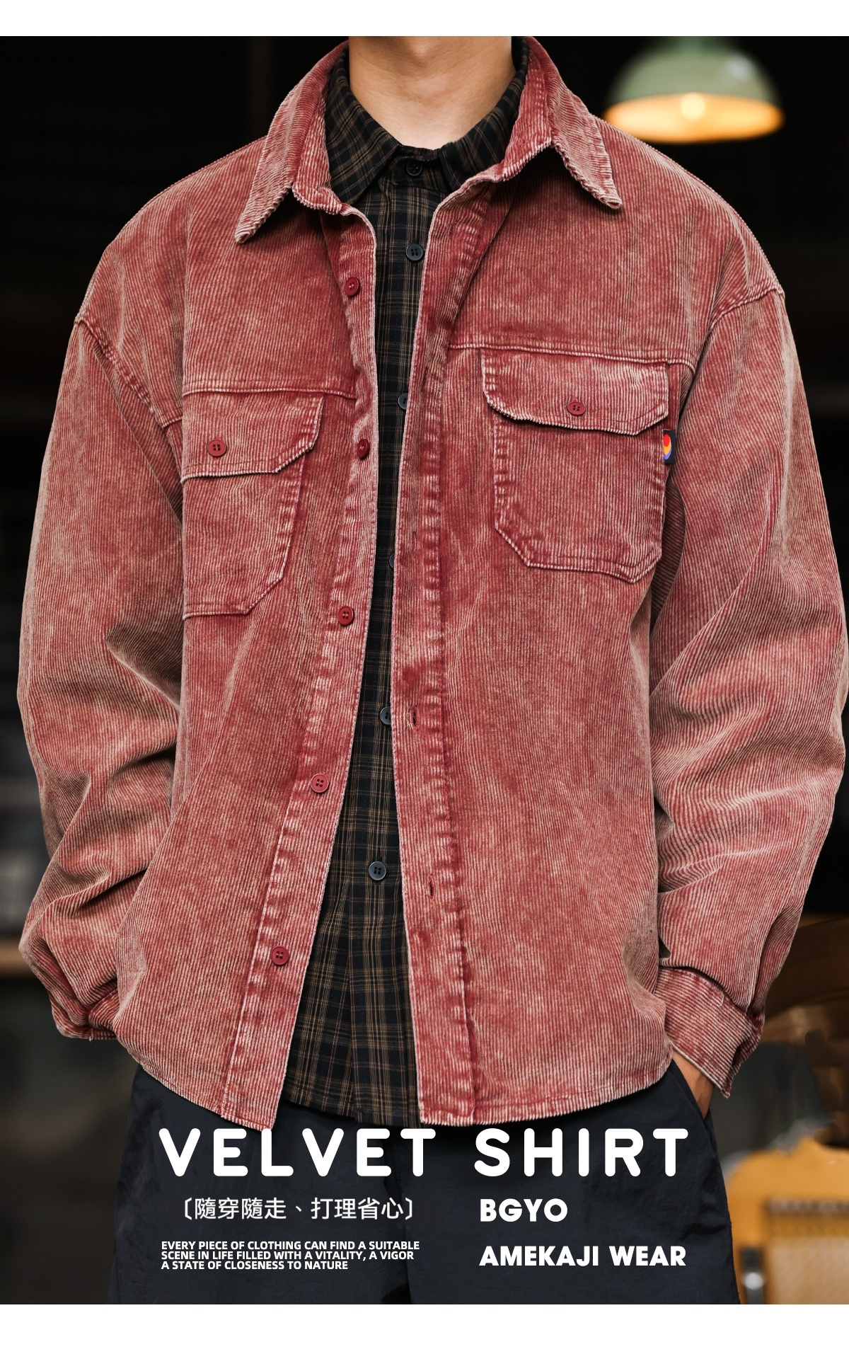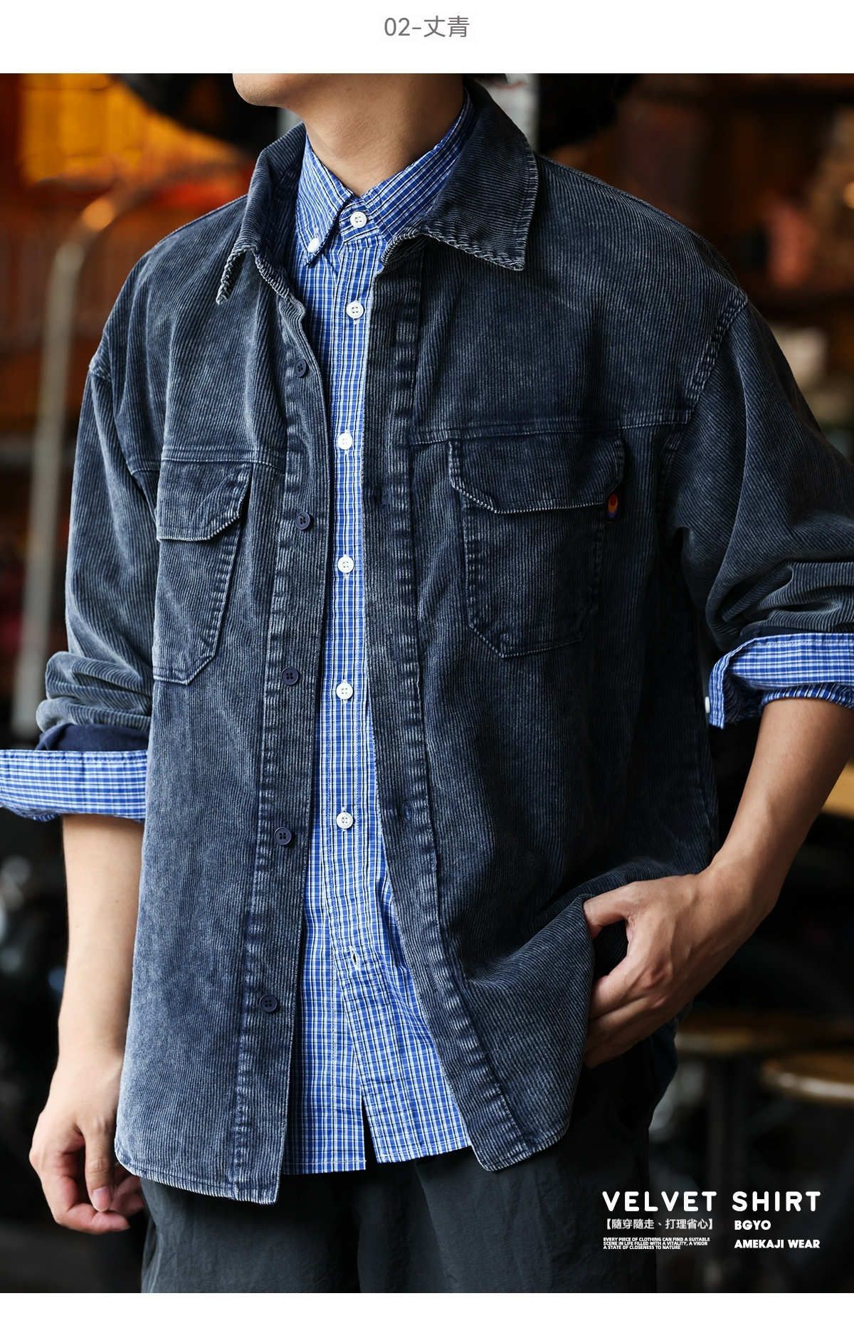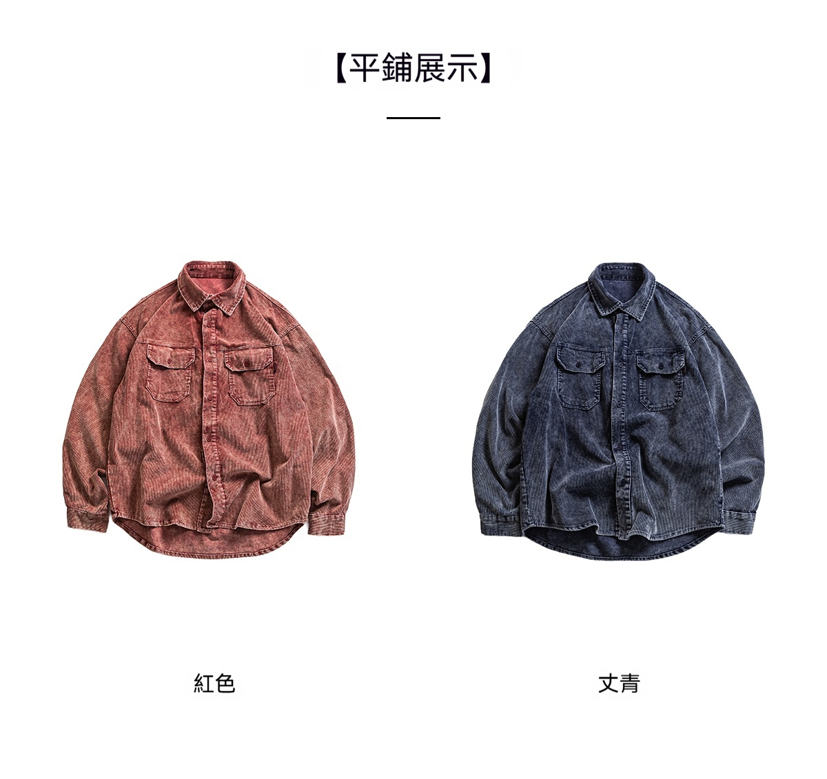 日系復古燈芯絨工裝襯衣外套男疊穿重磅水洗條絨襯衫秋