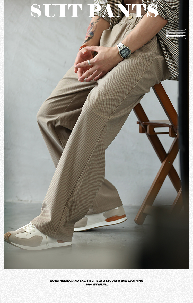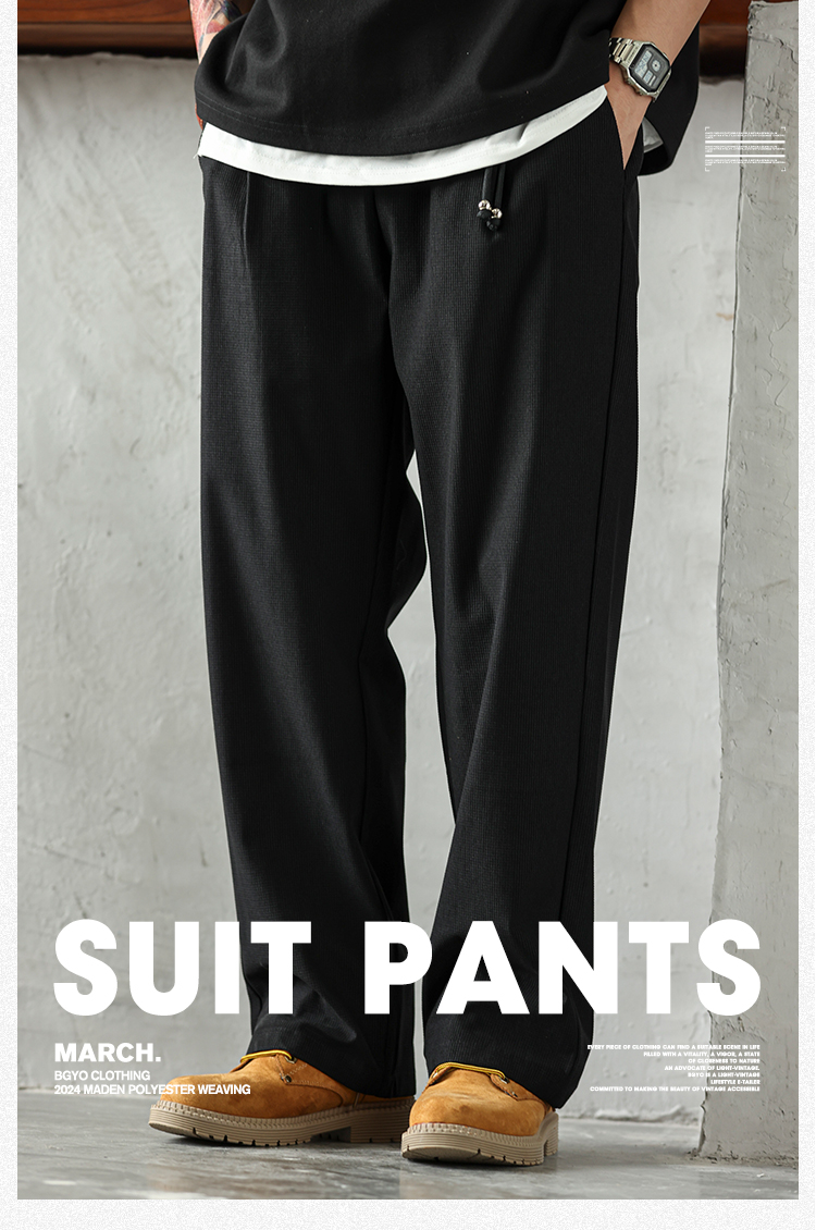 日系復古重磅燈芯絨休閒褲男打褶顆粒肌理感直筒長褲子