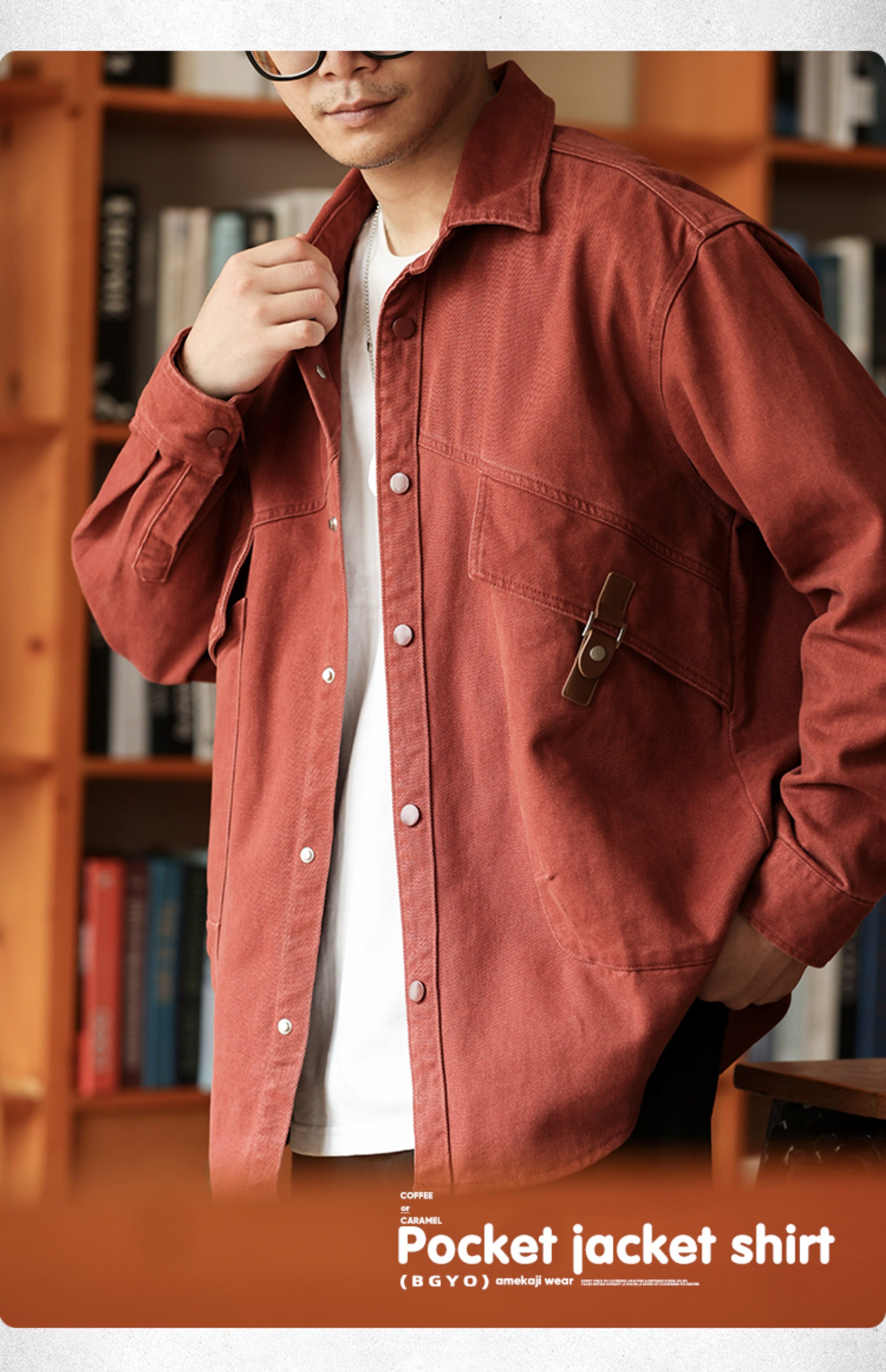 格雷系安可拉紅色襯衫外套男寬鬆巴黎扣斜插口袋工裝襯衣秋