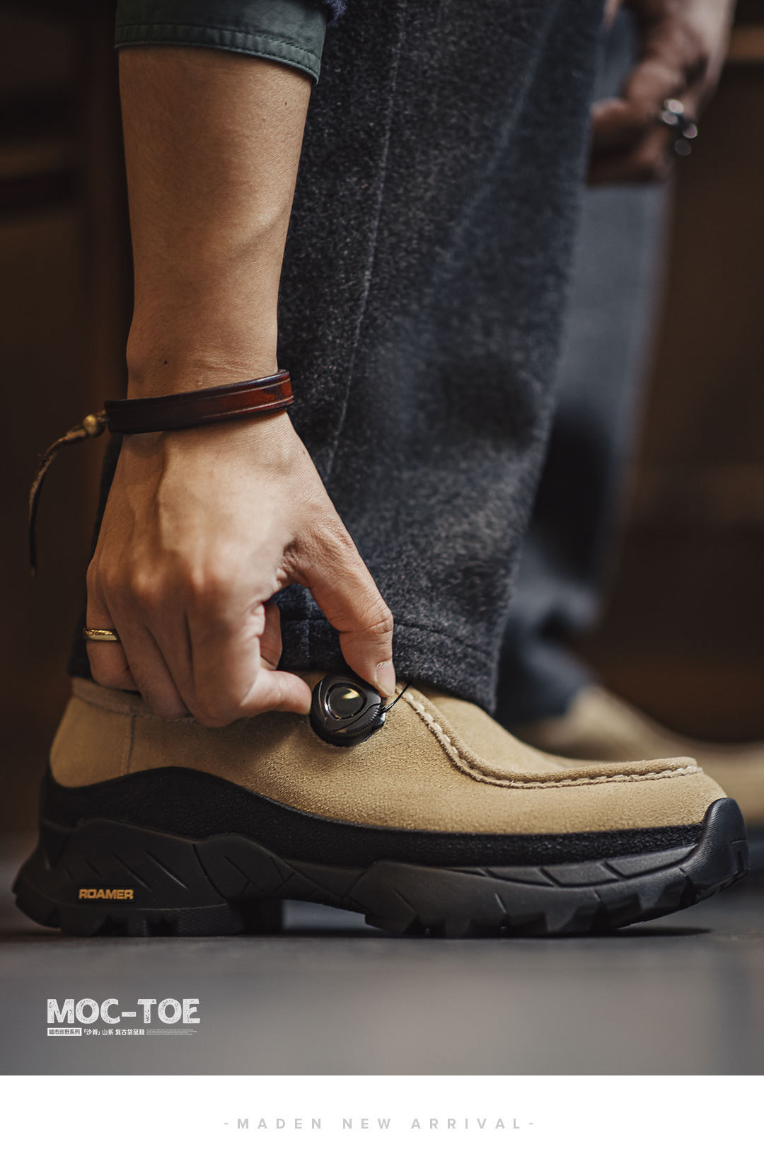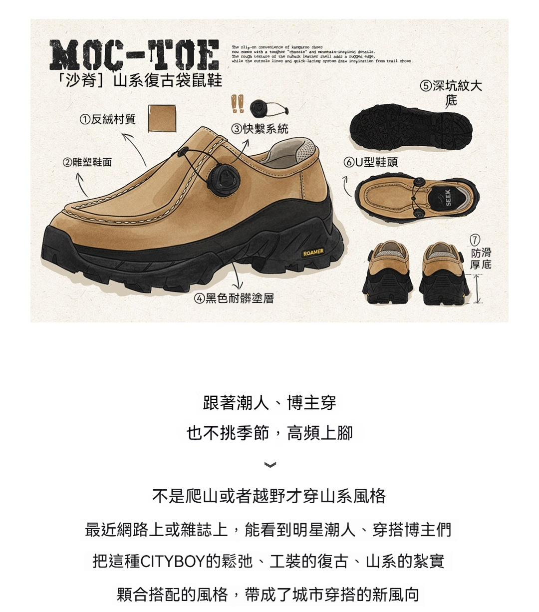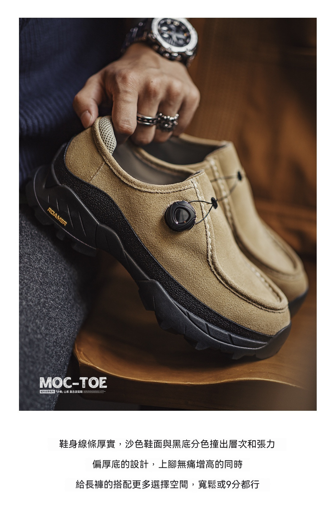 沙脊復古厚底袋鼠鞋男新款增高機能風懶人一脚蹬真皮休閒皮鞋
