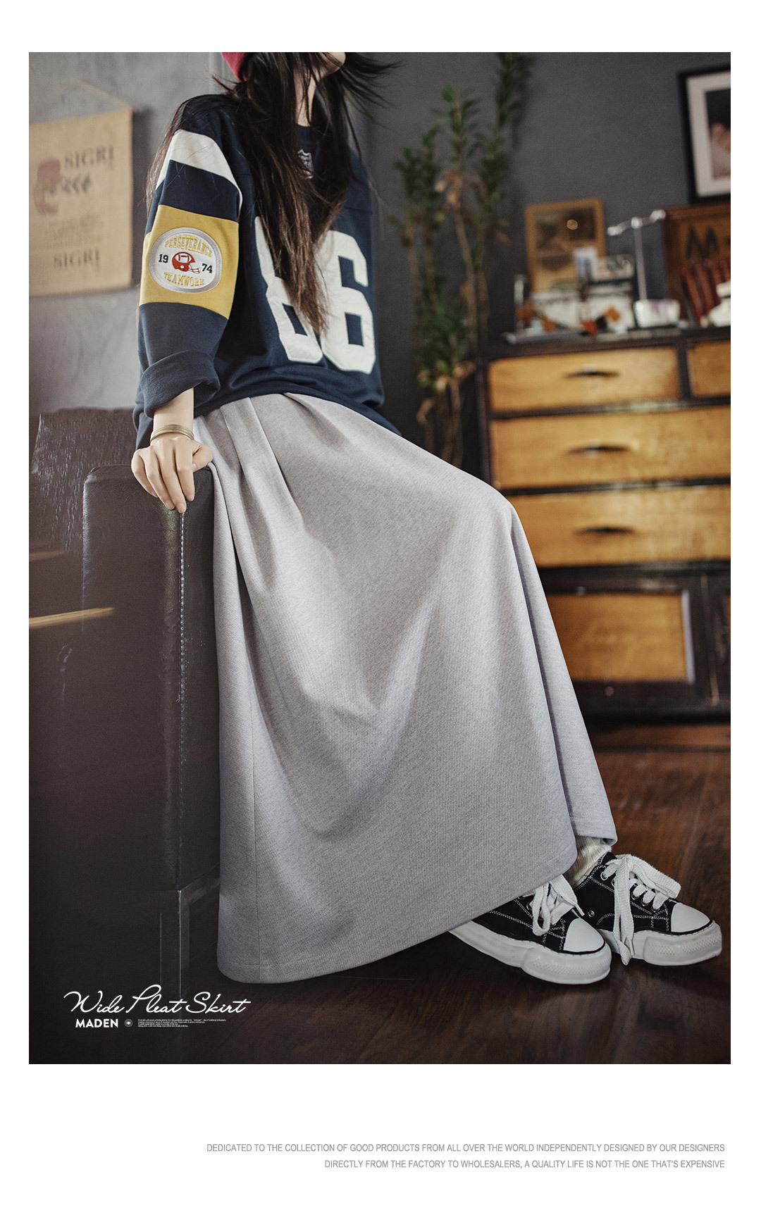 灰色毛呢大擺半身長裙針織鬆緊腰垂墜感百褶A字傘裙秋冬女士